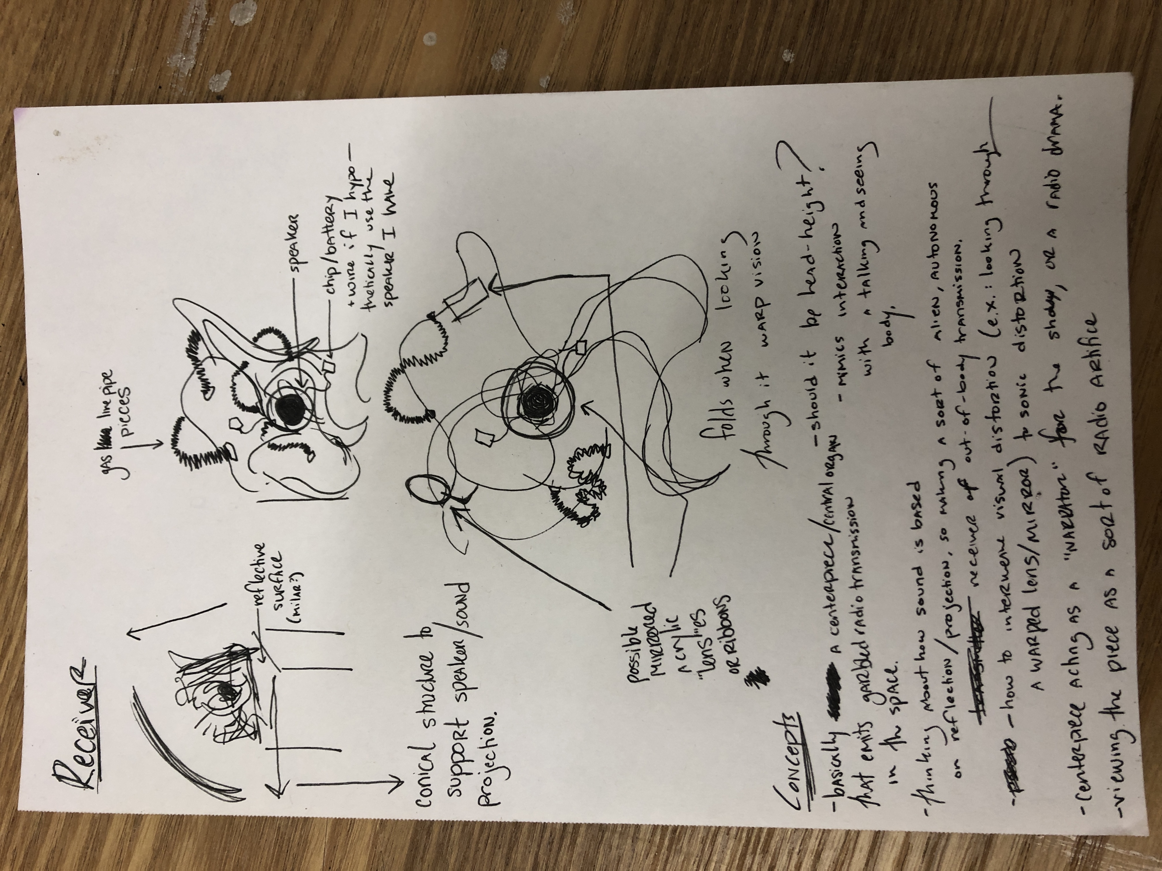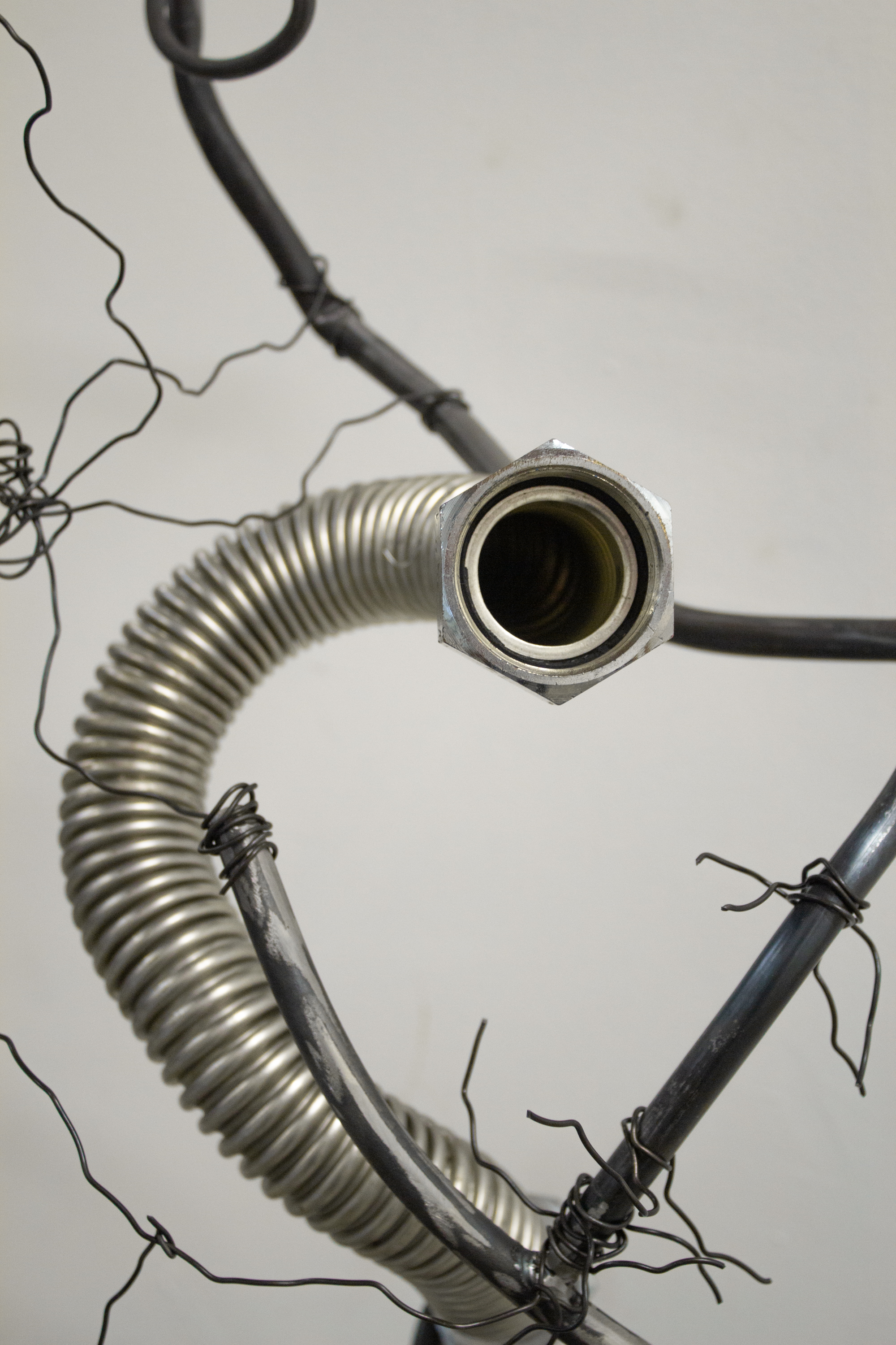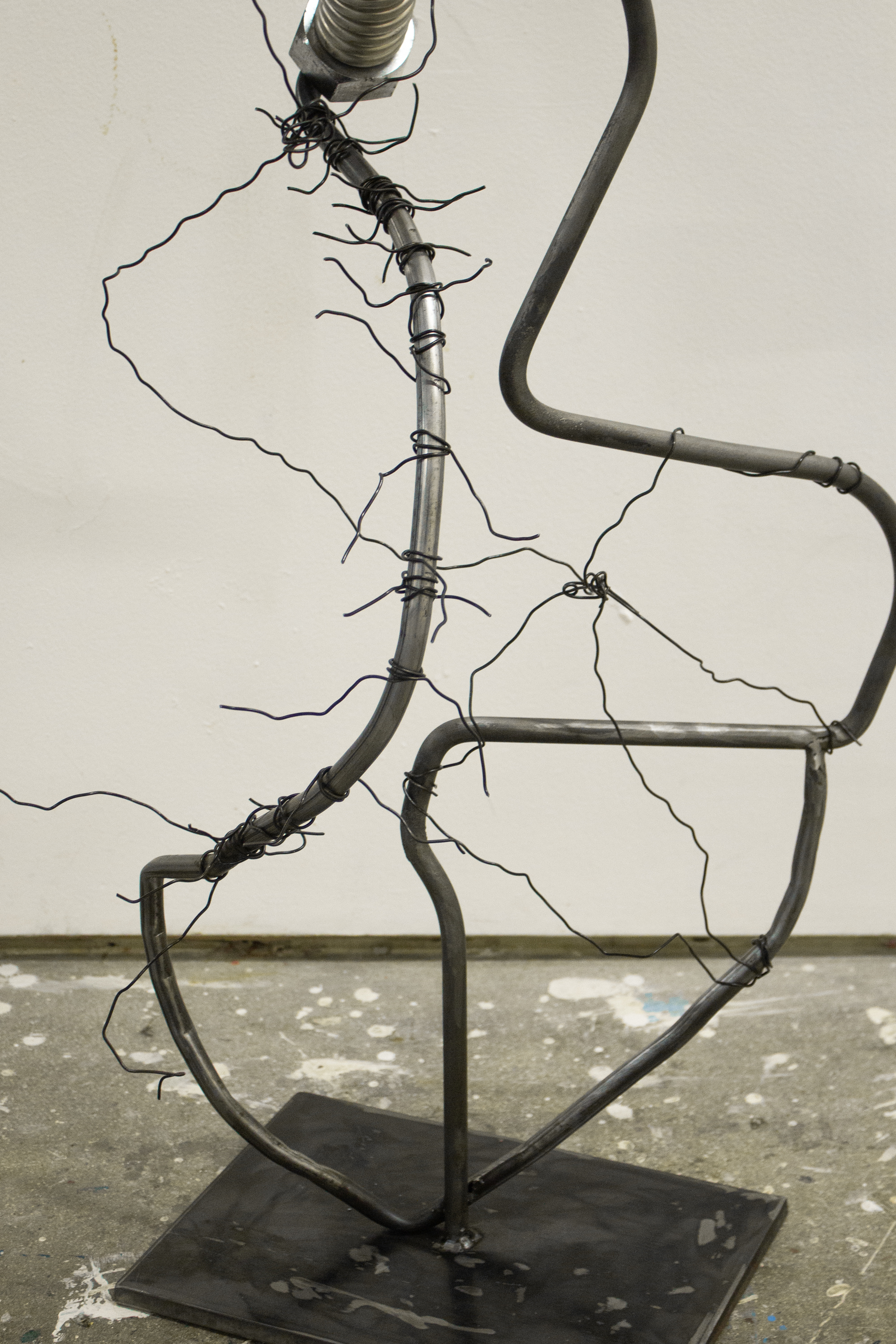 "Receiver", 2024 Acrylic, speaker module, scrap metal, steel wire, screws, metal hardware 40 x 10 x 12 in Constant sound playback