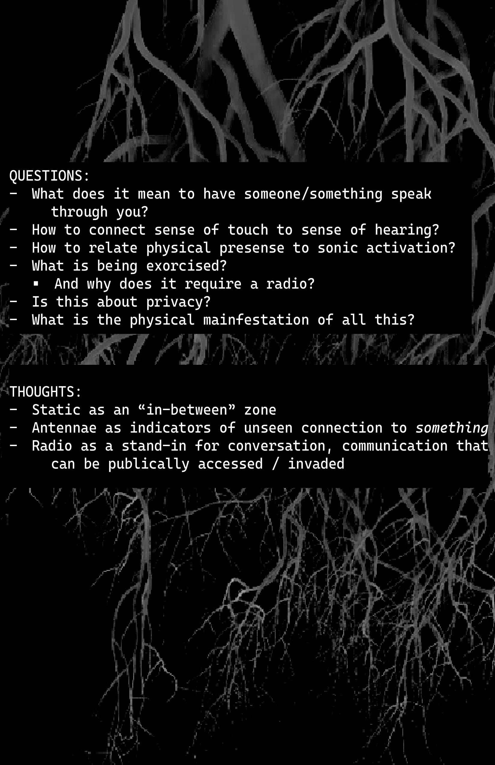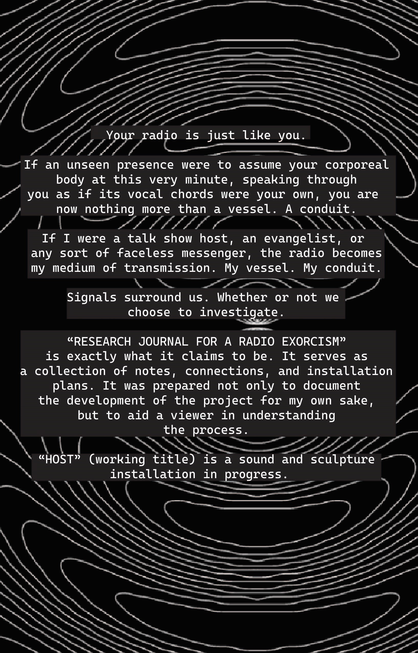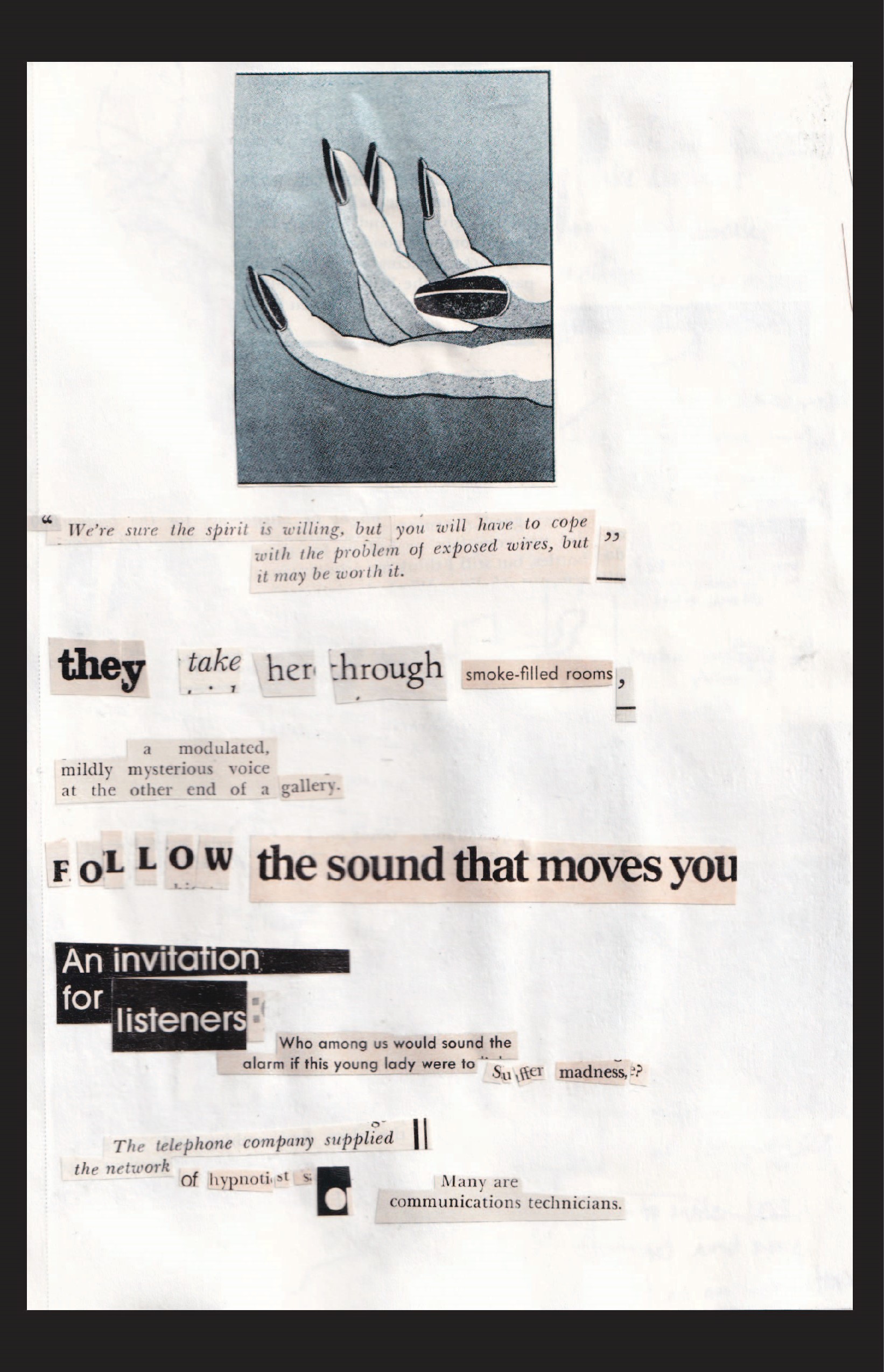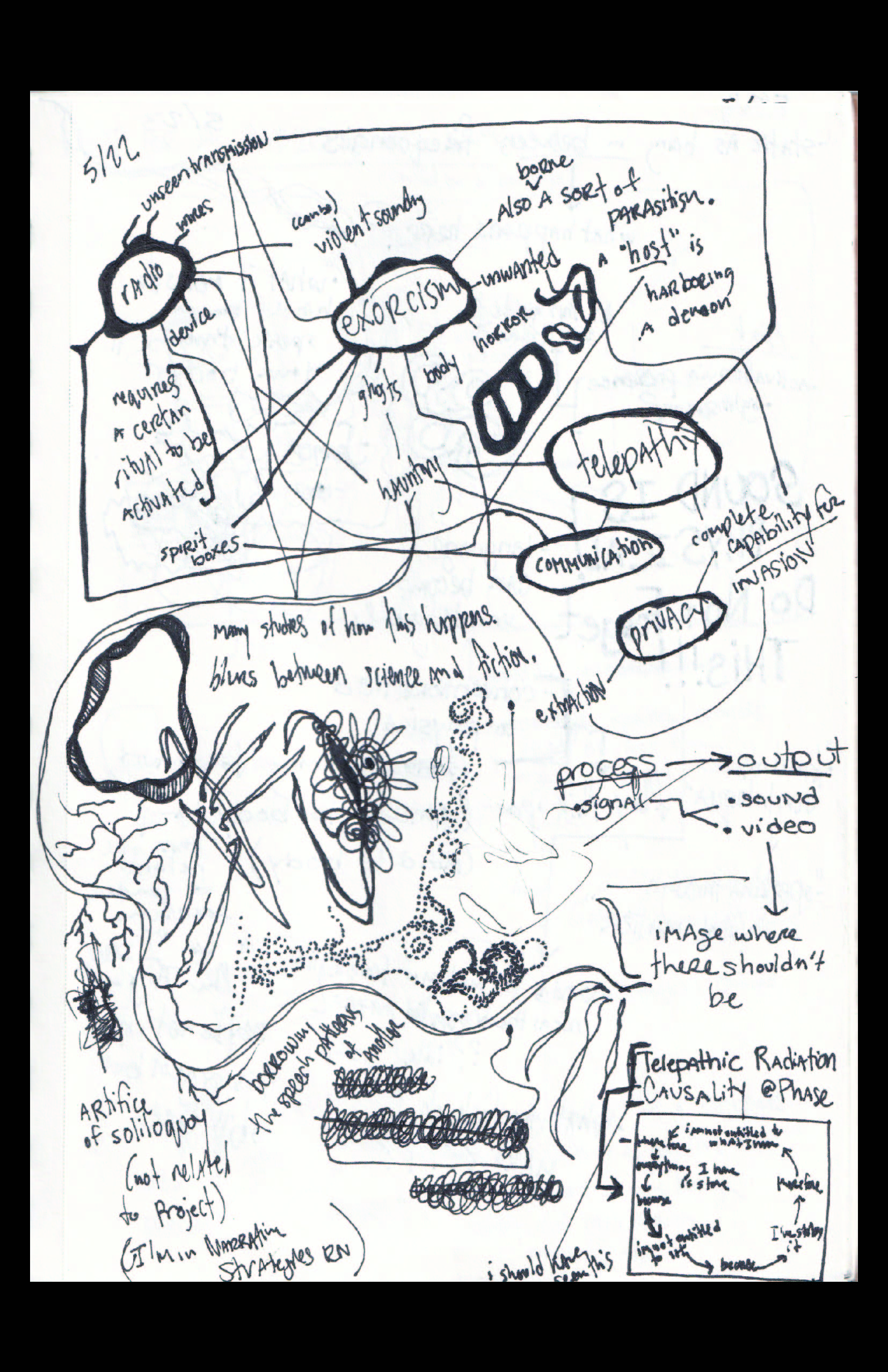 A printed 16-page booklet of notes, sketches, and writing documenting an in-progress sound and sculpture installation.