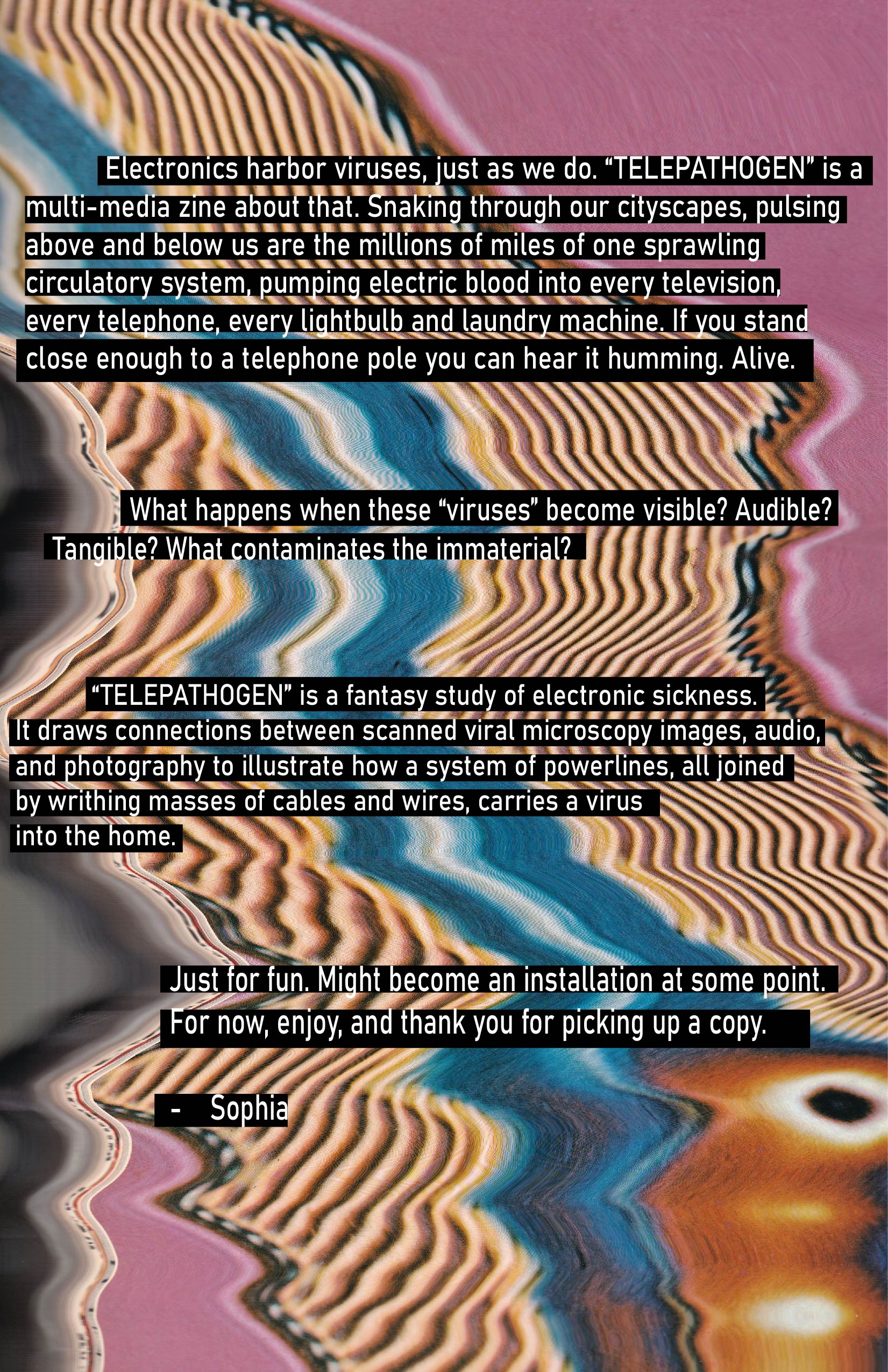 Graduates Select DepartmentBrand Design & StrategyCreative DirectionEntertainment DesignFilmFine ArtFurniture, Lighting and FixturesGraduate ArtGraduate FilmGraduate Graphic DesignGraduate Interaction DesignGraduate Spatial Experience DesignGraphic DesignIllustrationIndustrial DesignInteraction DesignMedia Design PracticesPhotography and ImagingProduct DesignSpatial Experience DesignTransportation DesignTransportation Systems and Design Back to Projects Sophia Kaeser BFA in Fine Art — Fine Art TELEPATHOGEN "TELEPATHOGEN", 2024 Multi-media zine 8.5 x 11 in. Project Website: https://drive.google.com/file/d/1pYECoON67Op7k118UgrZ_TVRUYb4R5D4/view?usp=shar… Image FRONT COVER Image PAGE 1 Image PAGE 2 / STATEMENT Image PAGES 3 / 4 Image PAGE 5 Image PAGE 6 Image PAGES 7 / 8 Image PAGE 9 Image PAGE 10 Image BACK COVER
