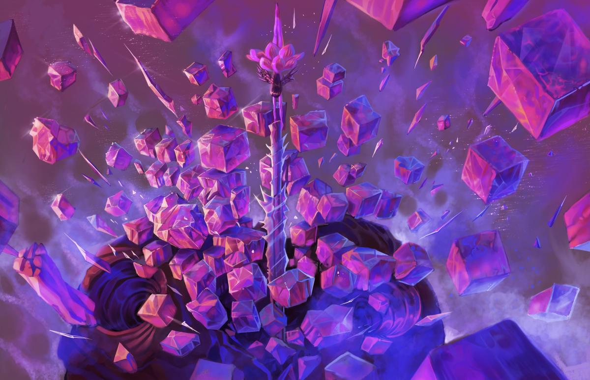 In glorious destruction the crystals flew,