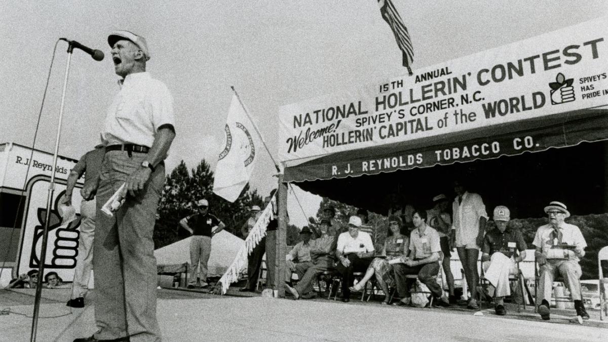 Hollerin’ is the ancient art of communication that predates the telephone, used by farmers to send messages across fields. The National Hollerin' Contest is an event which takes place yearly in Spivey’s Corner, North Carolina aimed at preserving and promoting this tradition.