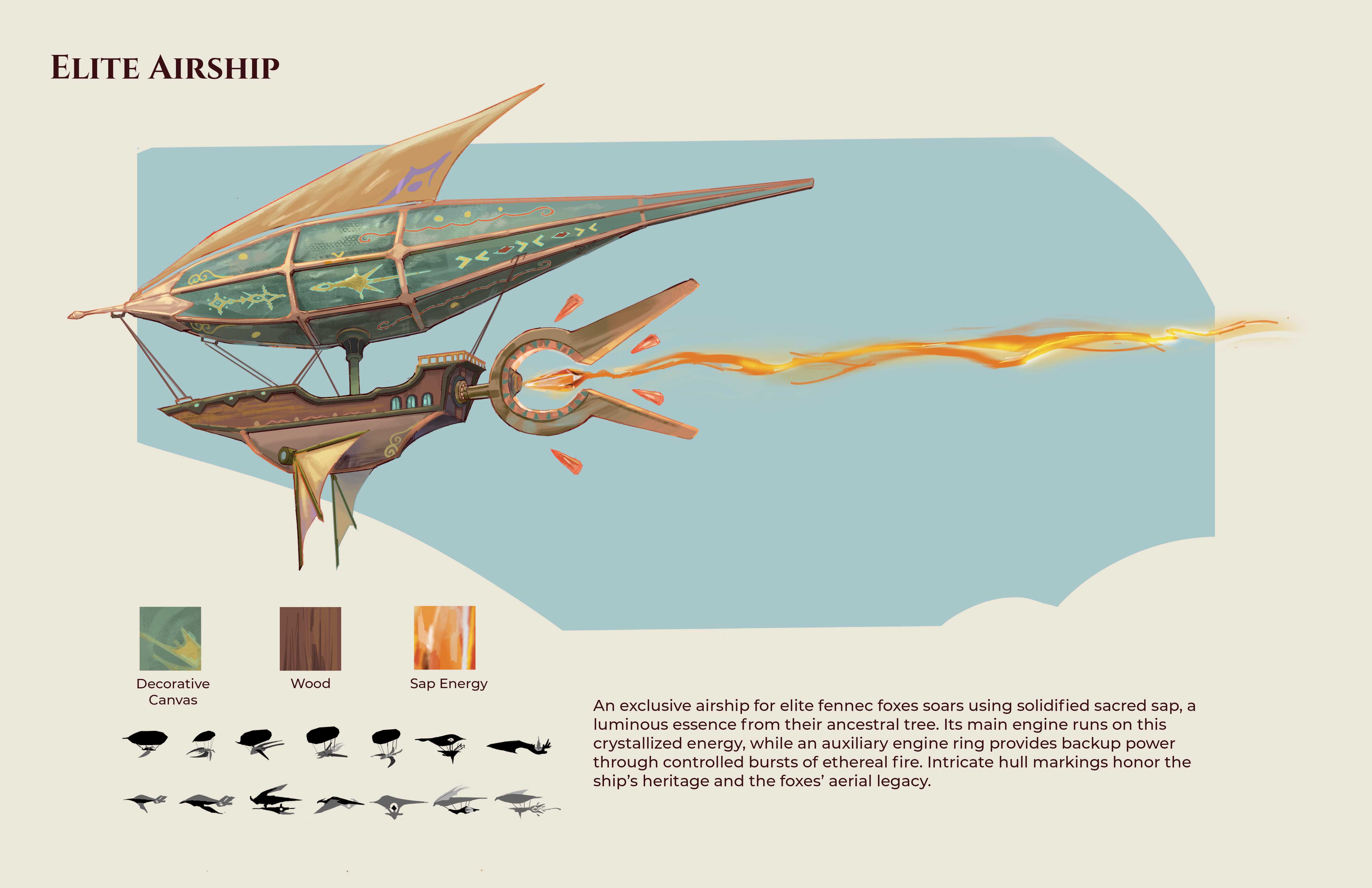 I explored environment and prop designs for the elite fennec fox society in my original fantasy project, Fallen Sky—a world shaped by sacred technology.