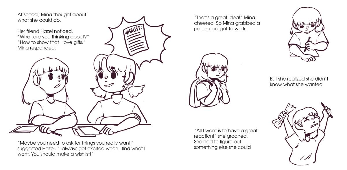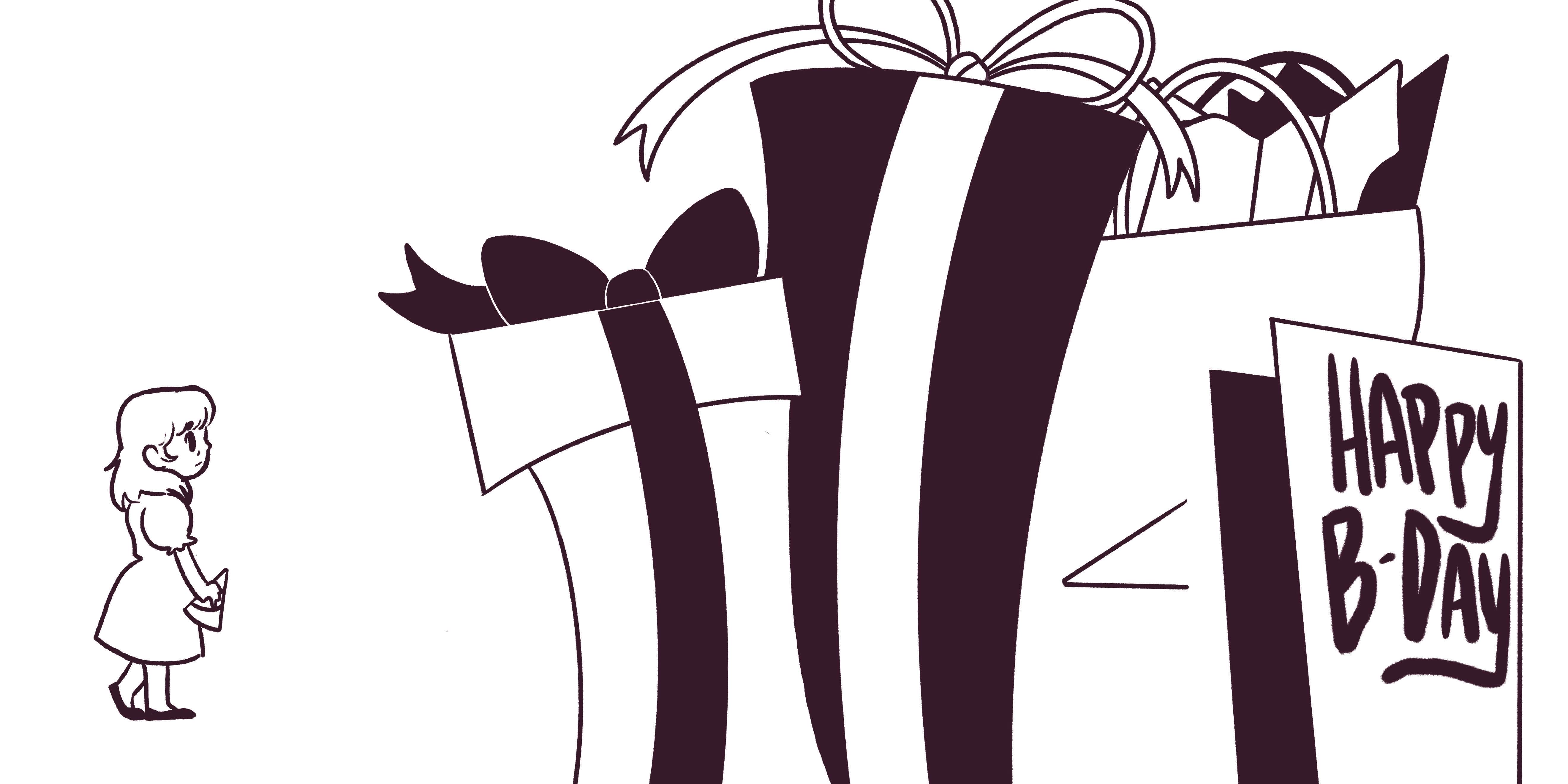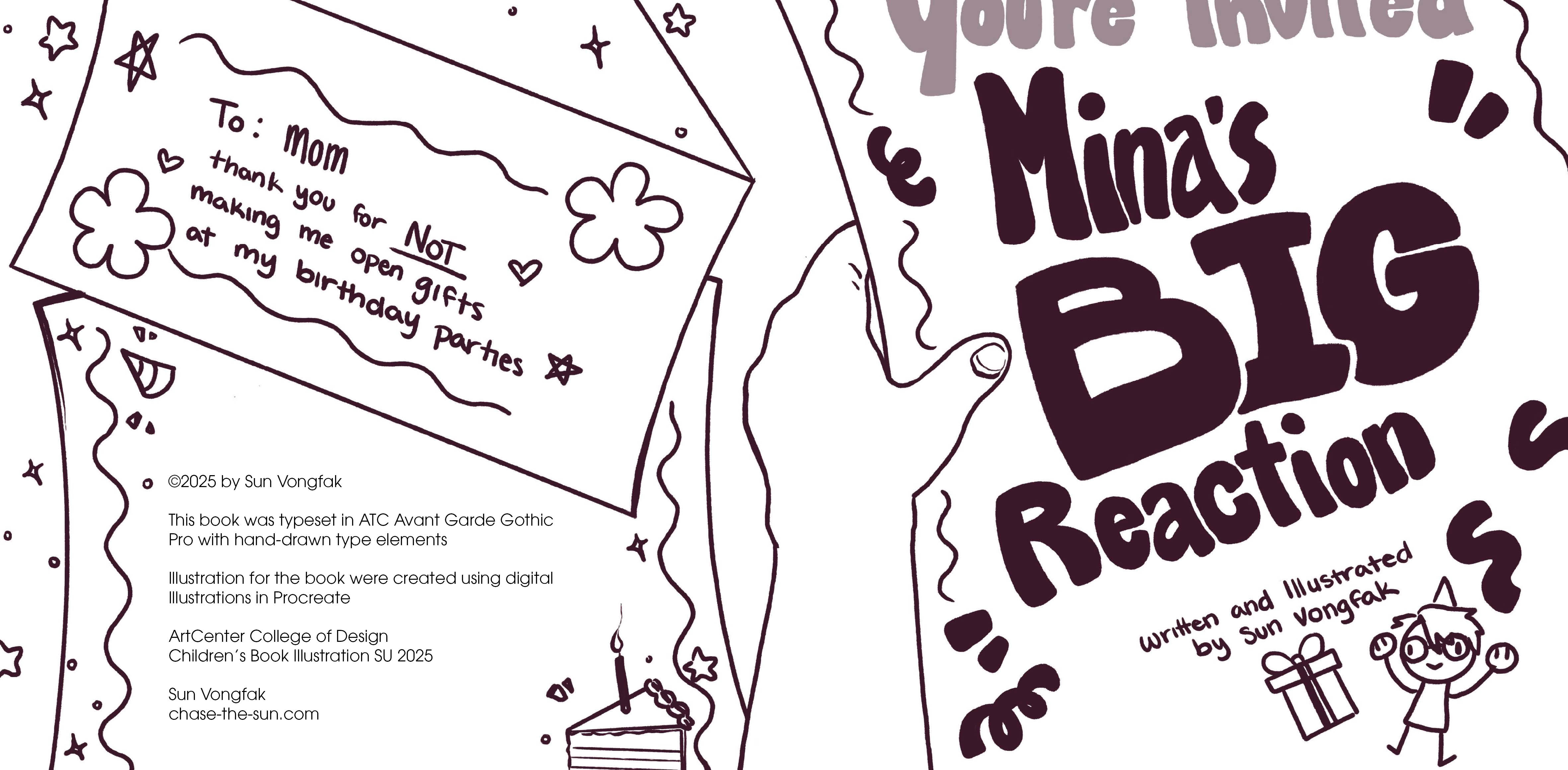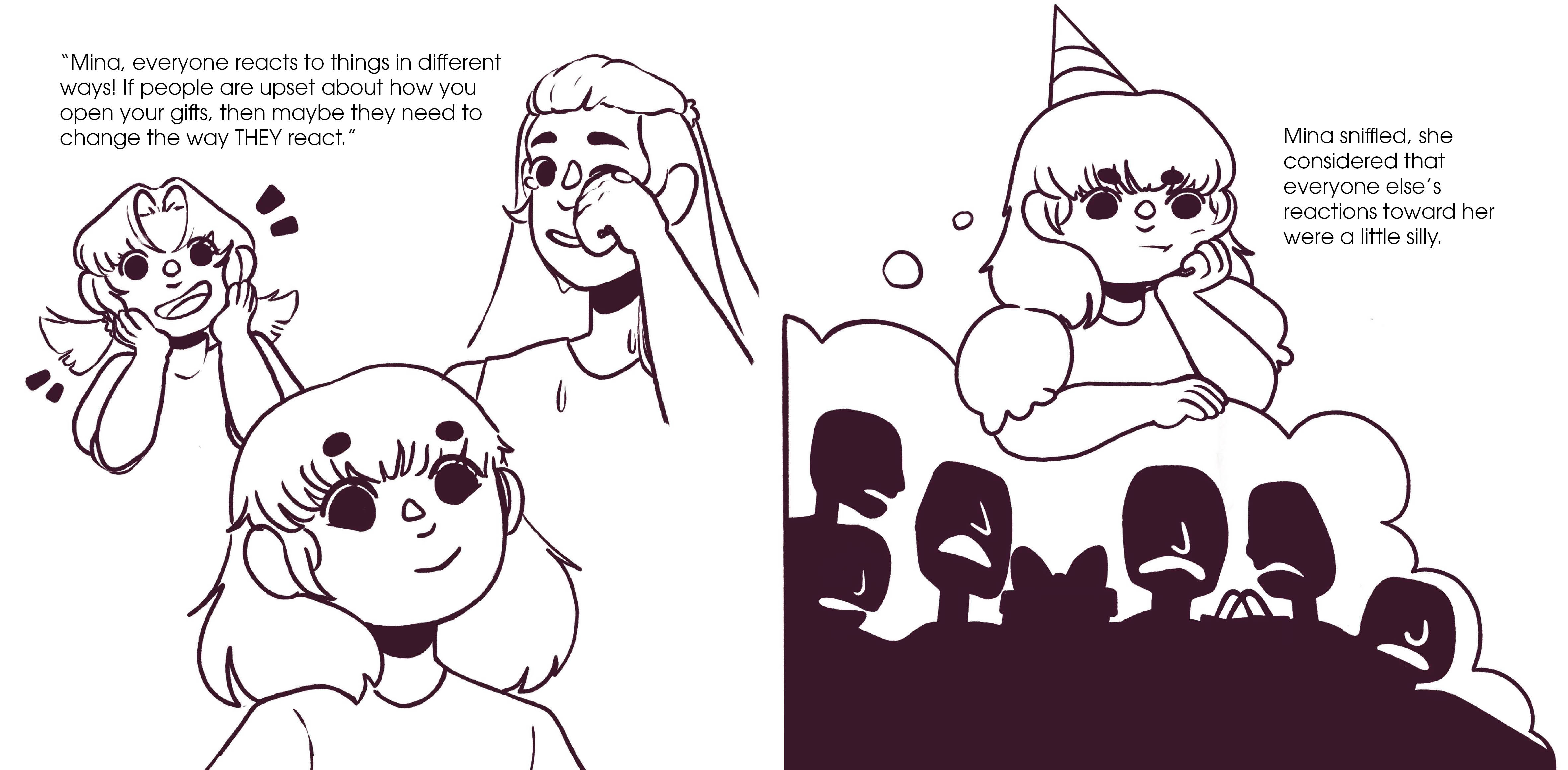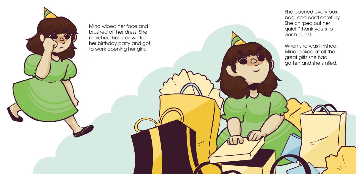 A children's book concept written and illustrated by myself. The story follows a young girl who's anxious about opening gifts at her birthday and having a "great" reaction.
