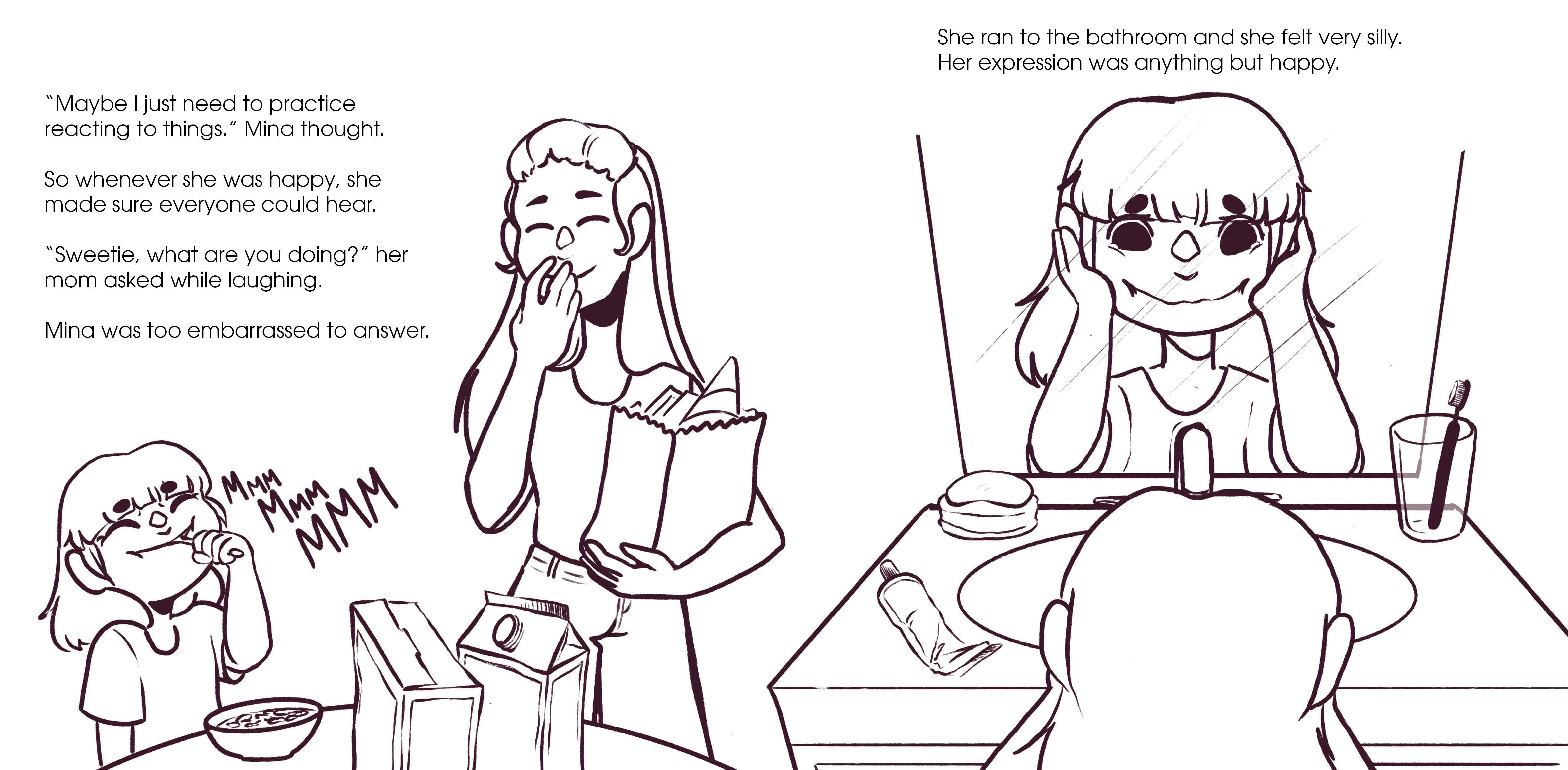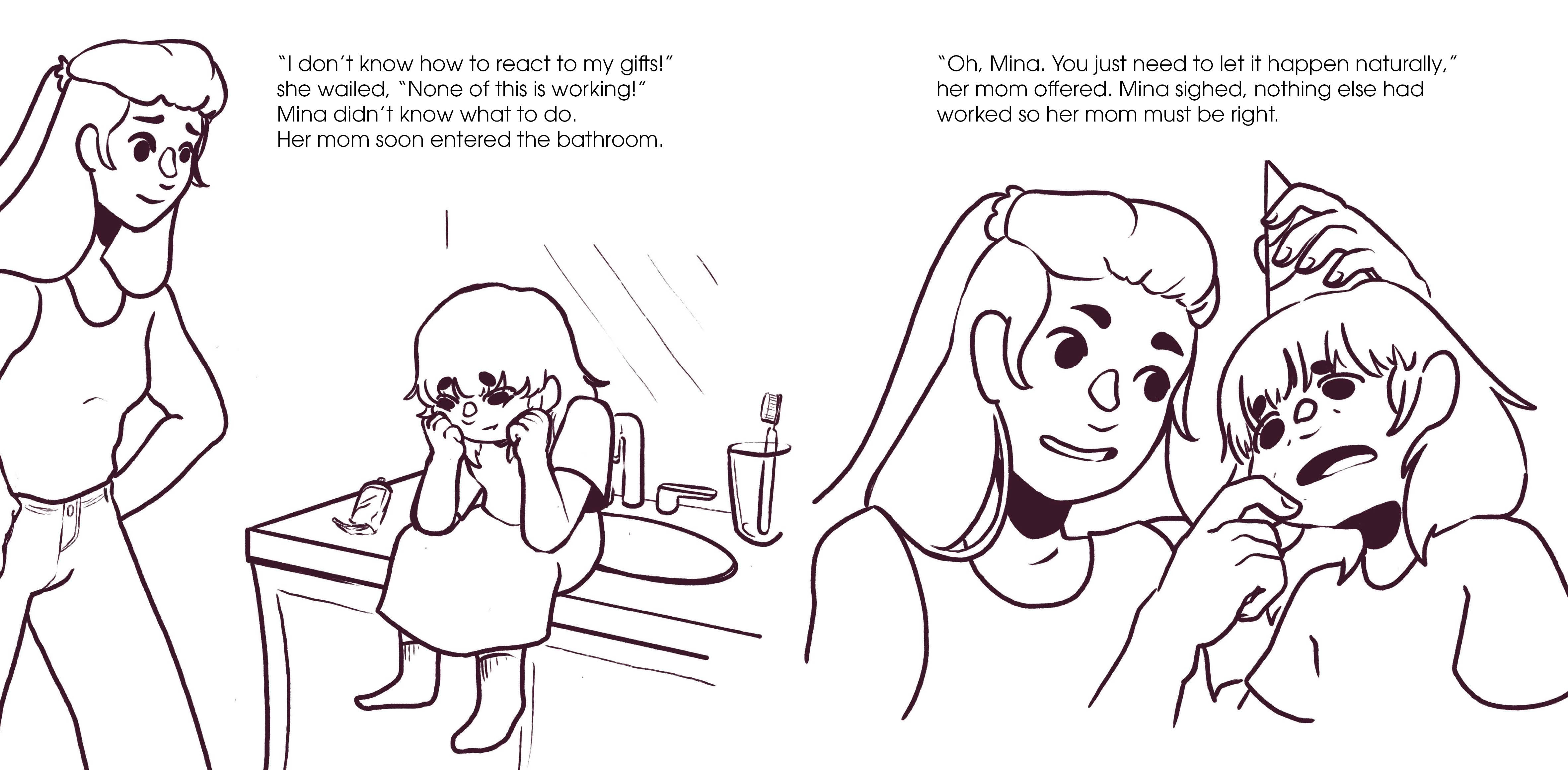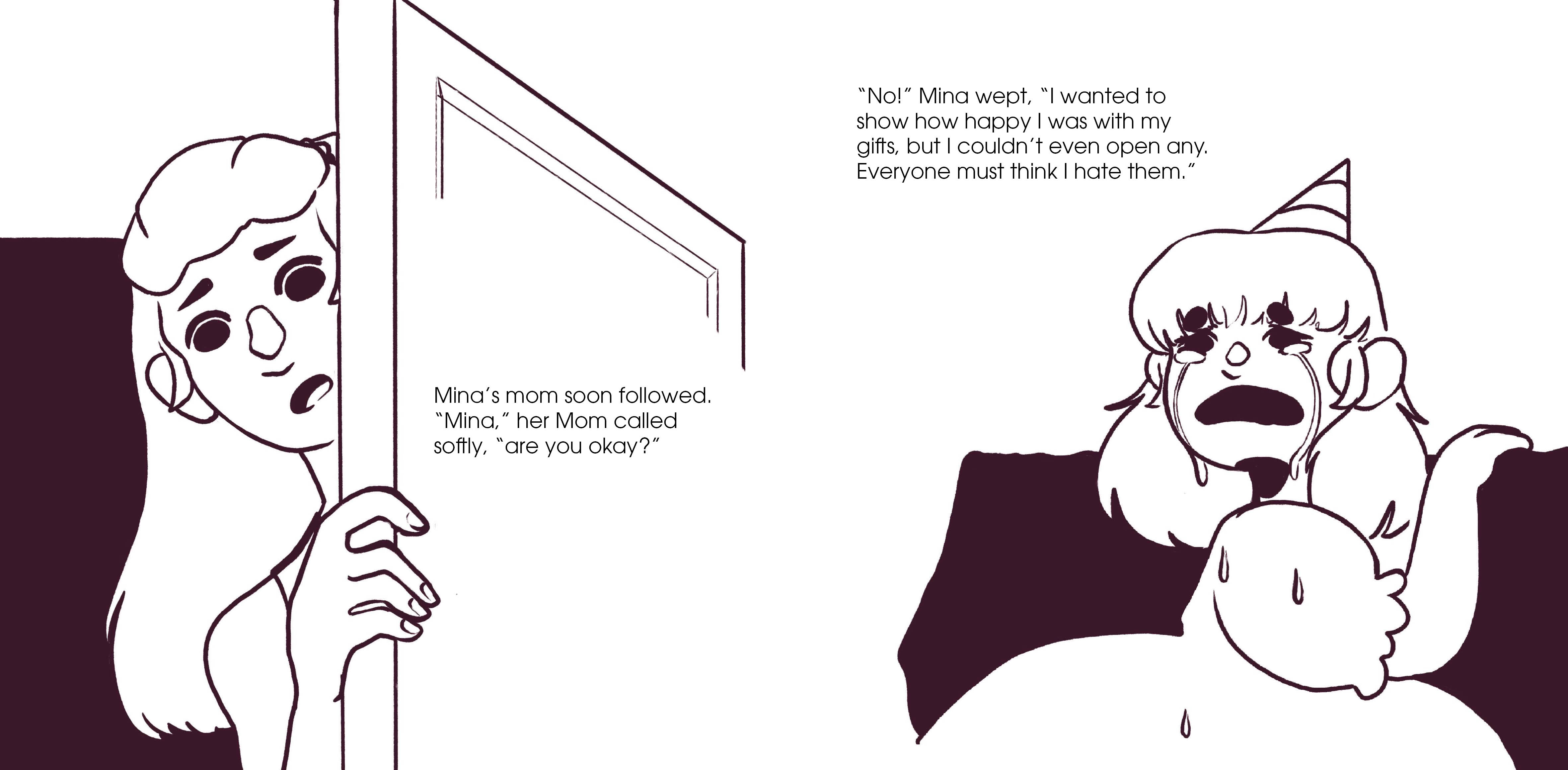 This story was both written and illustrated by myself digitally. I based the story on my own personal experience with childhood anxiety and based the main character on my mother as a tribute to her and all her wisdom.