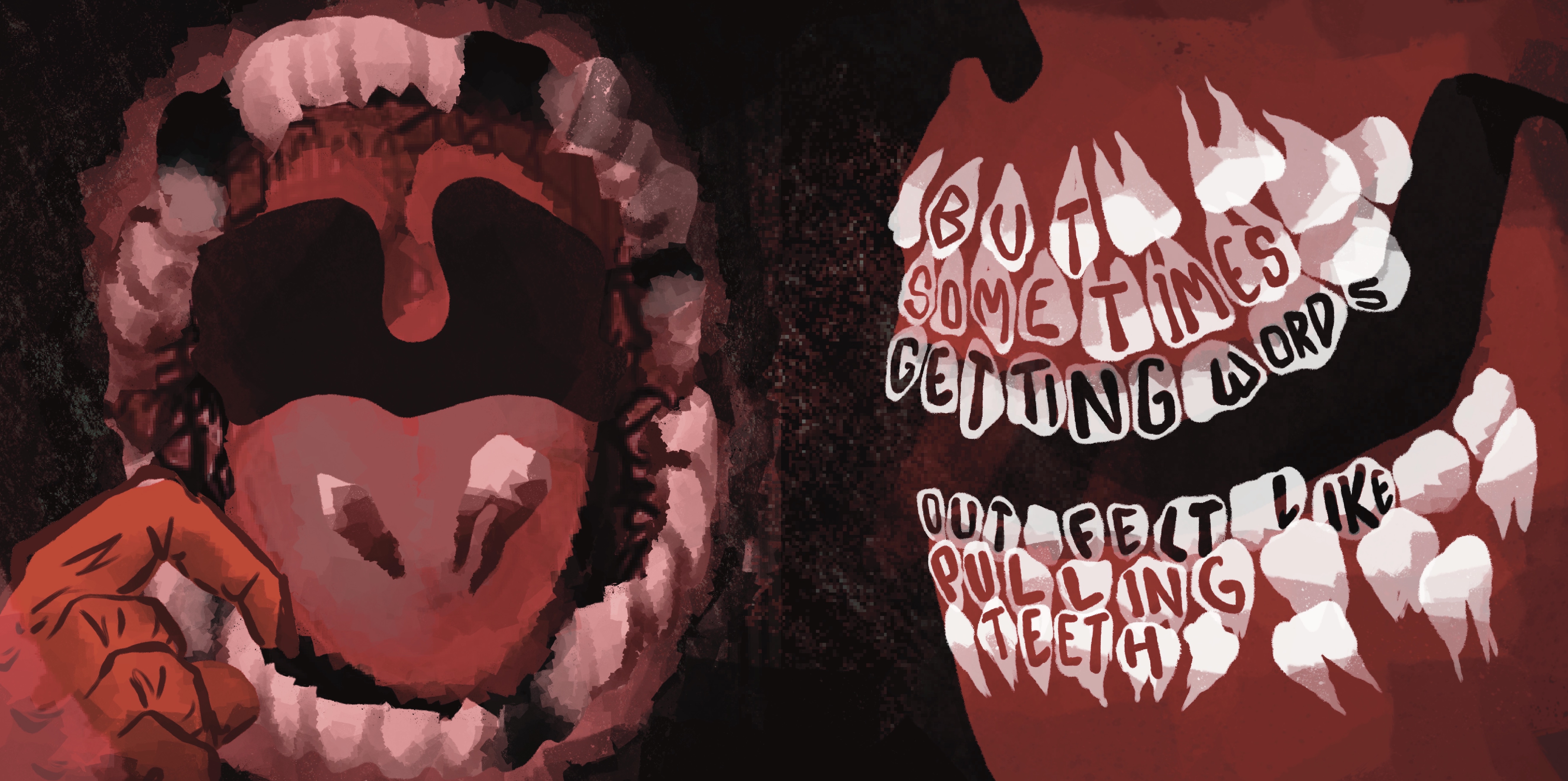 A collection of mixed media digital collages that tell the story of a toxic romance through idioms that mention body parts.
