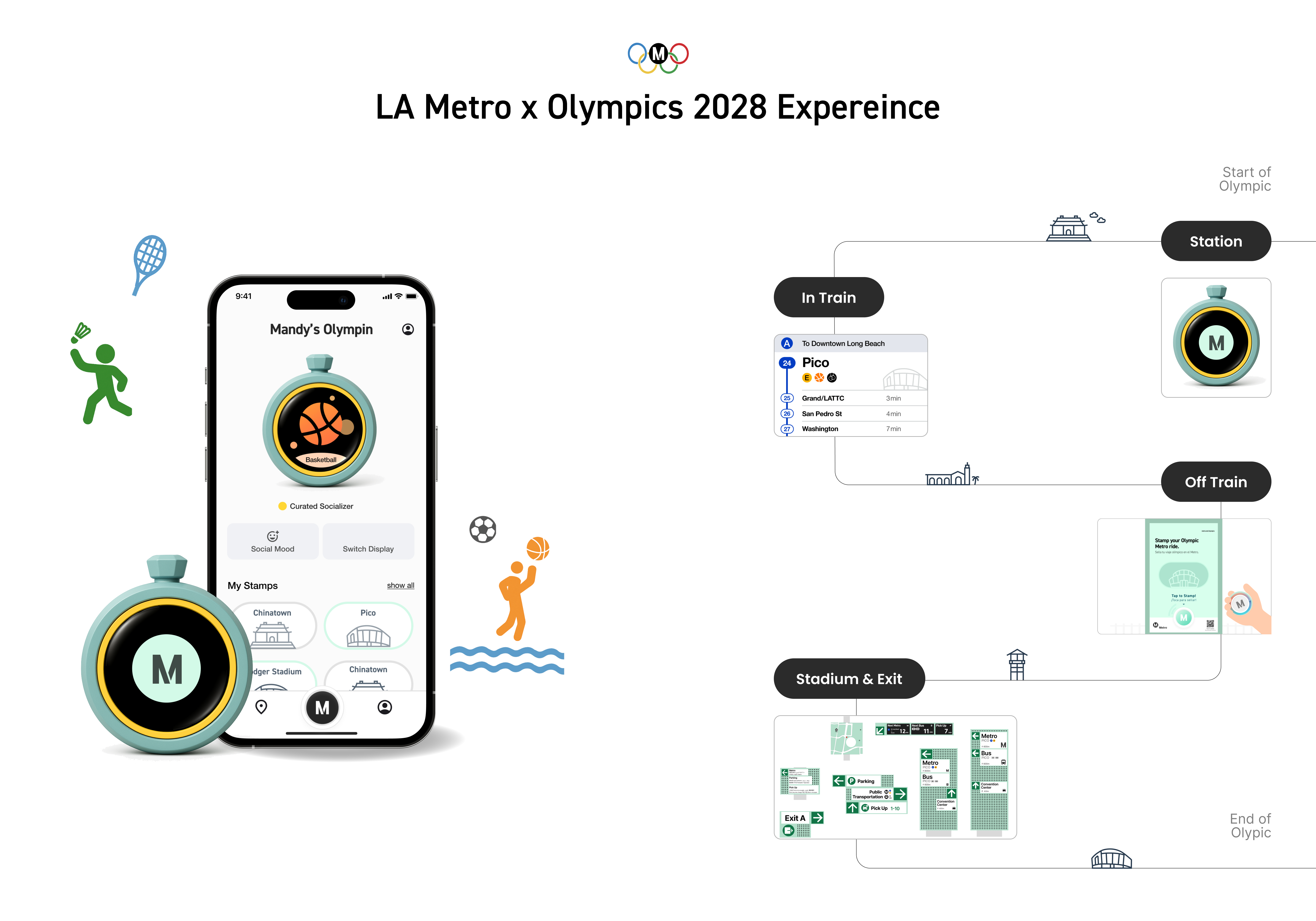 Olympin is a gamified wayfinding system designed for the LA Metro during the 2028 Olympics, helping visitors explore the city through collectible pins and interactive challenges. Our goal is to make transit navigation fun, intuitive, and culturally engaging for global travelers.