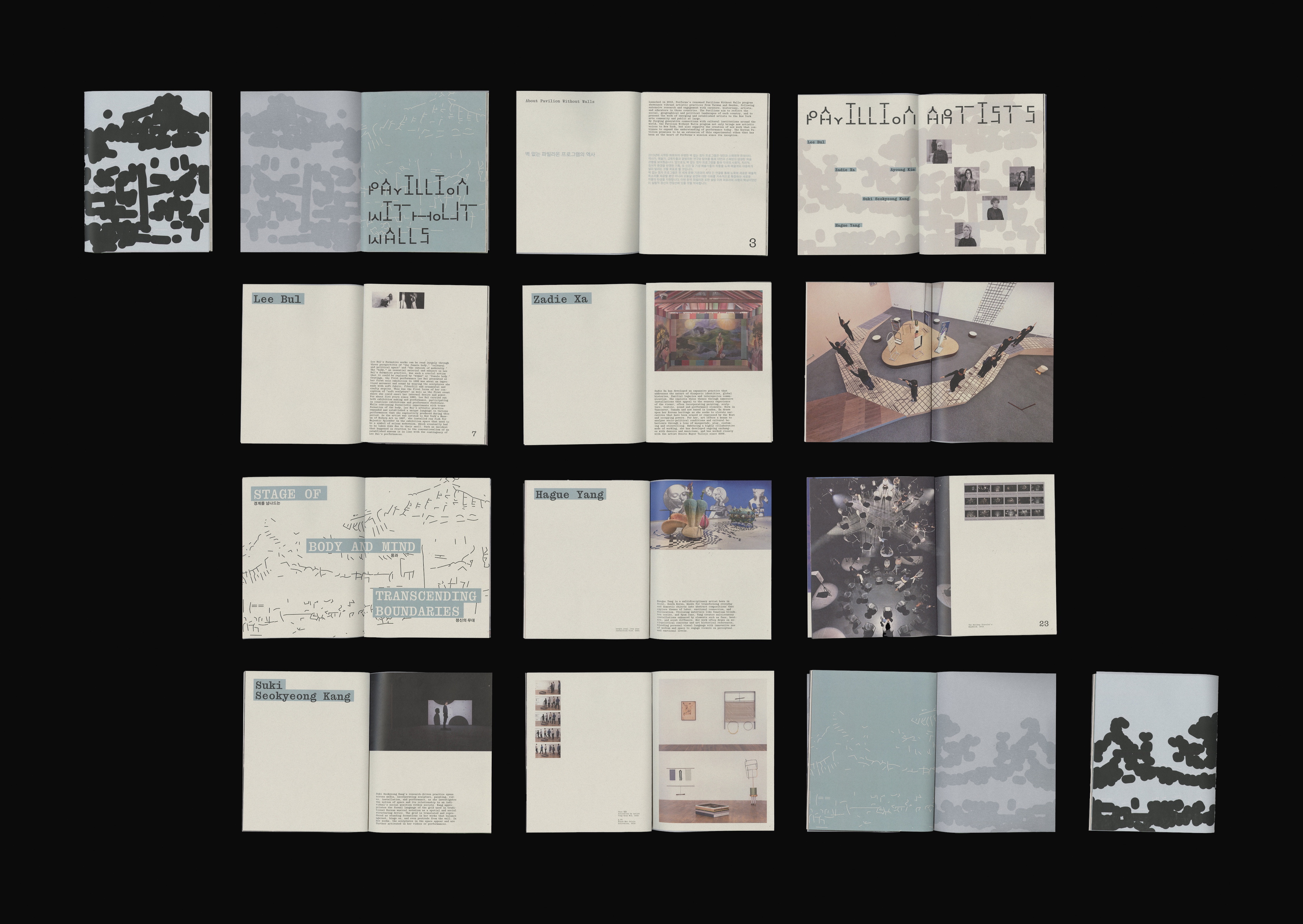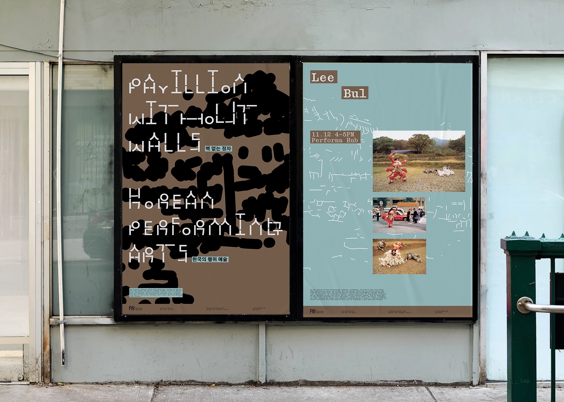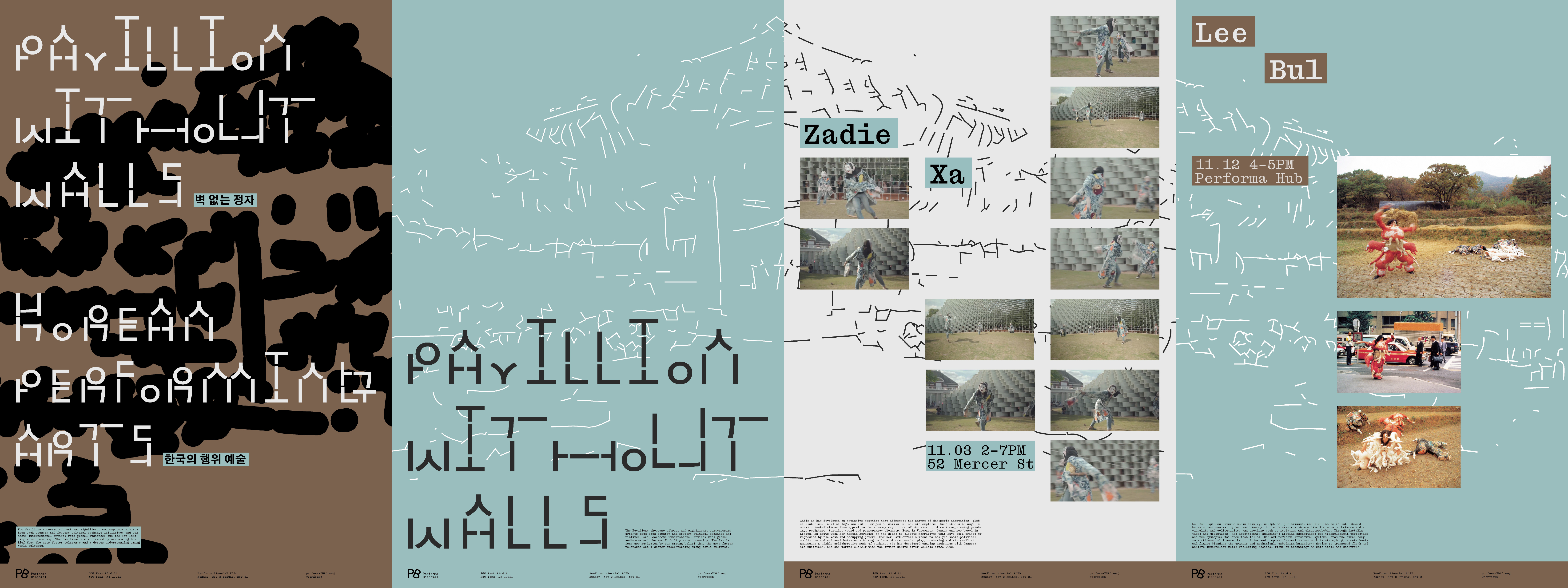 Pavilion Without Walls, as part of the Performa Biennial, spotlights a selected country by showcasing its social, geographical, and political landscapes. For the rebrand the focus shifts to South Korea, highlighting prominent performance artists and exploring the country’s rich history of performance art as a tool for protest and experimentation.
