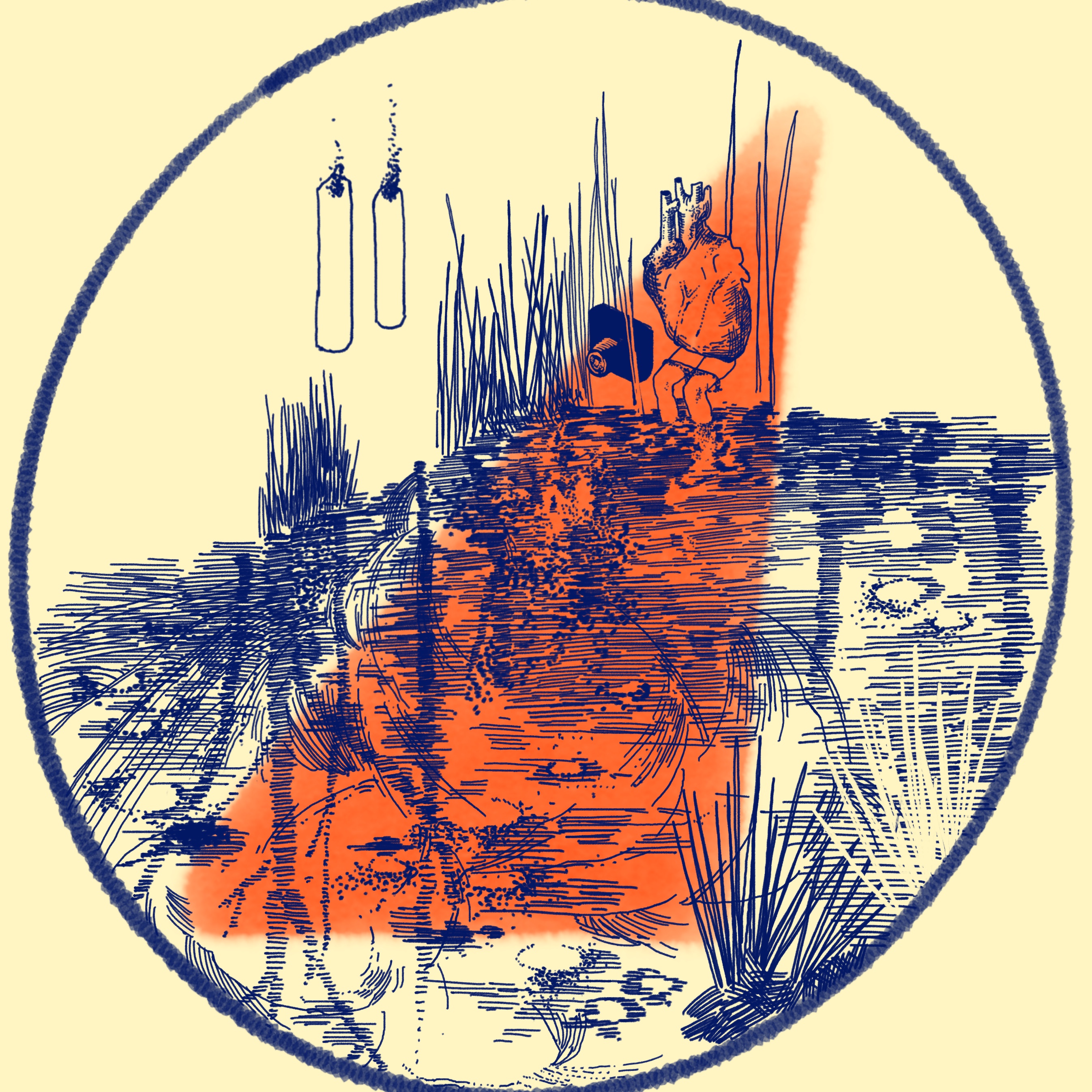 Illustration: A small pond gazing into the sky. My heart is crushed by the memories that have been extinguished, leaving me ignorant of all things and my own past. Printed on cermaic plate.