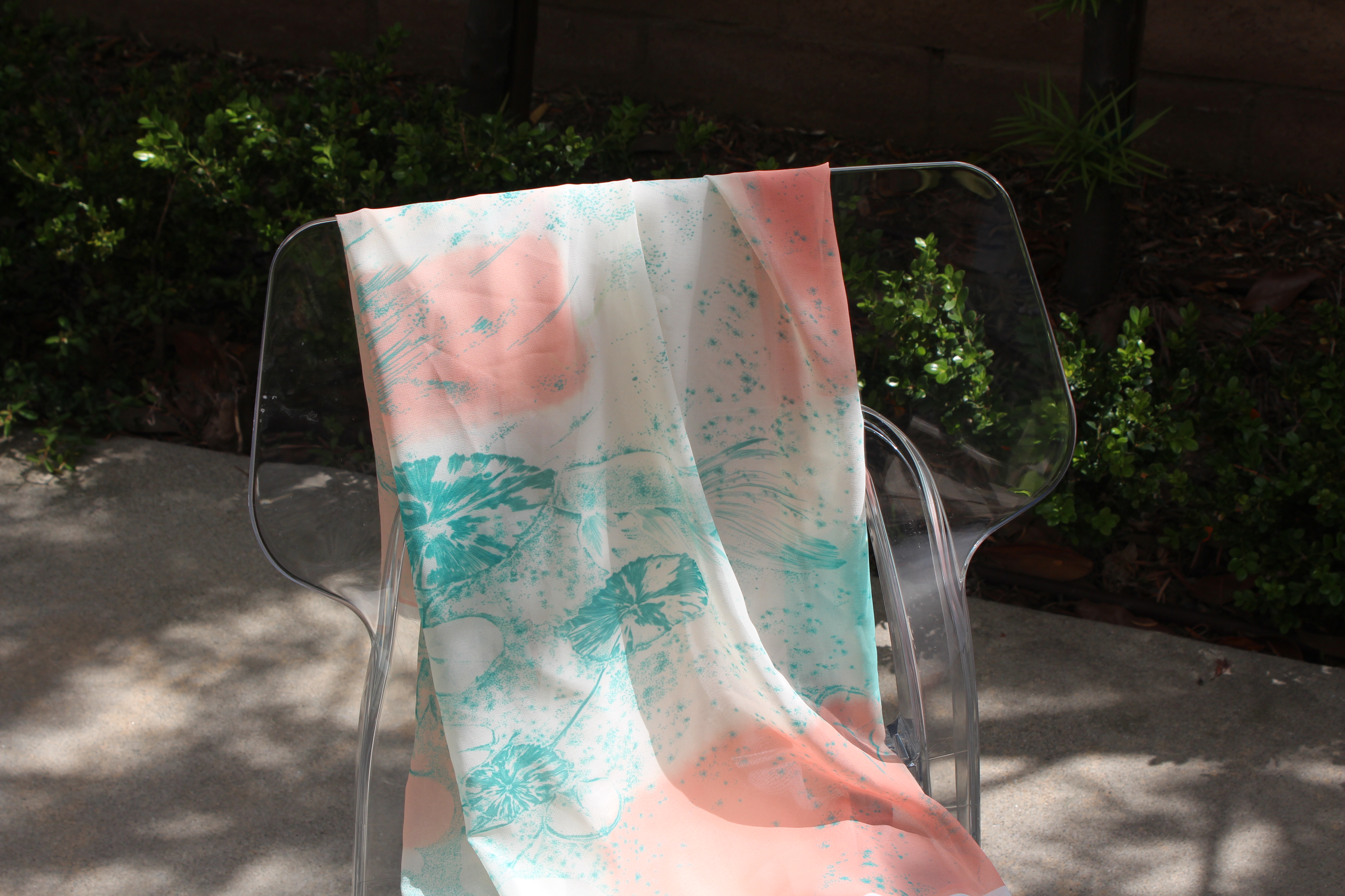 Illustration of pond and blockade shape of colors that shares the warmth and clamness of the enviorment to the readers, with the help of softness among the chiffon silk.
