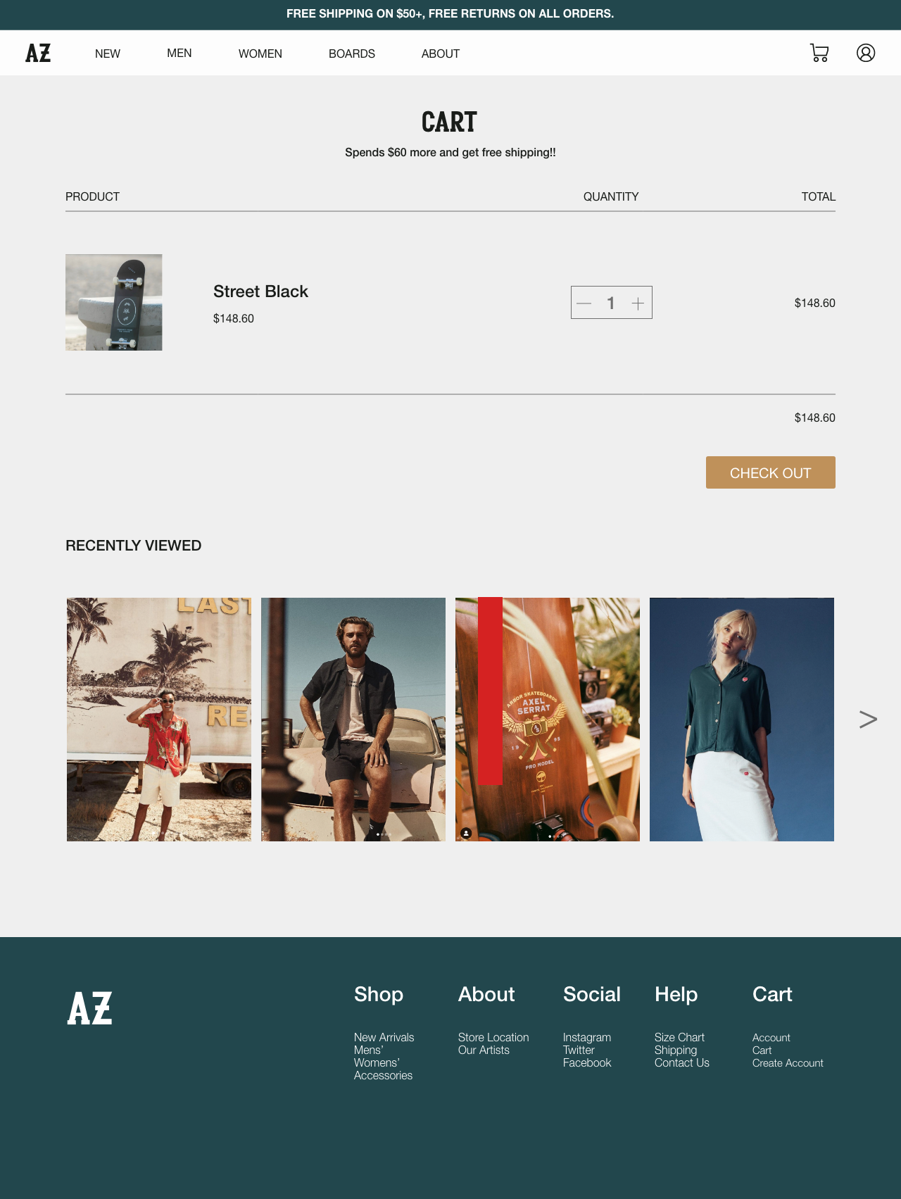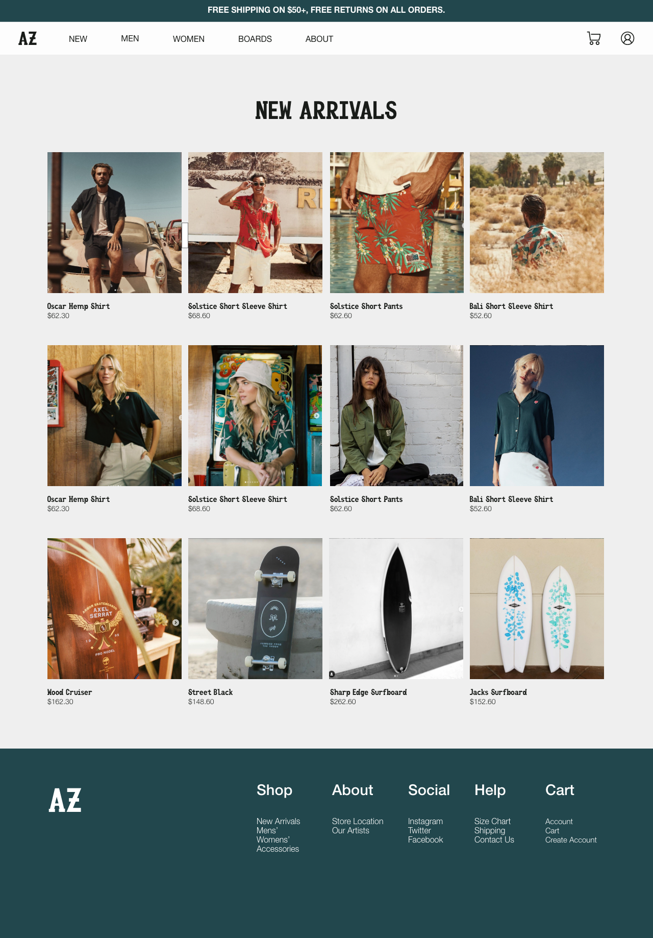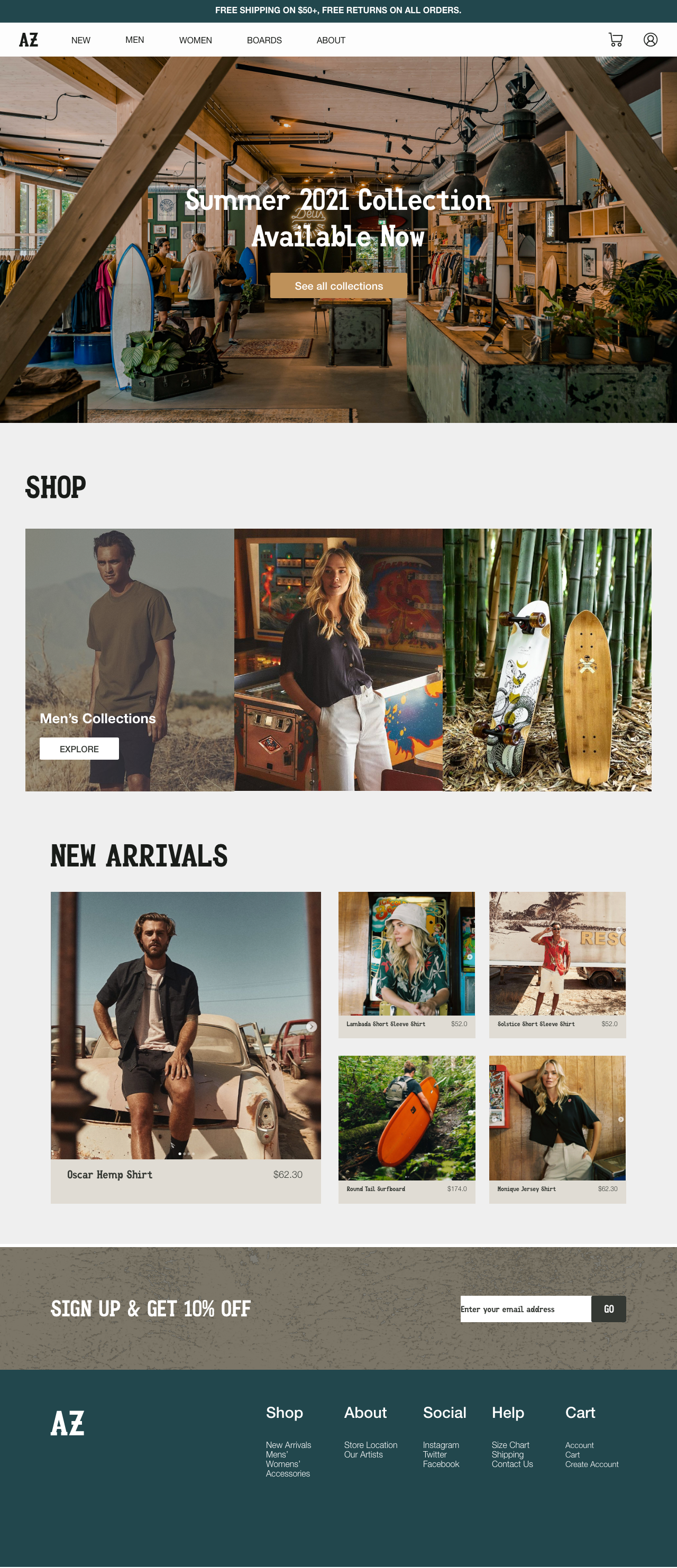 AZ is a surf, skate e-commerce website which sells clothes and boards to those who like doing them or their lifestyle.
