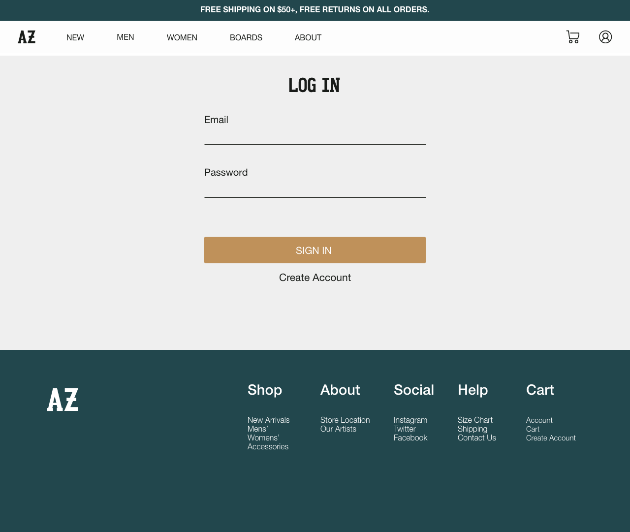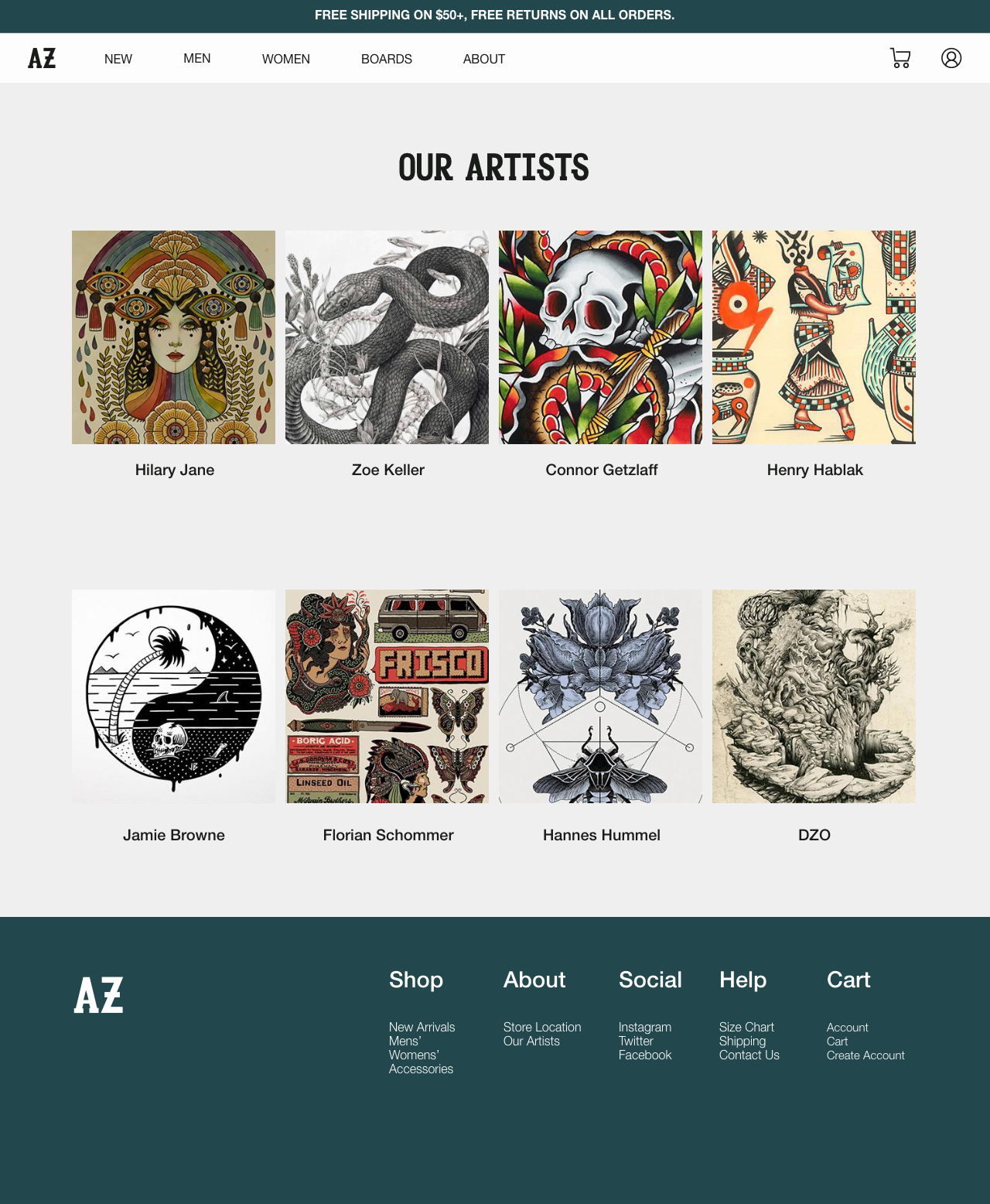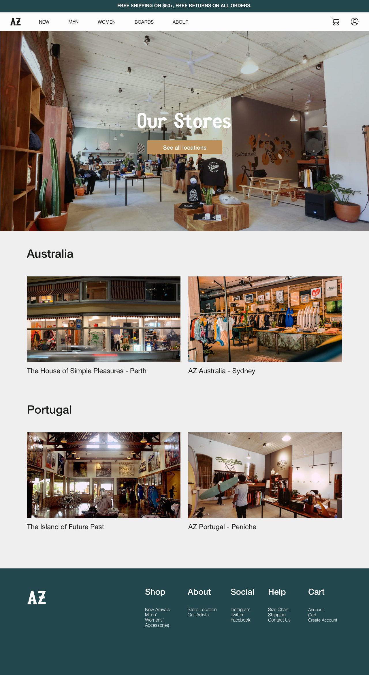AZ is a surf, skate e-commerce website which sells clothes and boards to those who like doing them or their lifestyle.