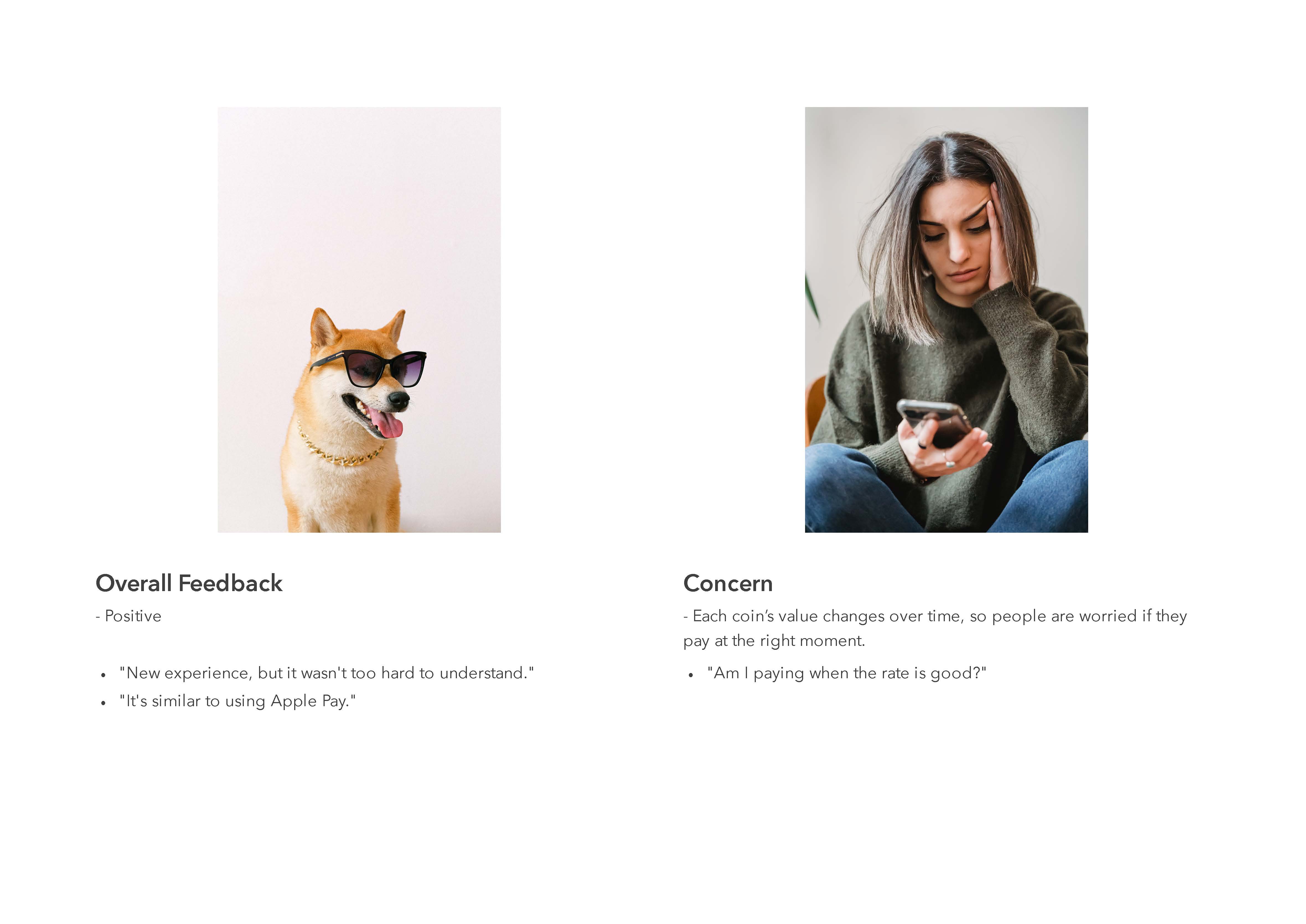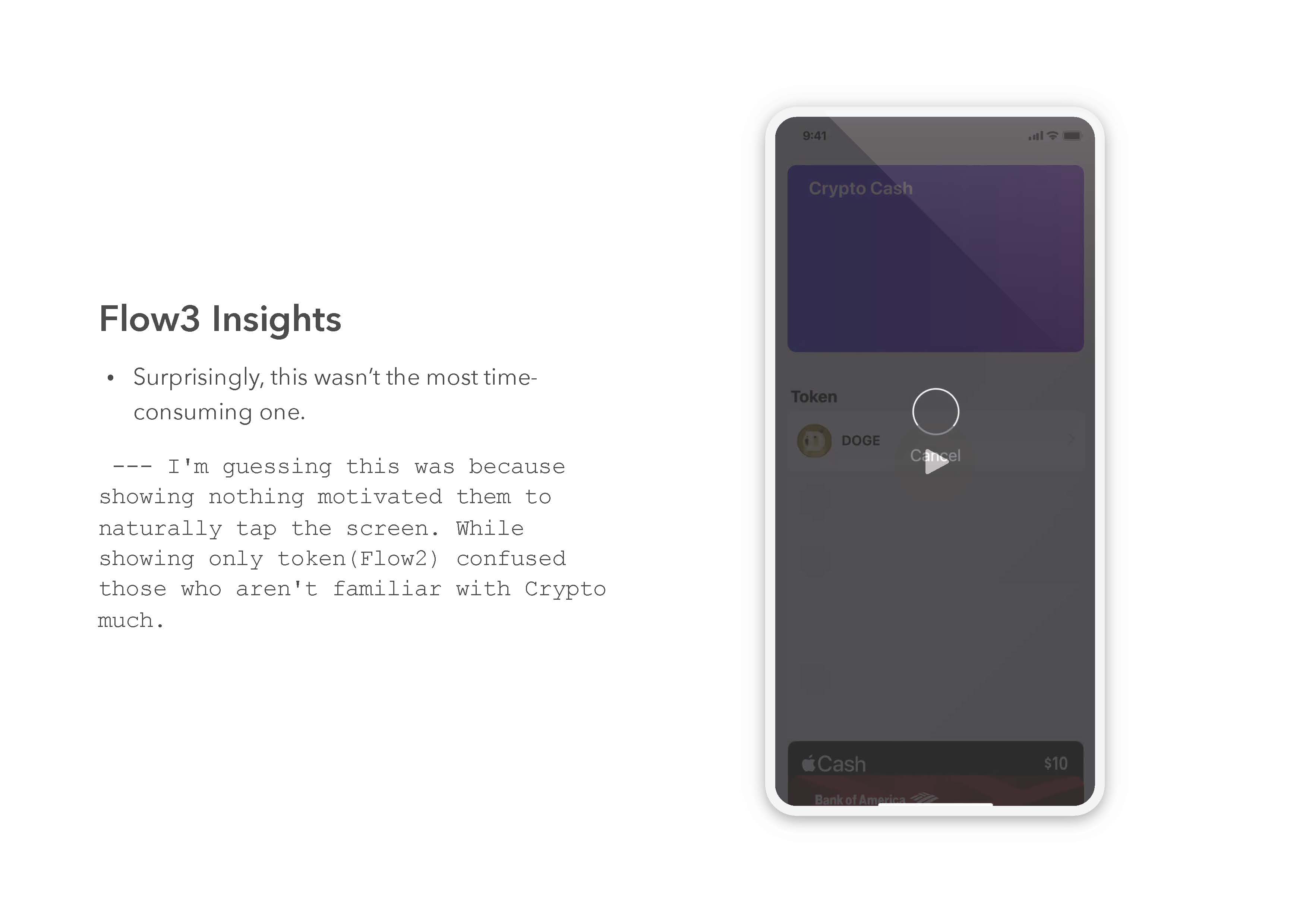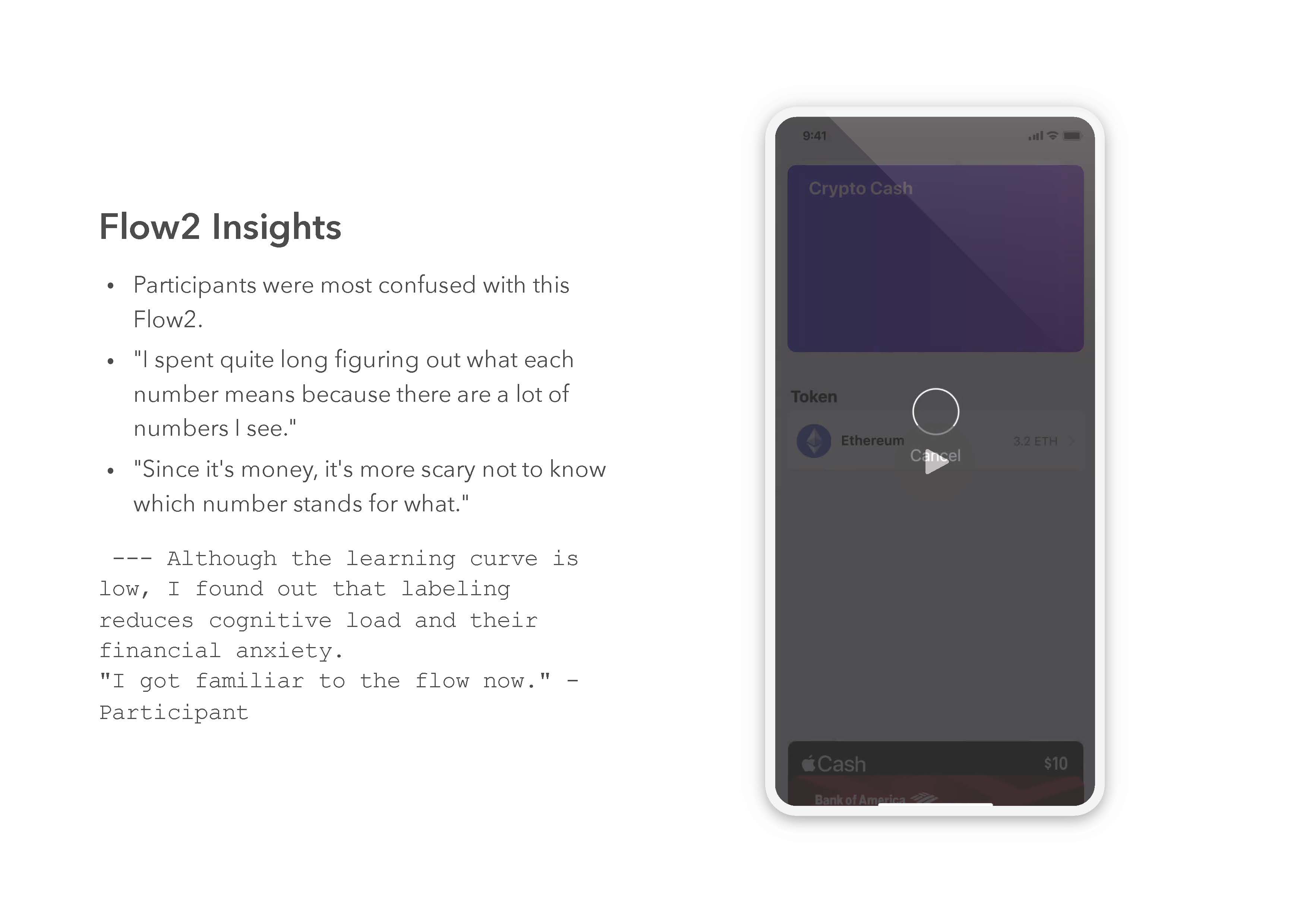 I learned how to make good HCI tests. I tried to remove as many variables as possible. For examples, I mixed up the order of tasks which users went through so that I could remove one variable that they could finish the last task faster than the other two. Also, how to work with both quantitative and qualitative measurements. Regarding Crypto and Apple Wallet, I could identify why apple wallet is considered the best among other payment apps and what challenges crypto payment faces.