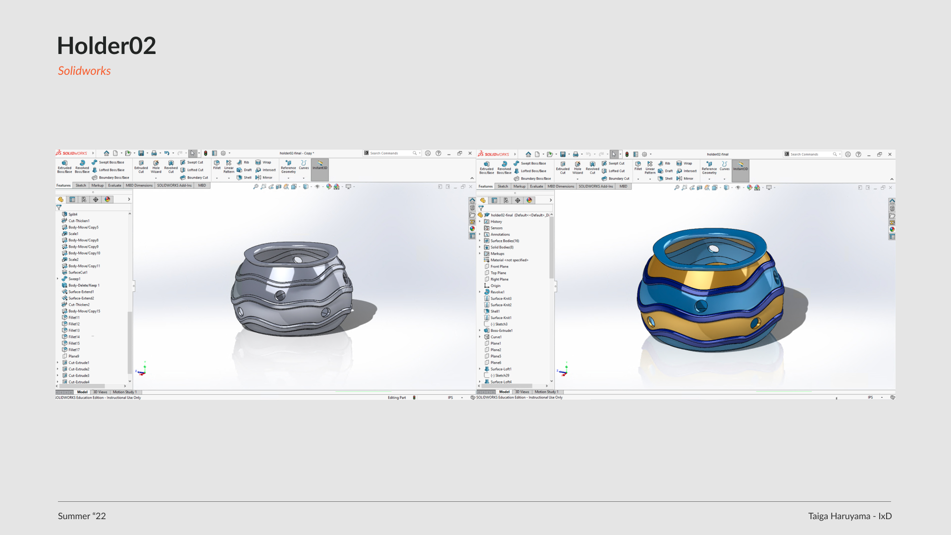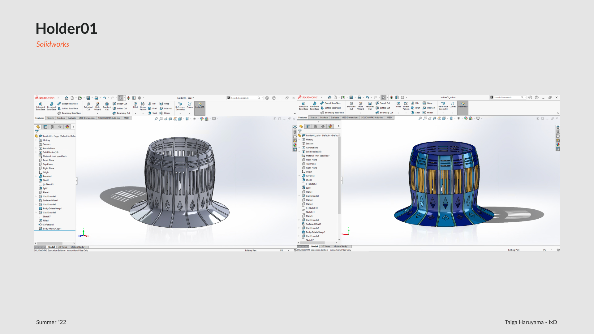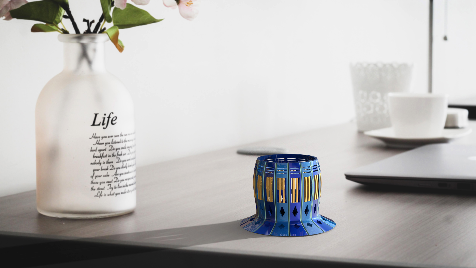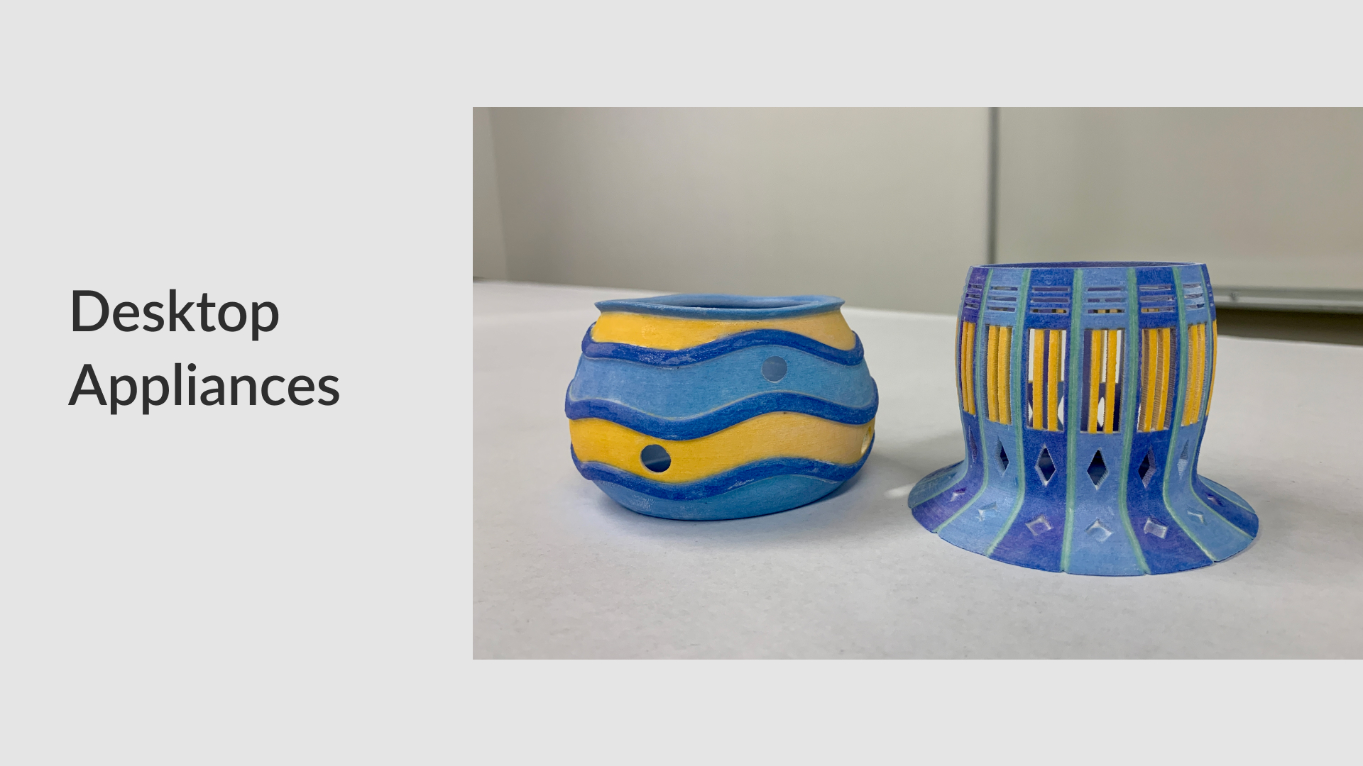 Create a vase and desktop appliances in SolidWorks. Use Slicer Fusion 360 to assemble the vase. Use 3D print to make the desktop appliances. Use KeyShot to create renderings of them.