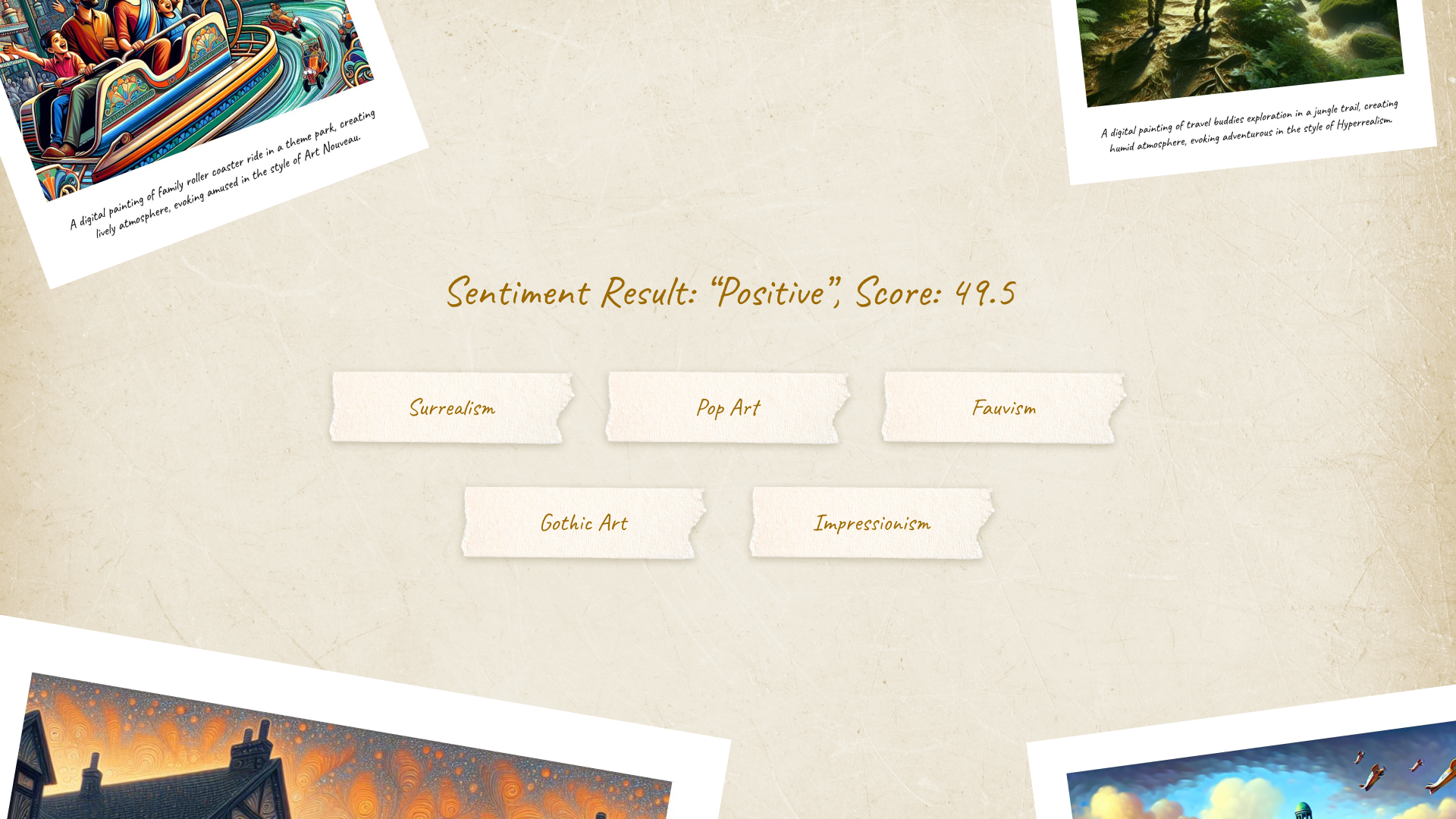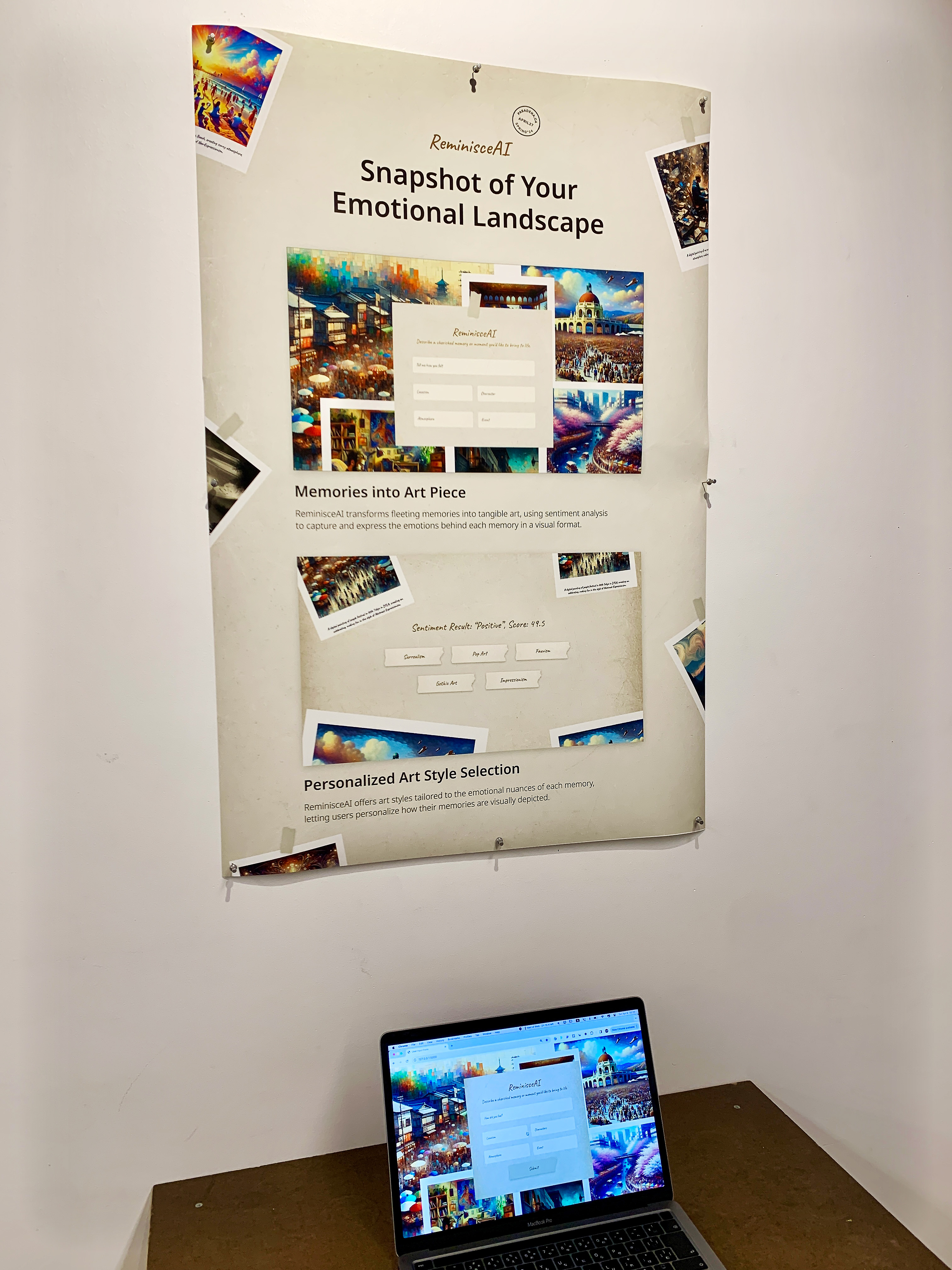 ReminisceAI transforms fleeting memories into tangible art, using sentiment analysis to capture and express the emotions behind each memory in a visual format. In this project, I worked on both design and development by myself. I designed UI, experience and developed this application using: Python, API, HTML, CSS, and JavaScript.
