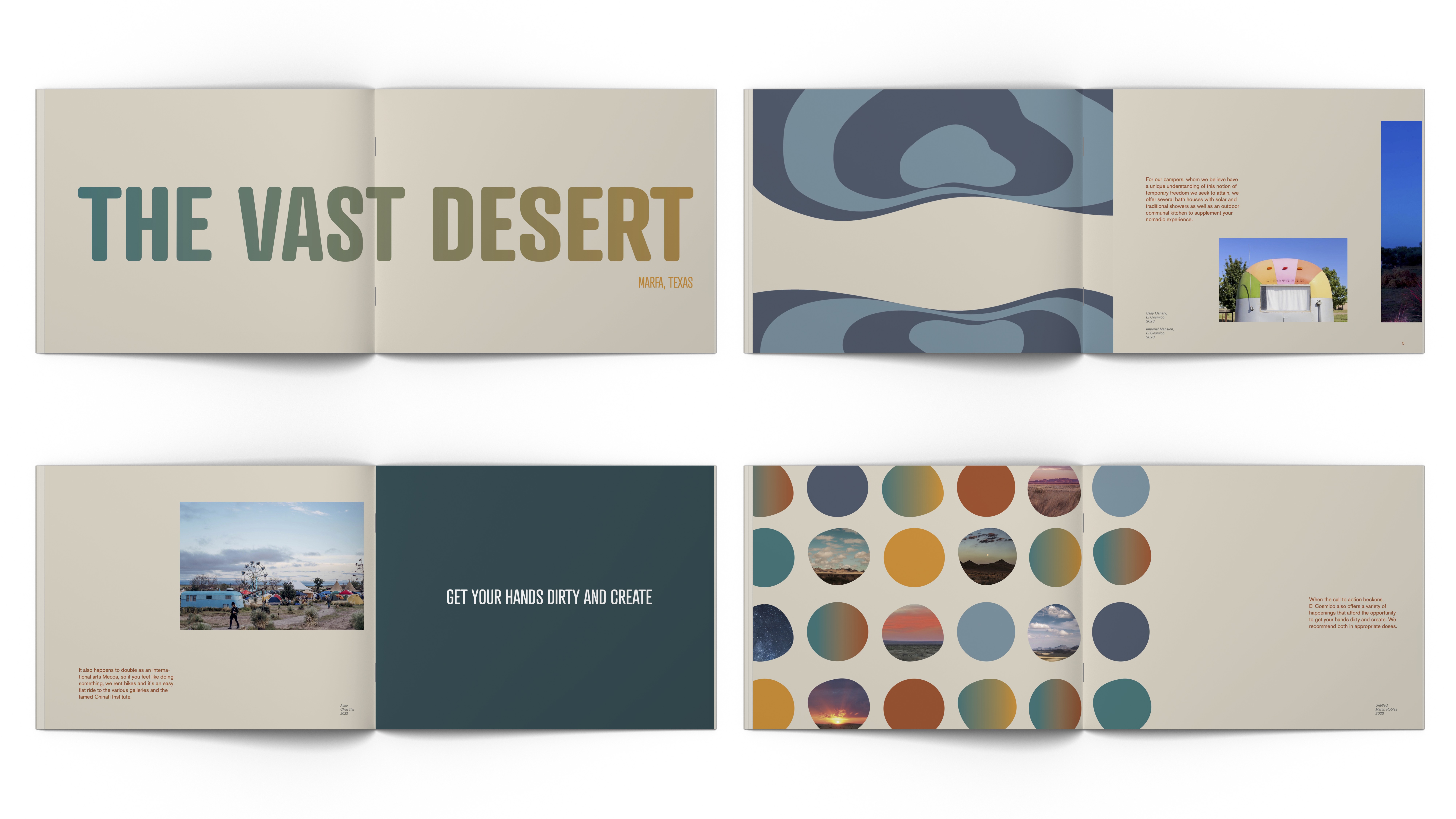 I created a new logo and visual system that emphasizes the adaptability of the desert to be an escape and to reflect the unexpected and immersive quality of El Cosmico.
