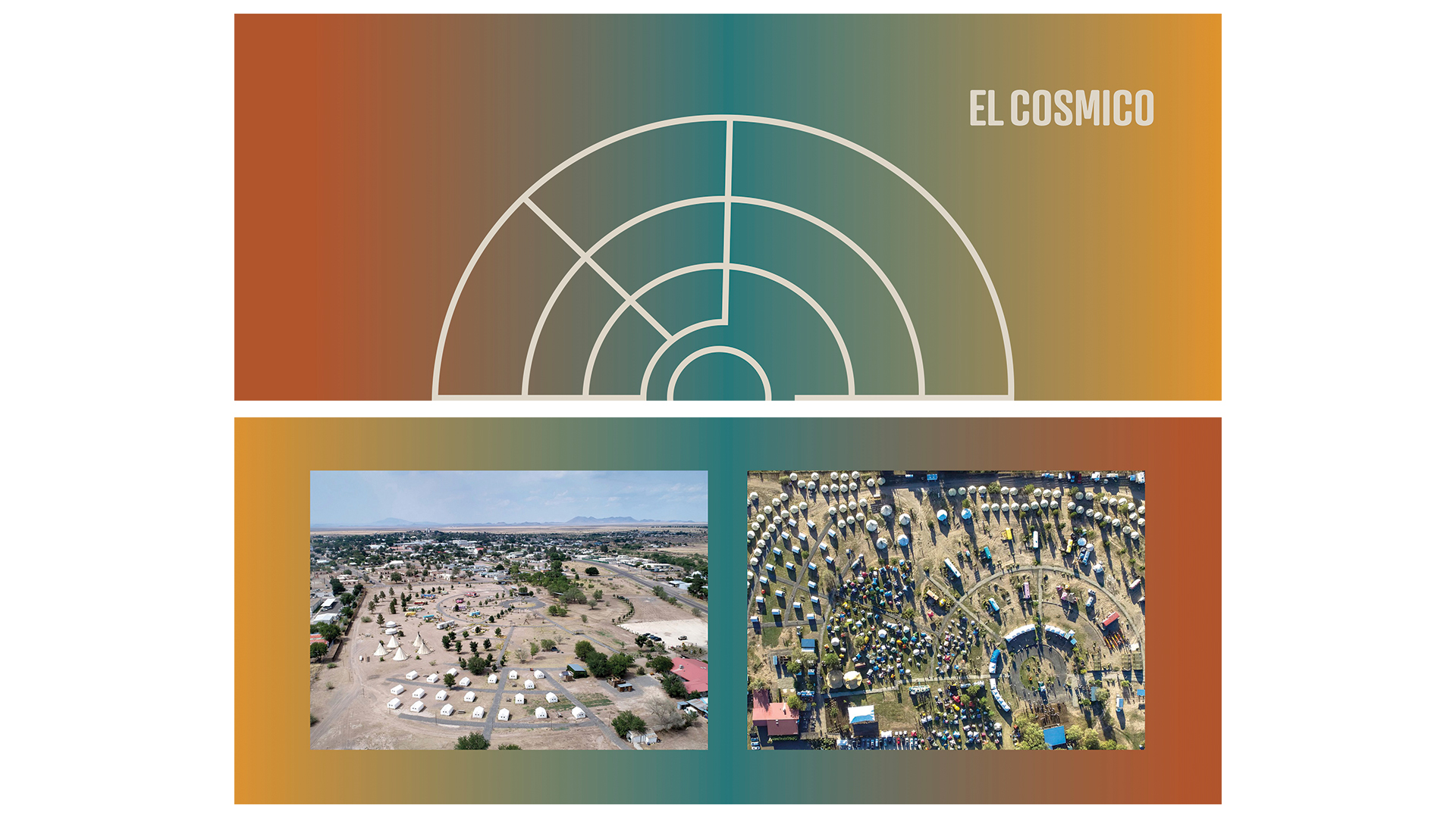 The core concept of my design is the location. The logo is derived from the aerial view of El Cosmico’s campground. It also represents the sun and the sky while the imperfect circle represents the adaptive nature of the desert.