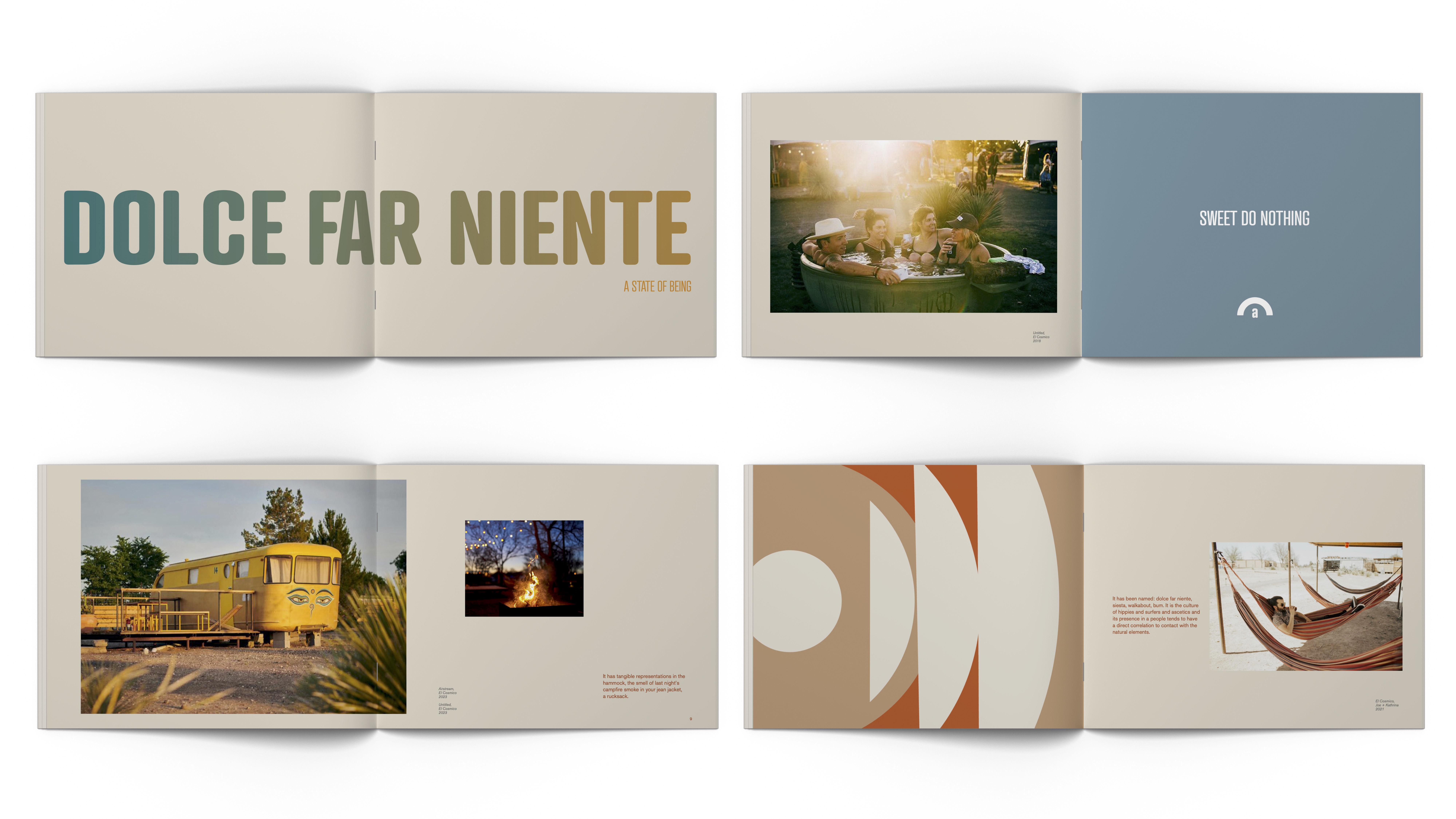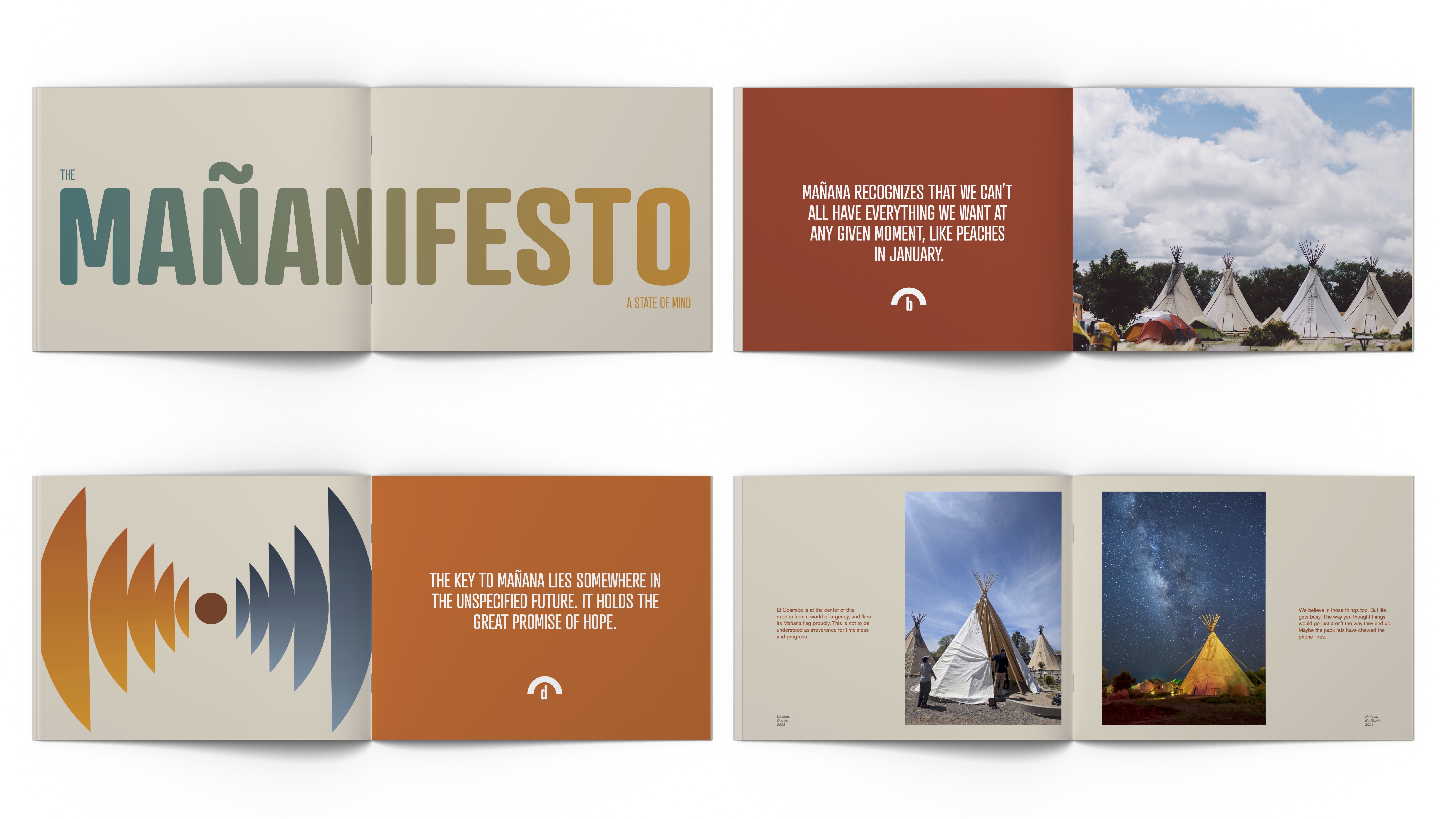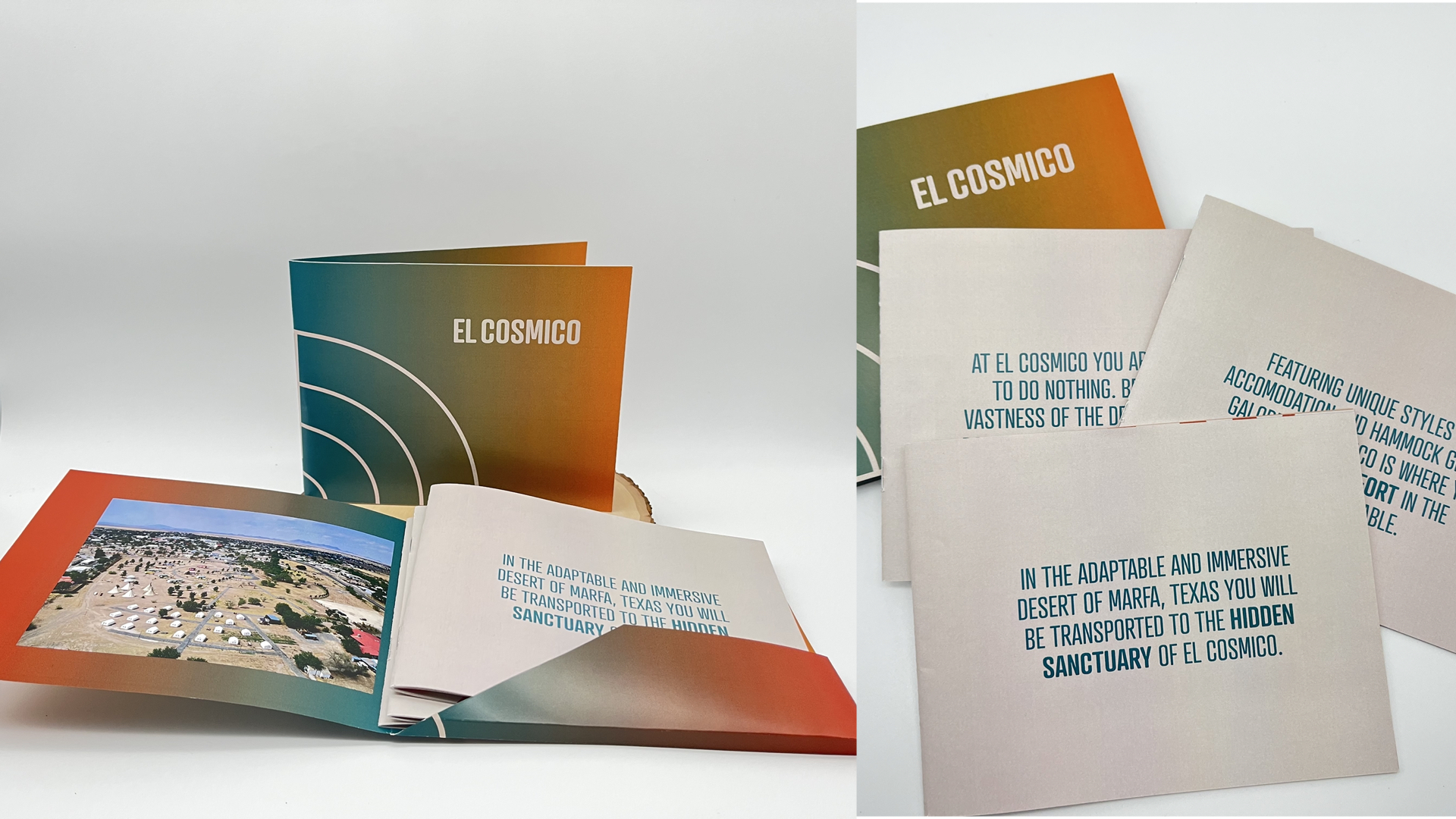 This booklet gives the guest an opportunity to connect with El Cosmico. The small body copy is for those interested in learning more but the overall message can be understood through the large type and imagery.