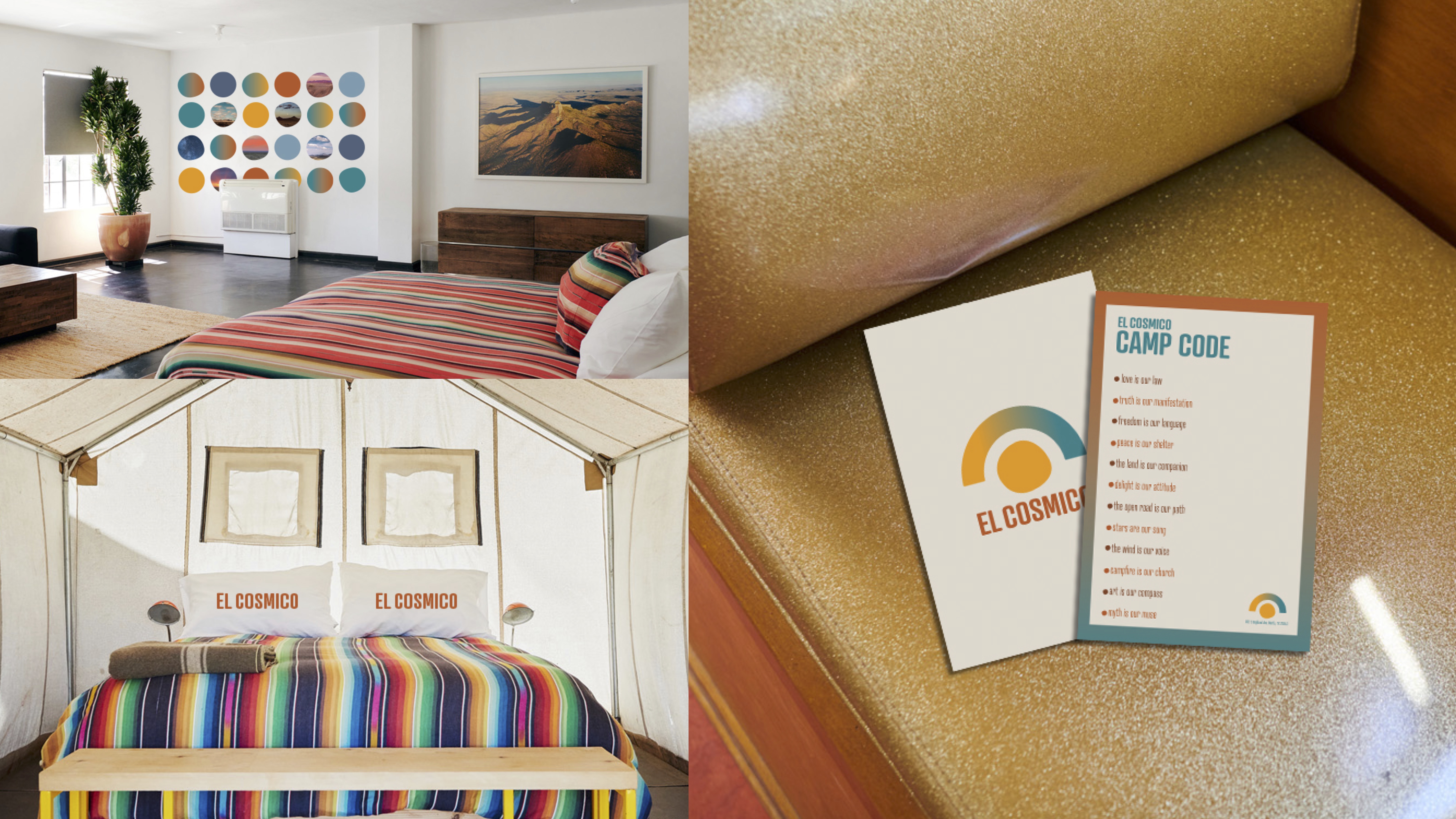 El Cosmico is known for their textile designs, my proposal is to emphasize the textile design by creating a visual system that doesn’t compete but works seamlessly together.