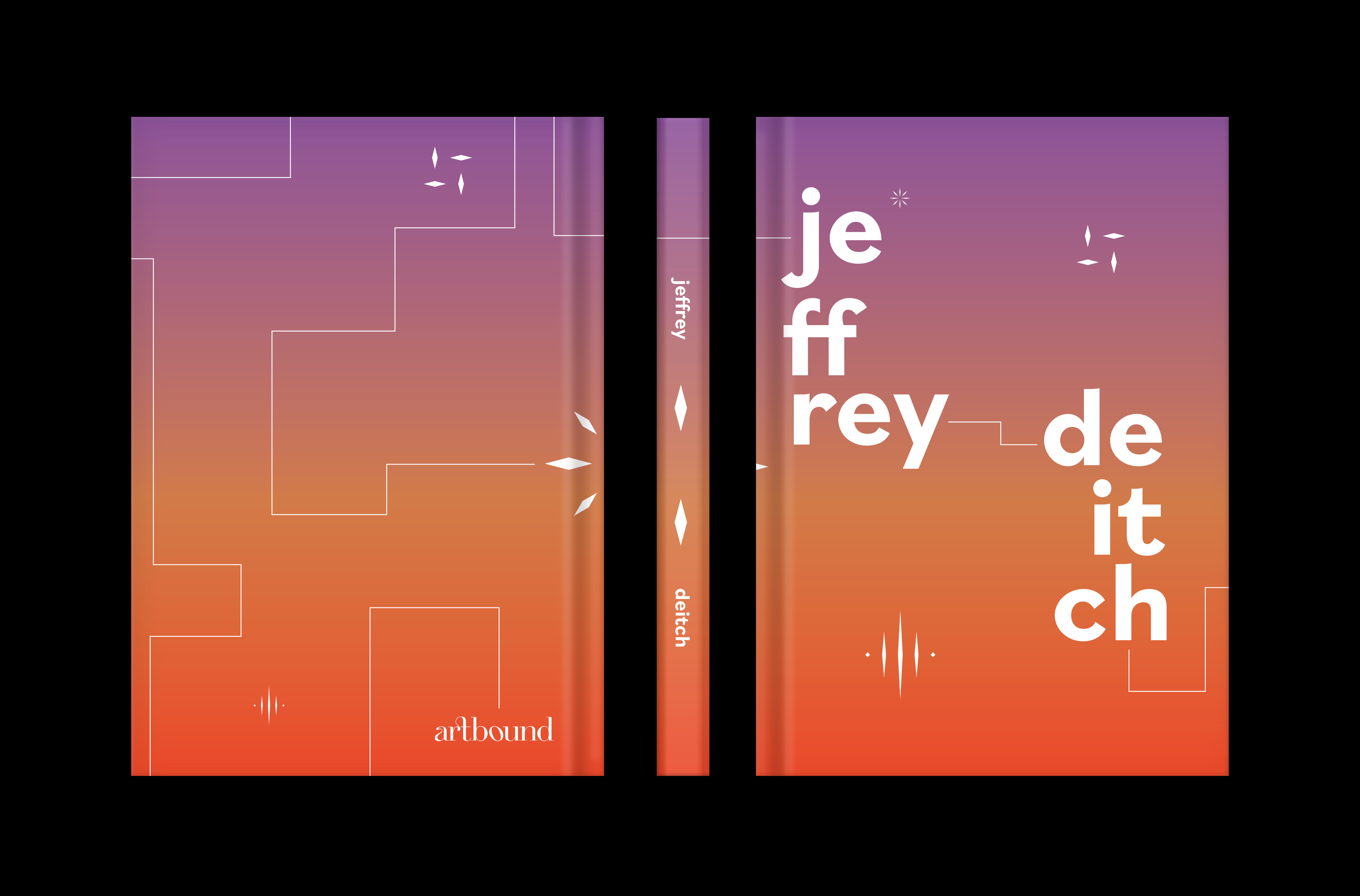 To continue to show Deitch’s personality I designed the titles of each article to utilize different glyphs and interesting and unusual forms. Letting words cross over to the next page, having thin lines point you to the next word of the title and mimicking this as a miniature running head. I also utilized this technique on the front and back cover.
