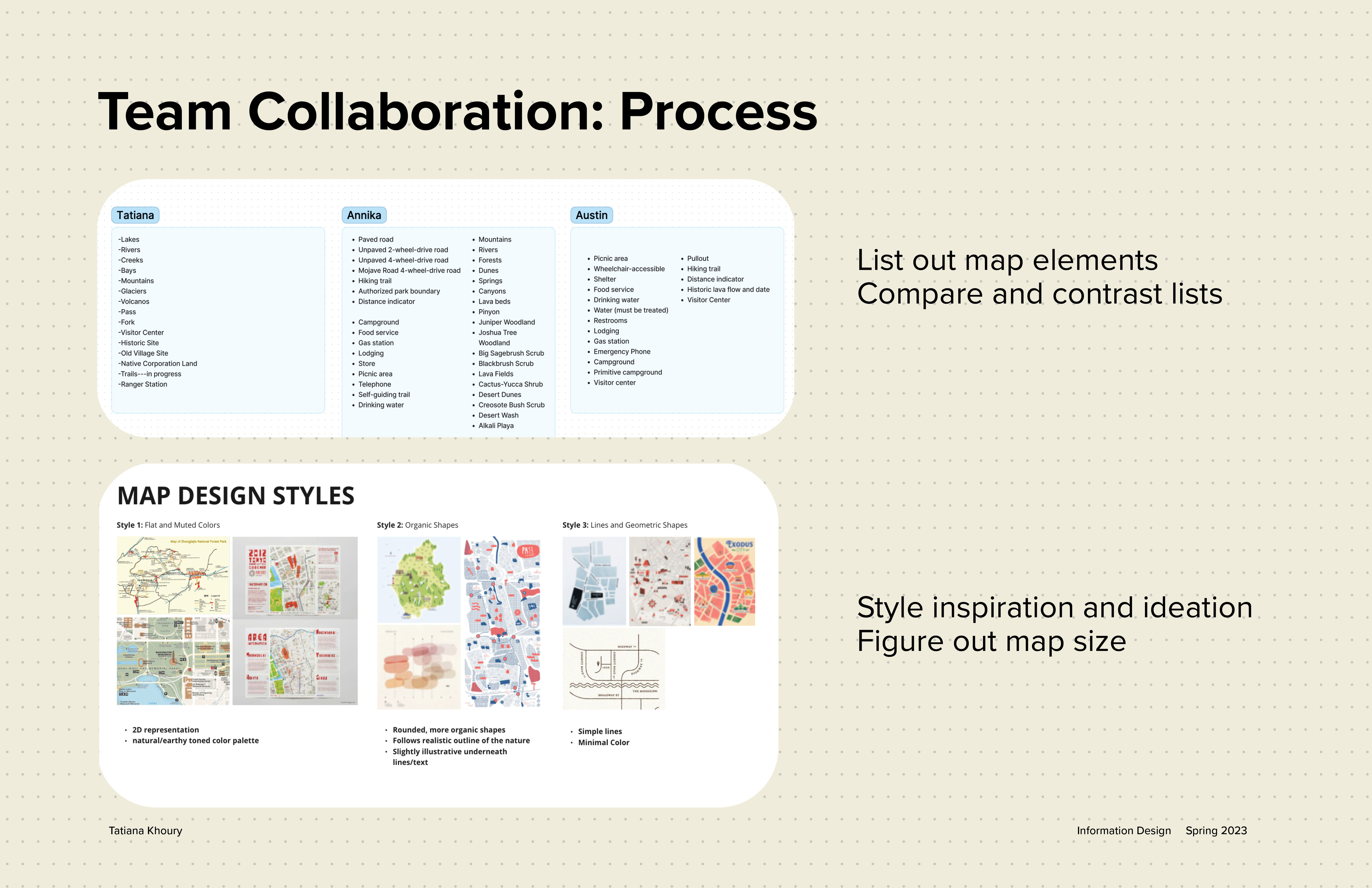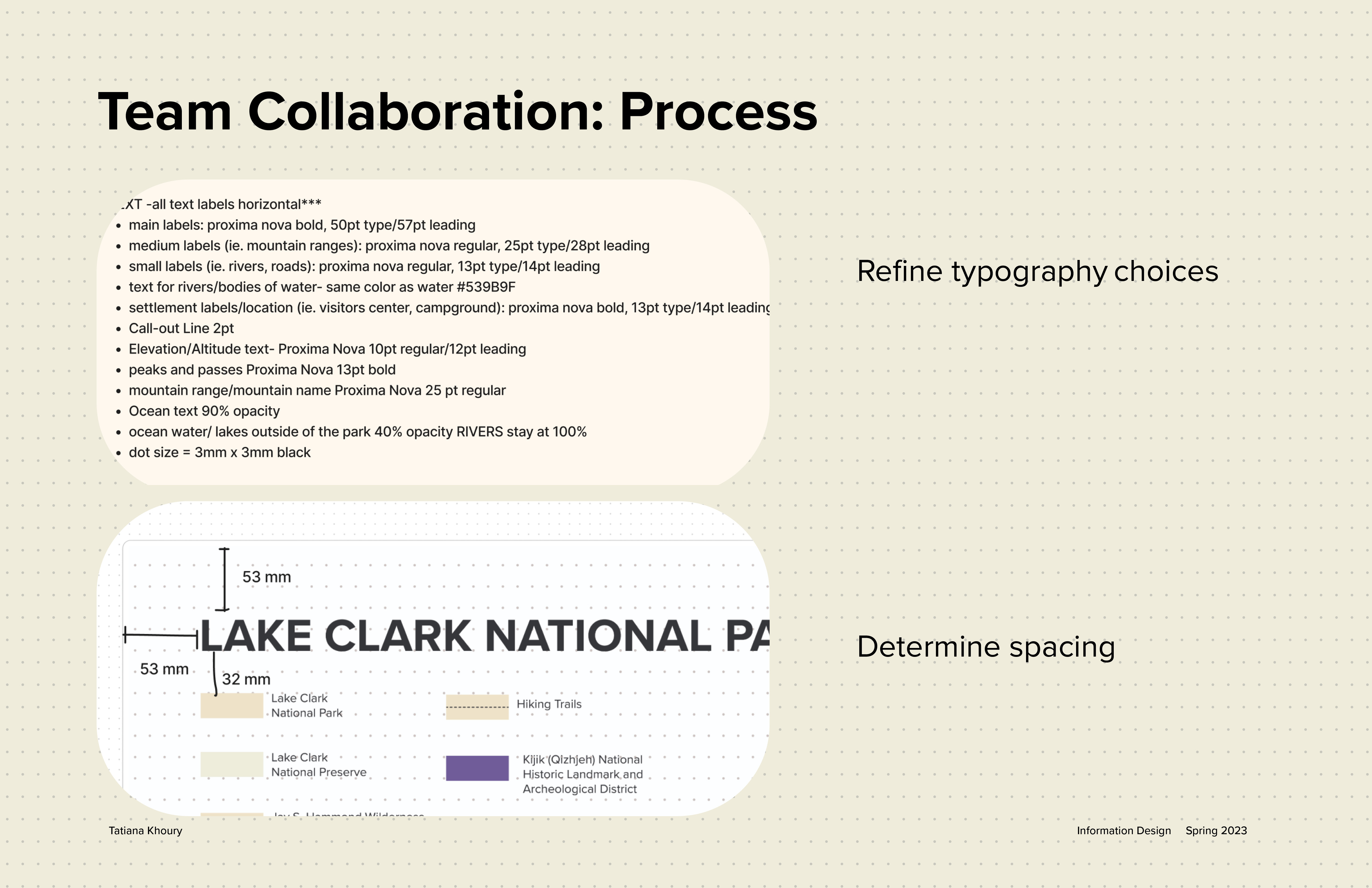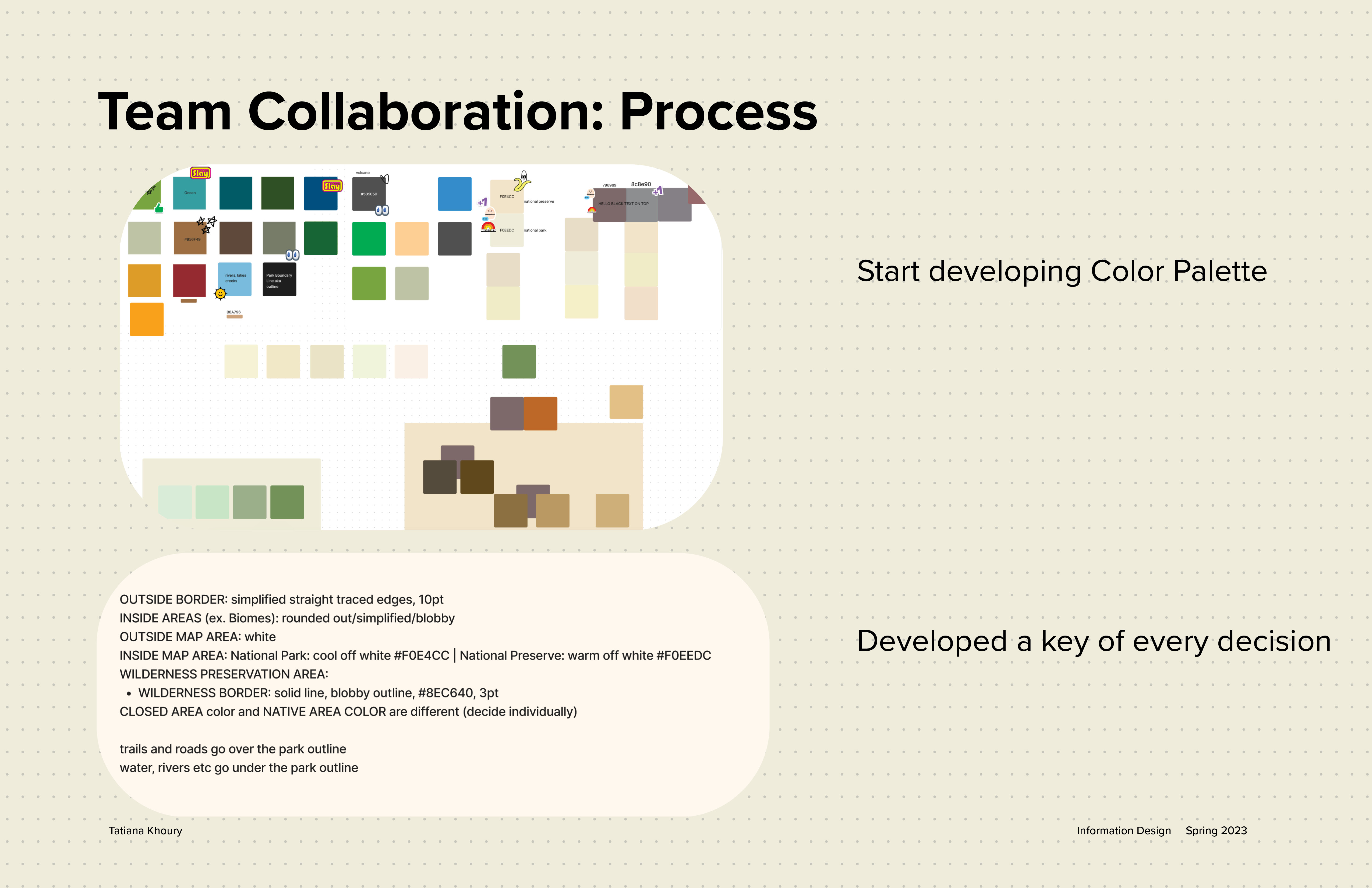 This project taught me so much about collaboration and making decisions together. It was really cool to see what every team member brought to the table and how it allowed us to work effectively. I also learned a lot about creating a system, making decisions collaboratively and being organized throughout the design process as well as with the final decisions, so that someone else can follow the same system down the line.