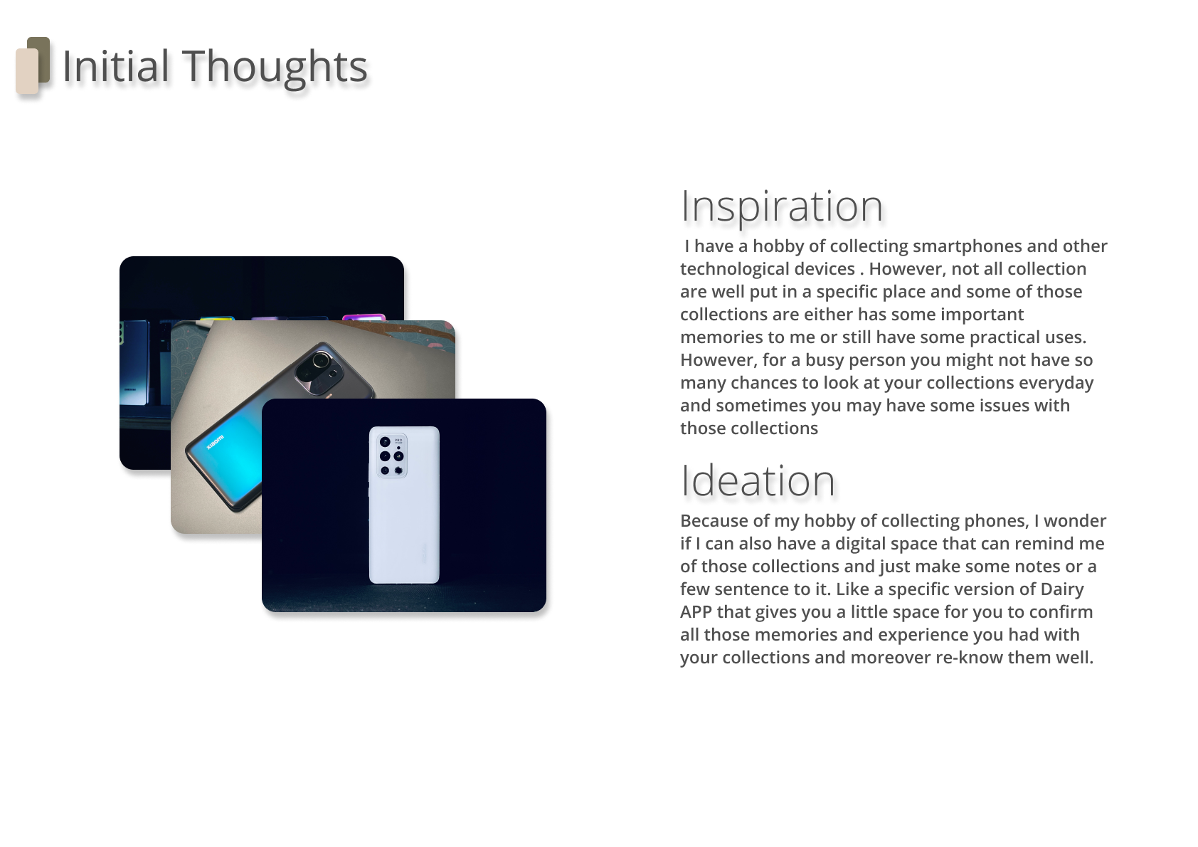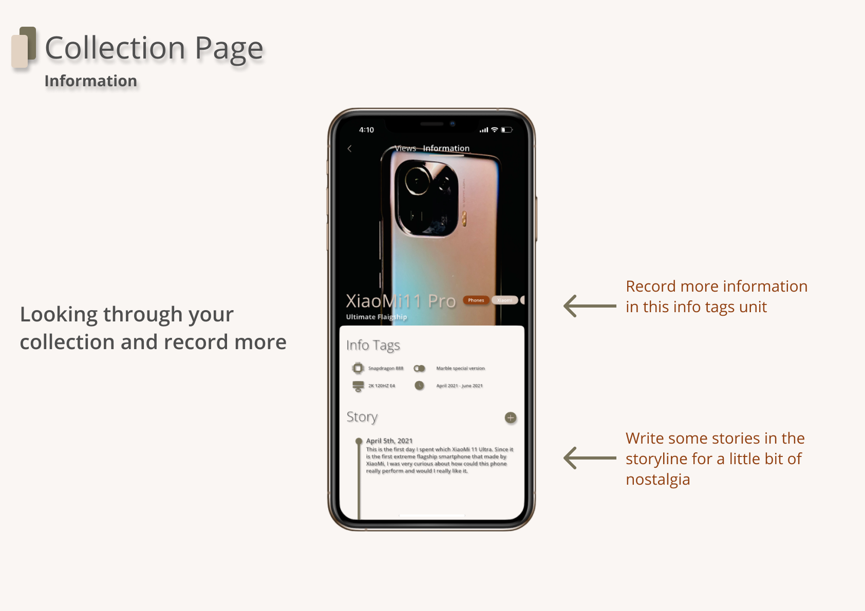 This is the first IXD personal project for me. Since I' a phone collector, I've bought and sell over 50 smartphones in my life. Some of them are really nice to use, and some of them has their special characteristic, because of those special memory I had with them, I want to create a better tool to record and recall those beautiful memories.