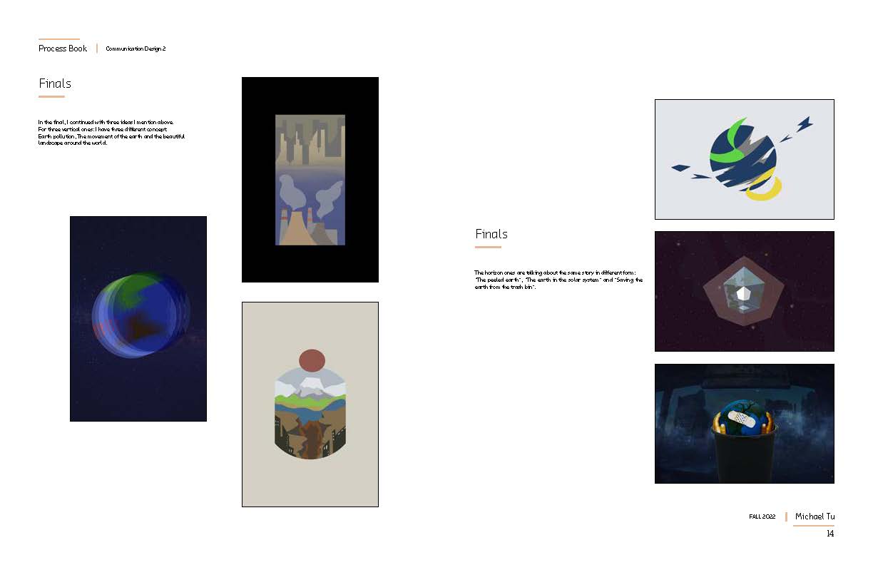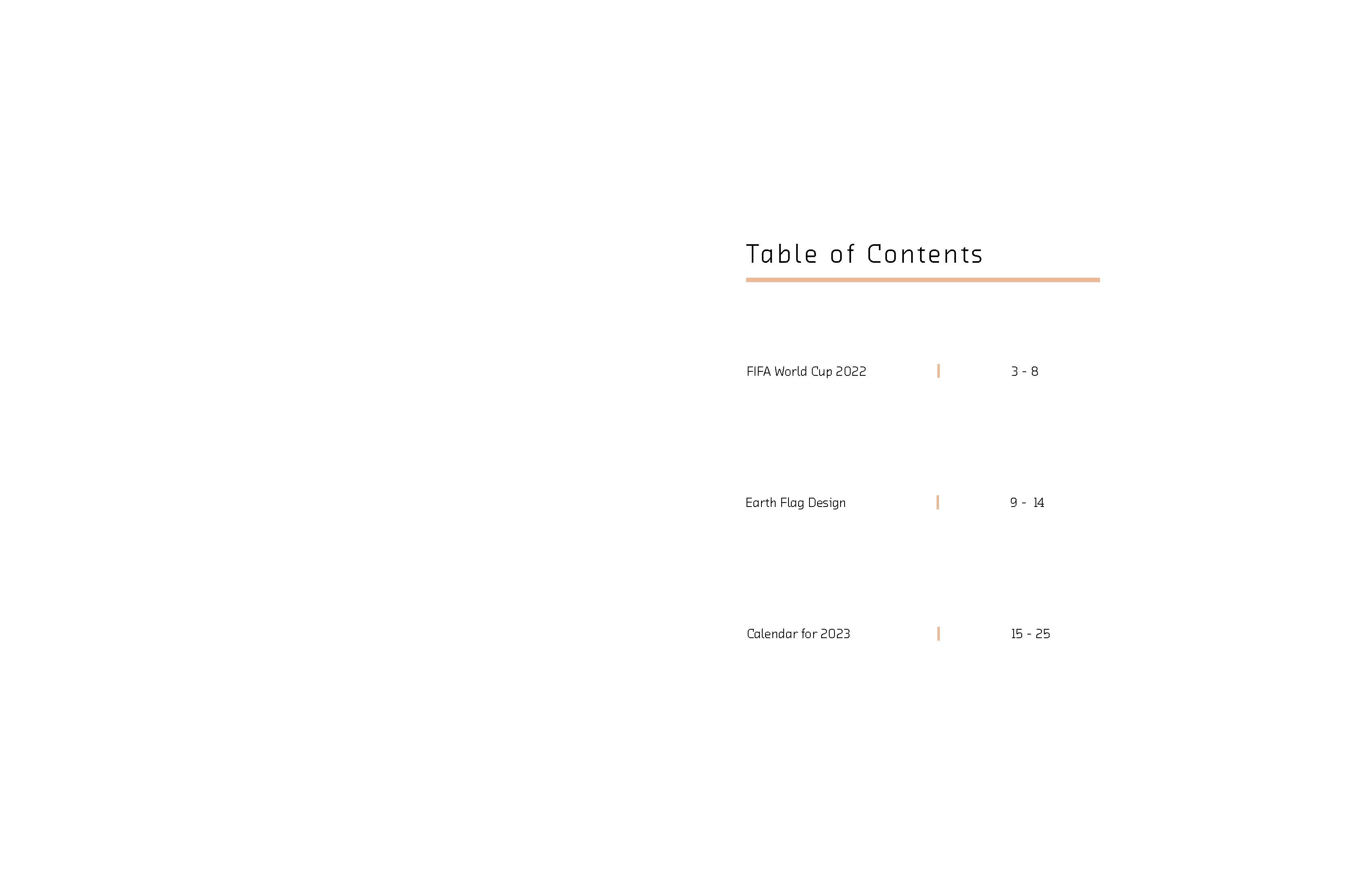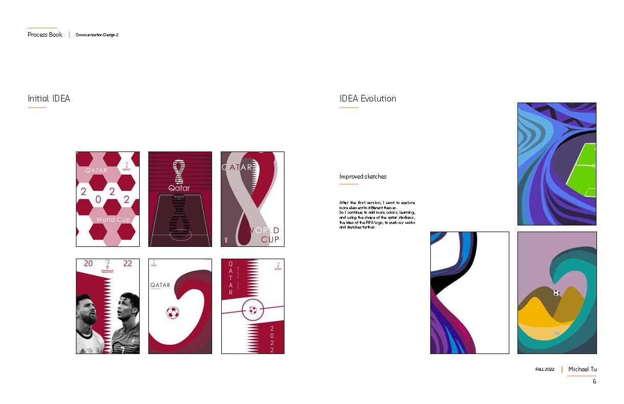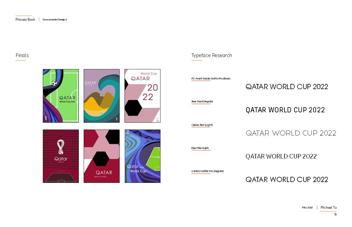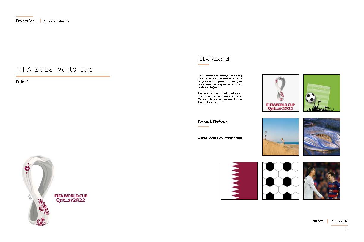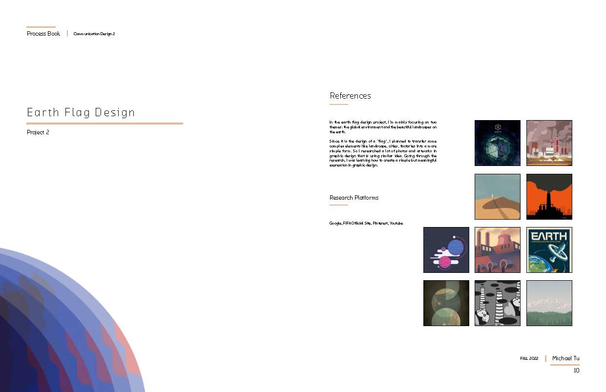 This is the whole processbook that showing all the works I did for in communication design2, which includes the poster design for FIFA 2022 Qatar World Cup, The Earth Flag Design, and also the Calendar Design for 2023.