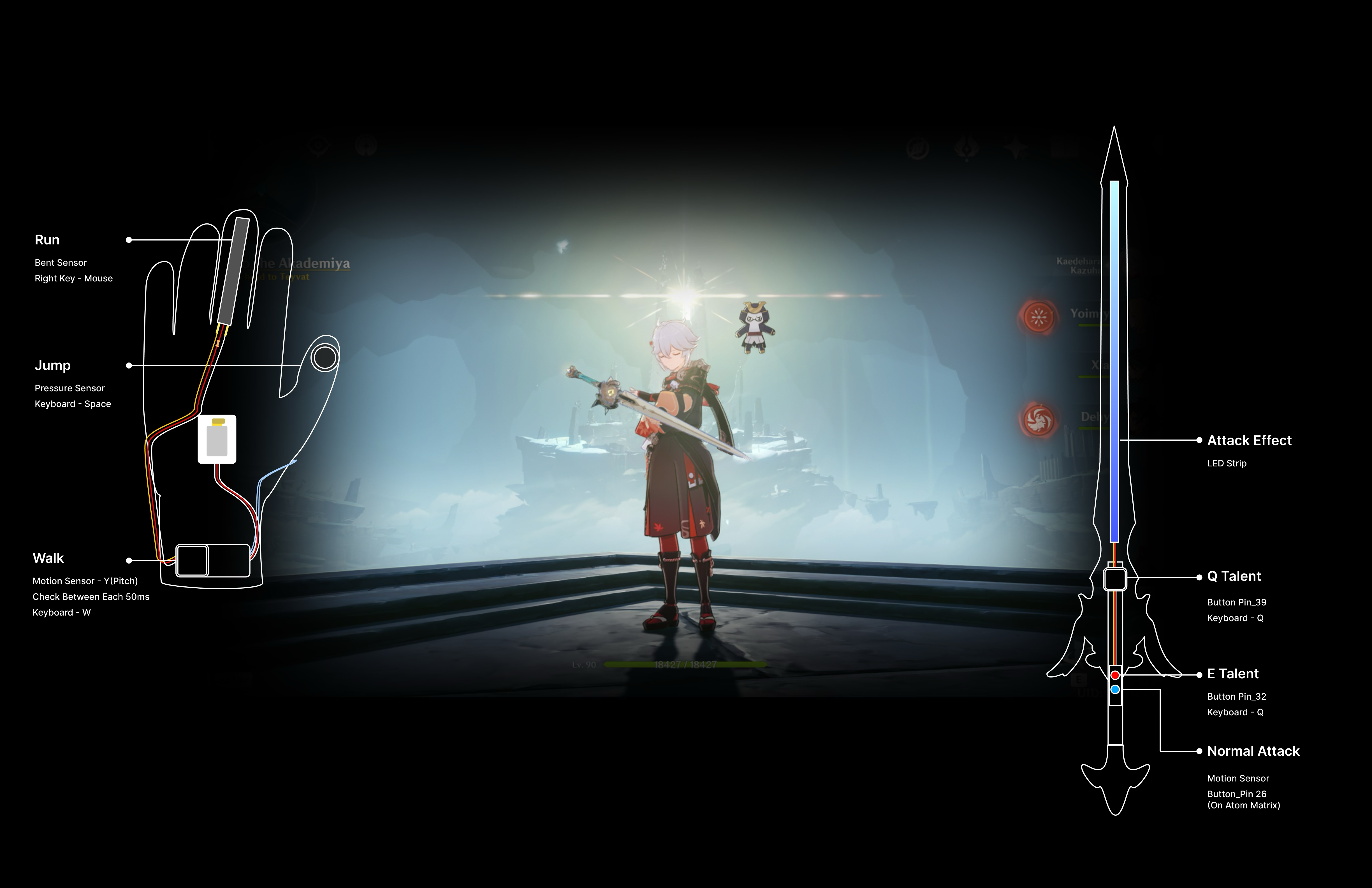 The Freedom Sworn & Magic Glove are two gaming accessories used in "Genshin Impact." The Freedom Sworn is a sword that uses motion and light to enhance attack-related features. The Magic Glove uses haptic and visual feedback with built-in sensors to give an immersive experience.