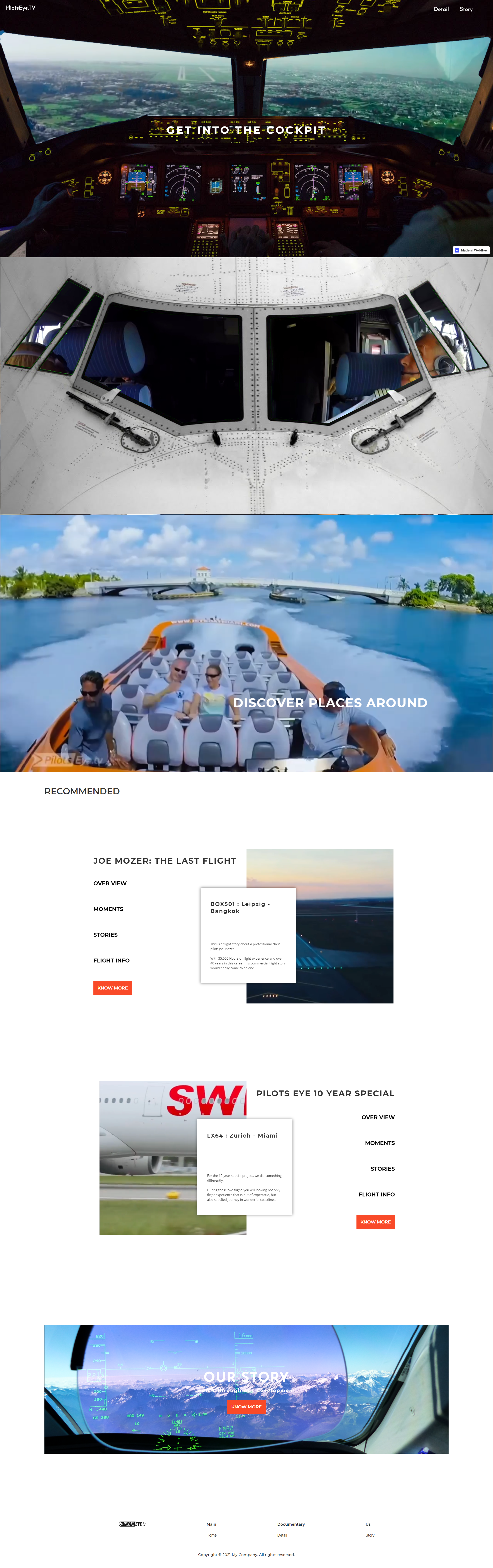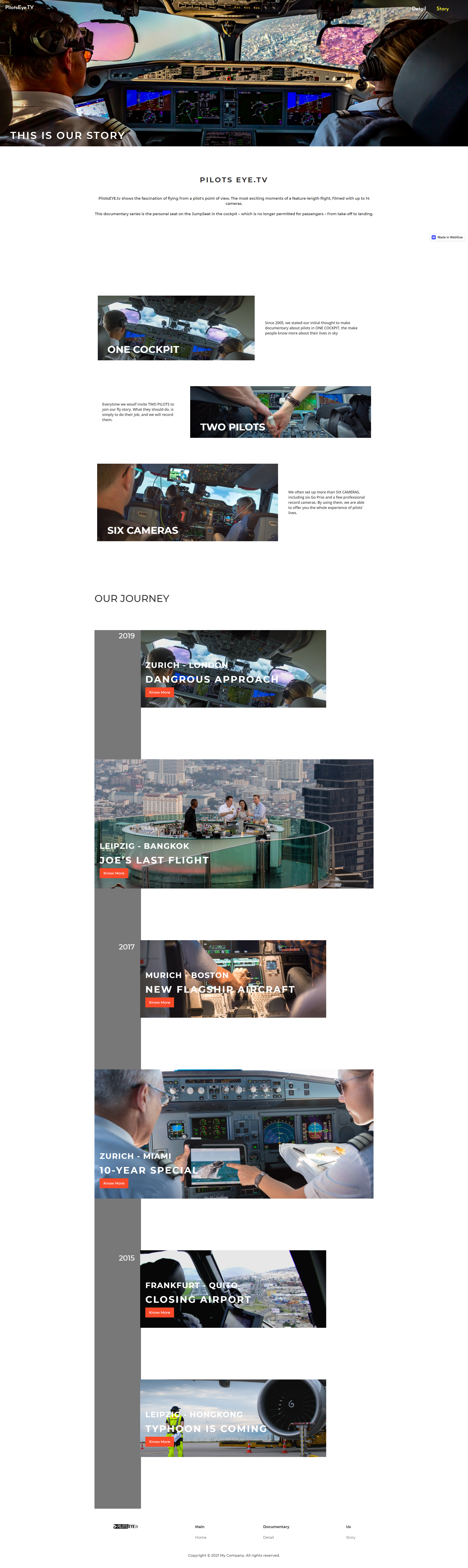 This is another website I made for a documentary: PilotsEye. In this documentary, it shows what the pilots do inside the cockpit and what their life around the world looks like. To mainly combine the animation and interaction, I really play around those buttoms, transition animation inside the website to high light what the documentary main tells and why it is attractive. Moreover, I also have a chance to make it responsive to all kinds of devices like tablets and mobile phones.
