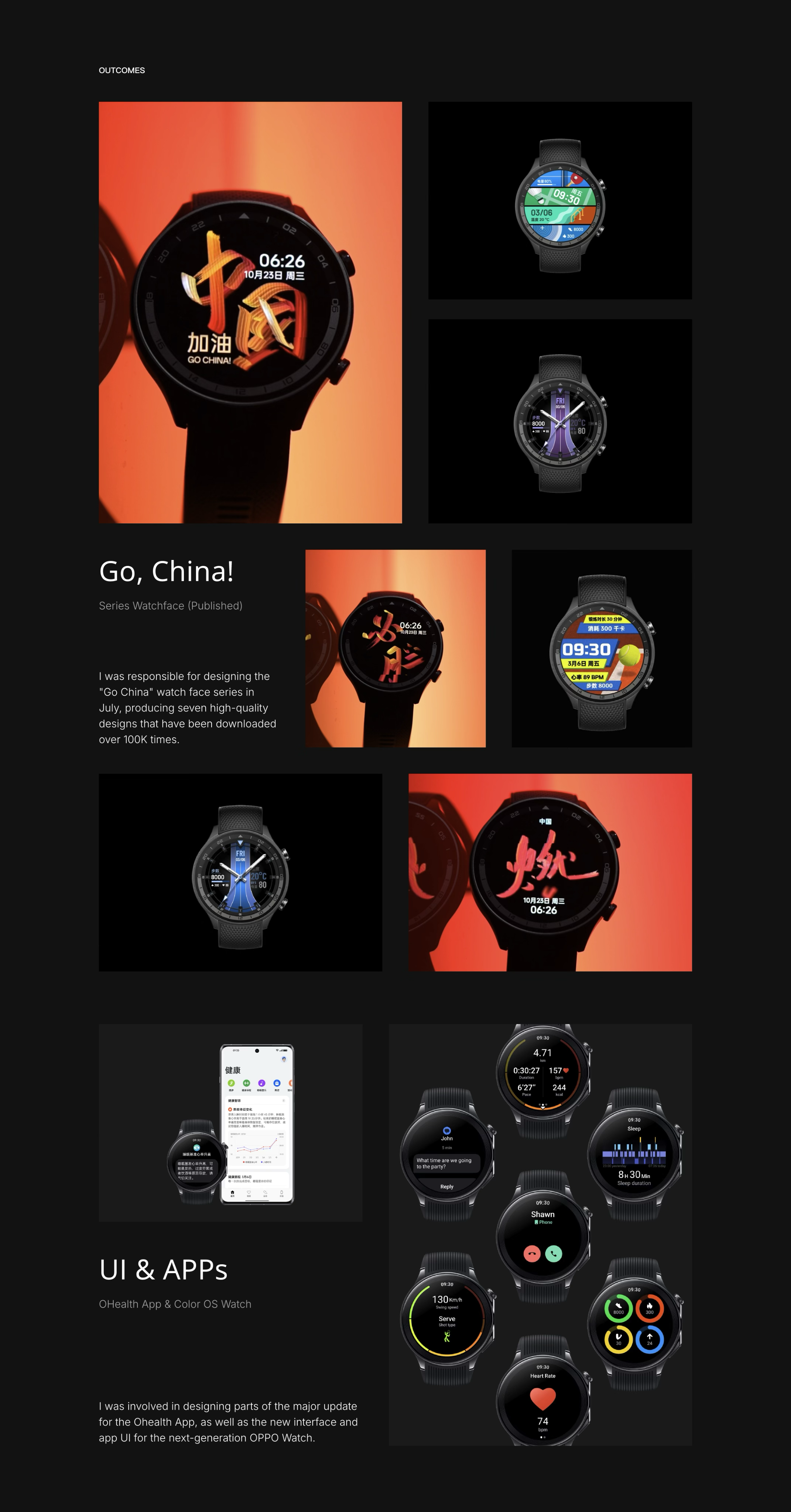 At OPPO, Michael applied a multi-platform approach to design, spanning from the Ohealth app to various watchfaces. His process involved ideating and refining UI/UX solutions for both mobile and wearable interfaces, grounded in through in-depth research and collaborative teamwork.