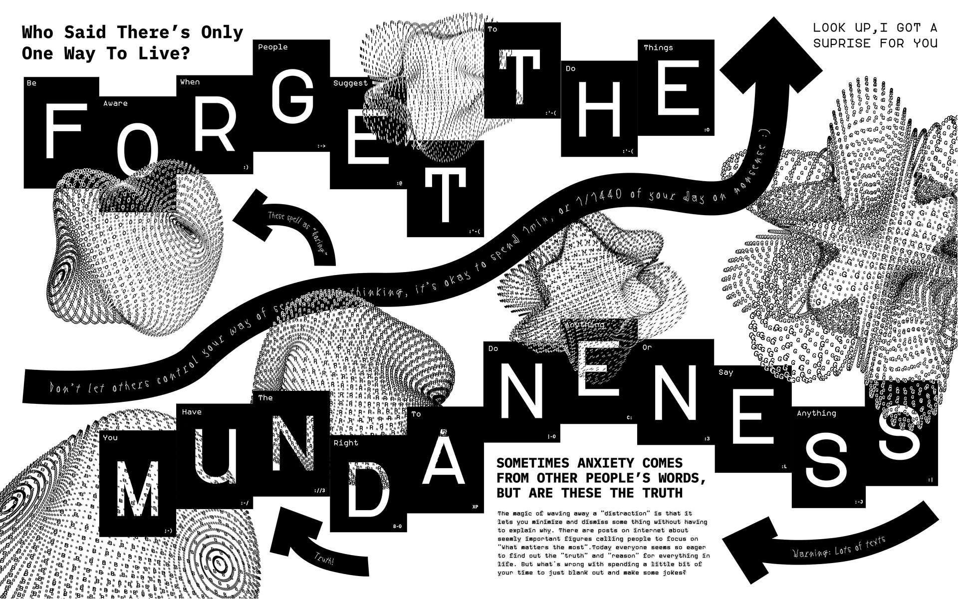 Forget the Mundaneness is a poster designed for outdoor installation.