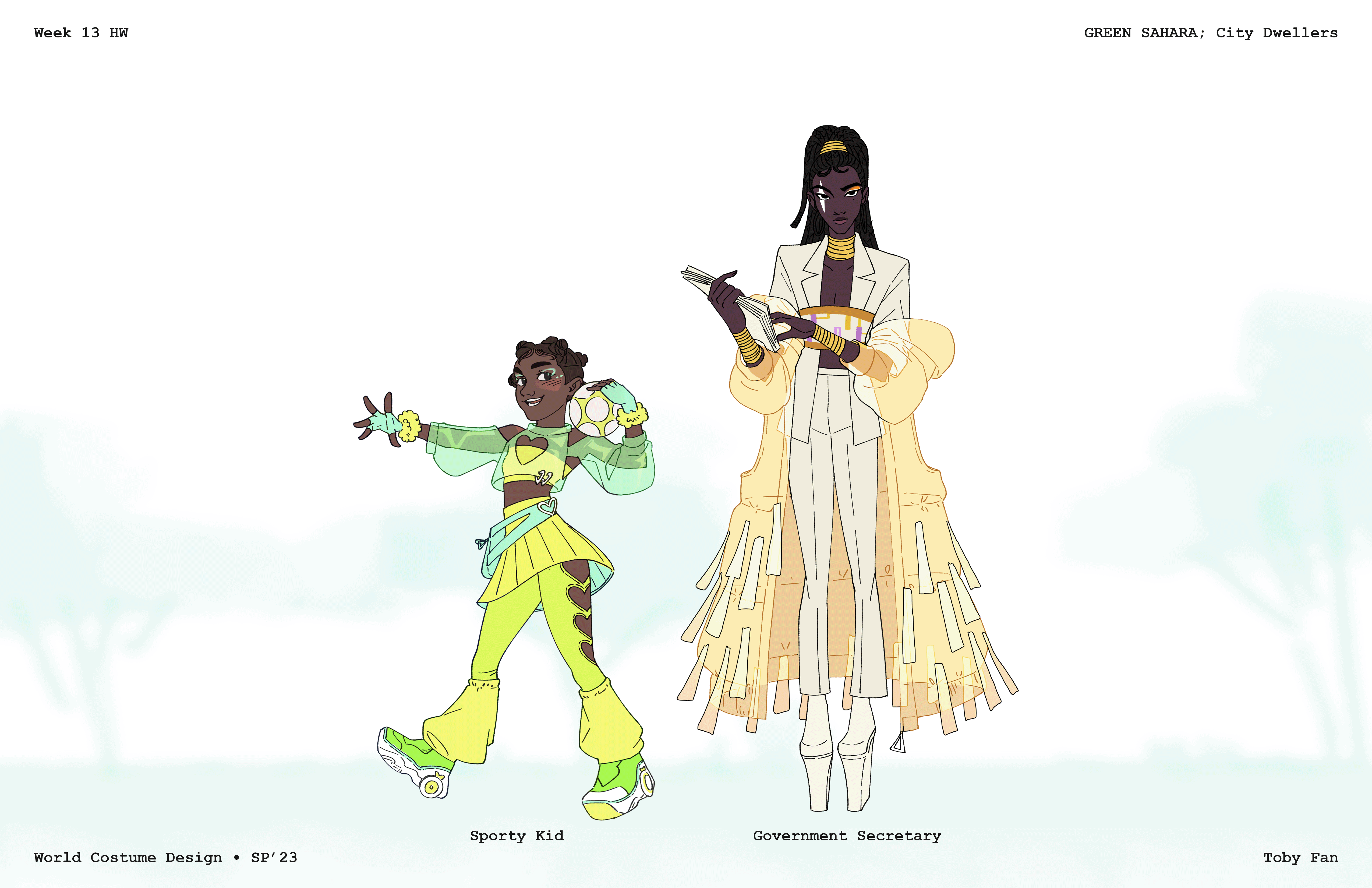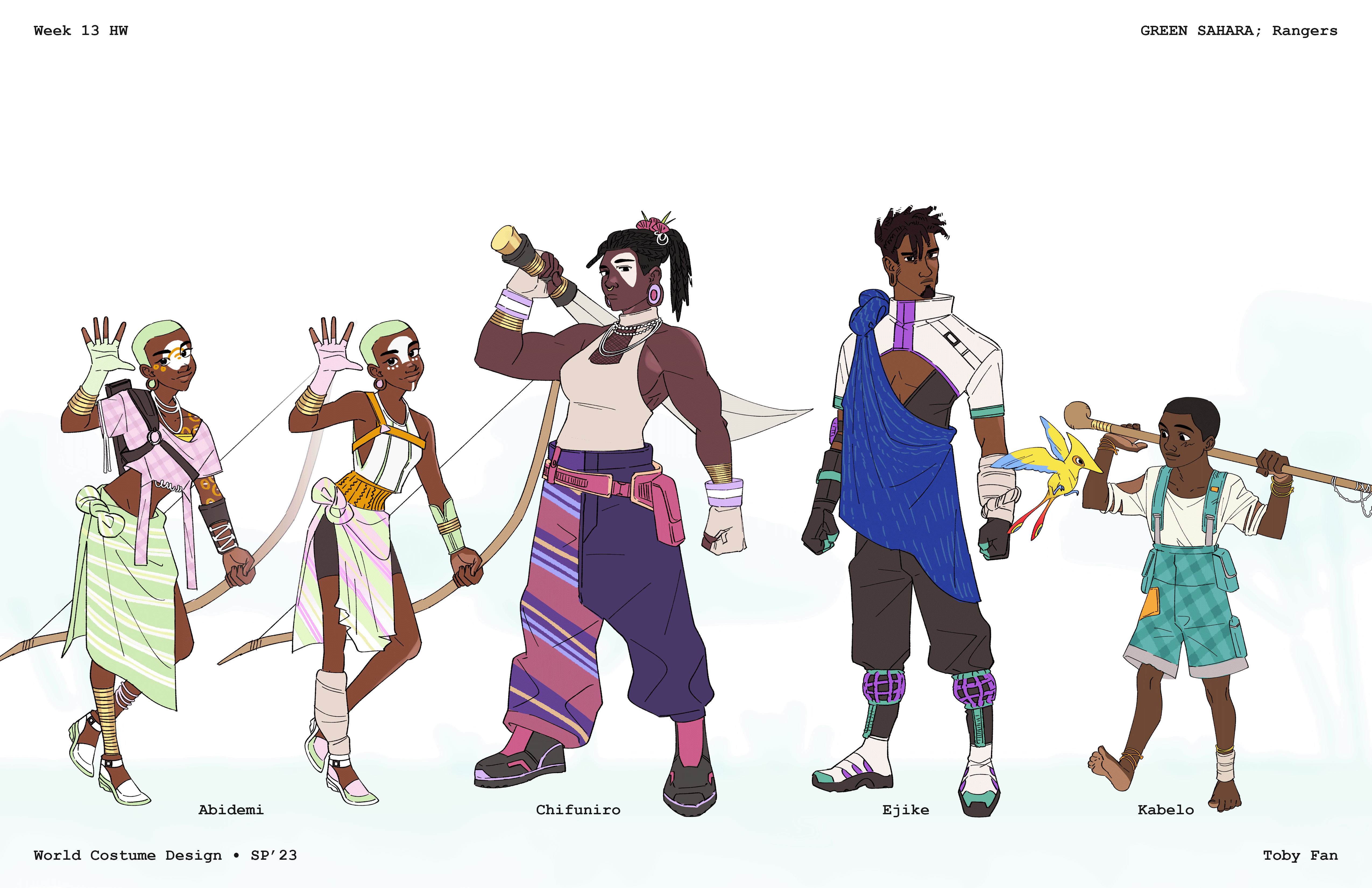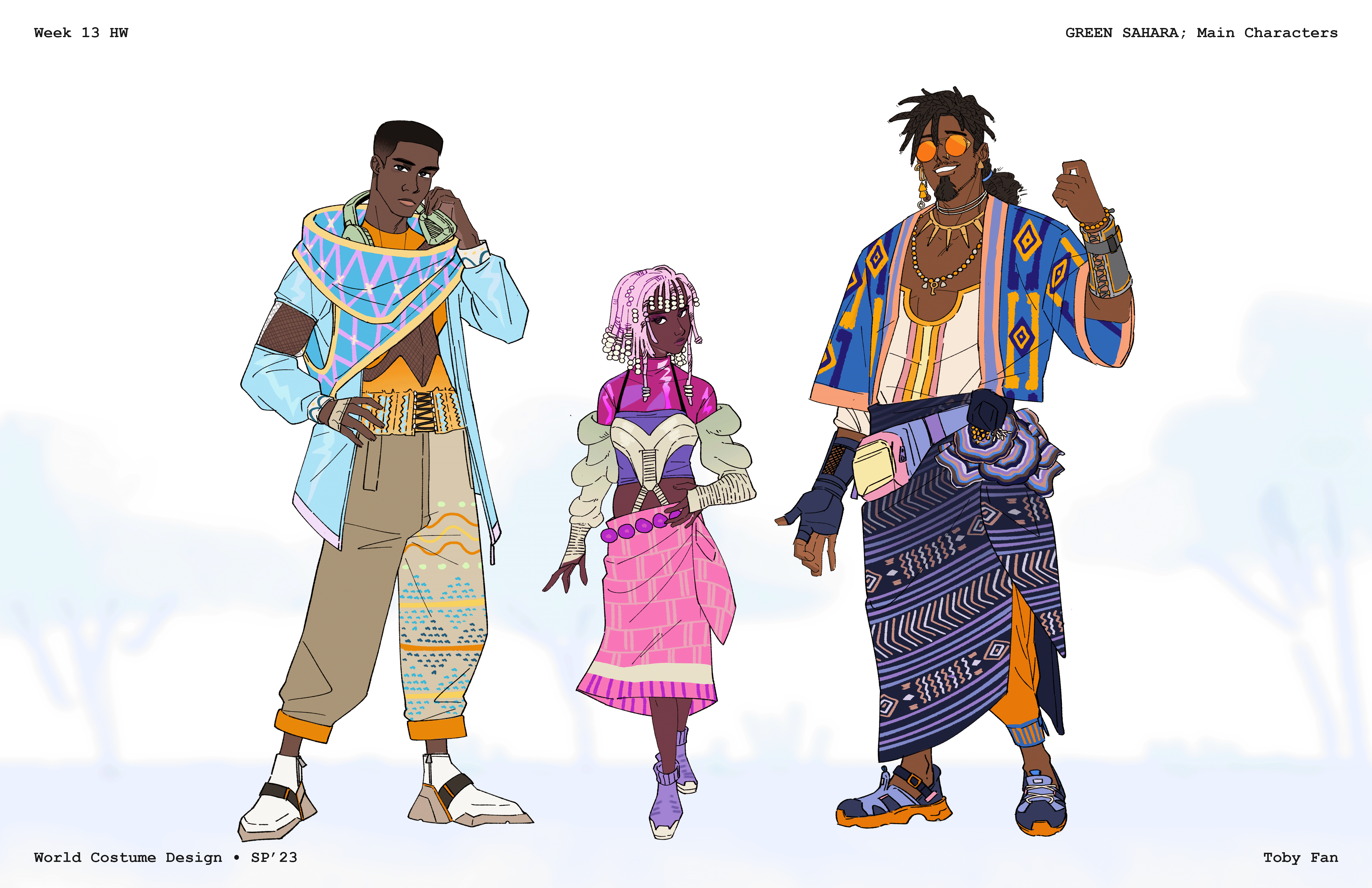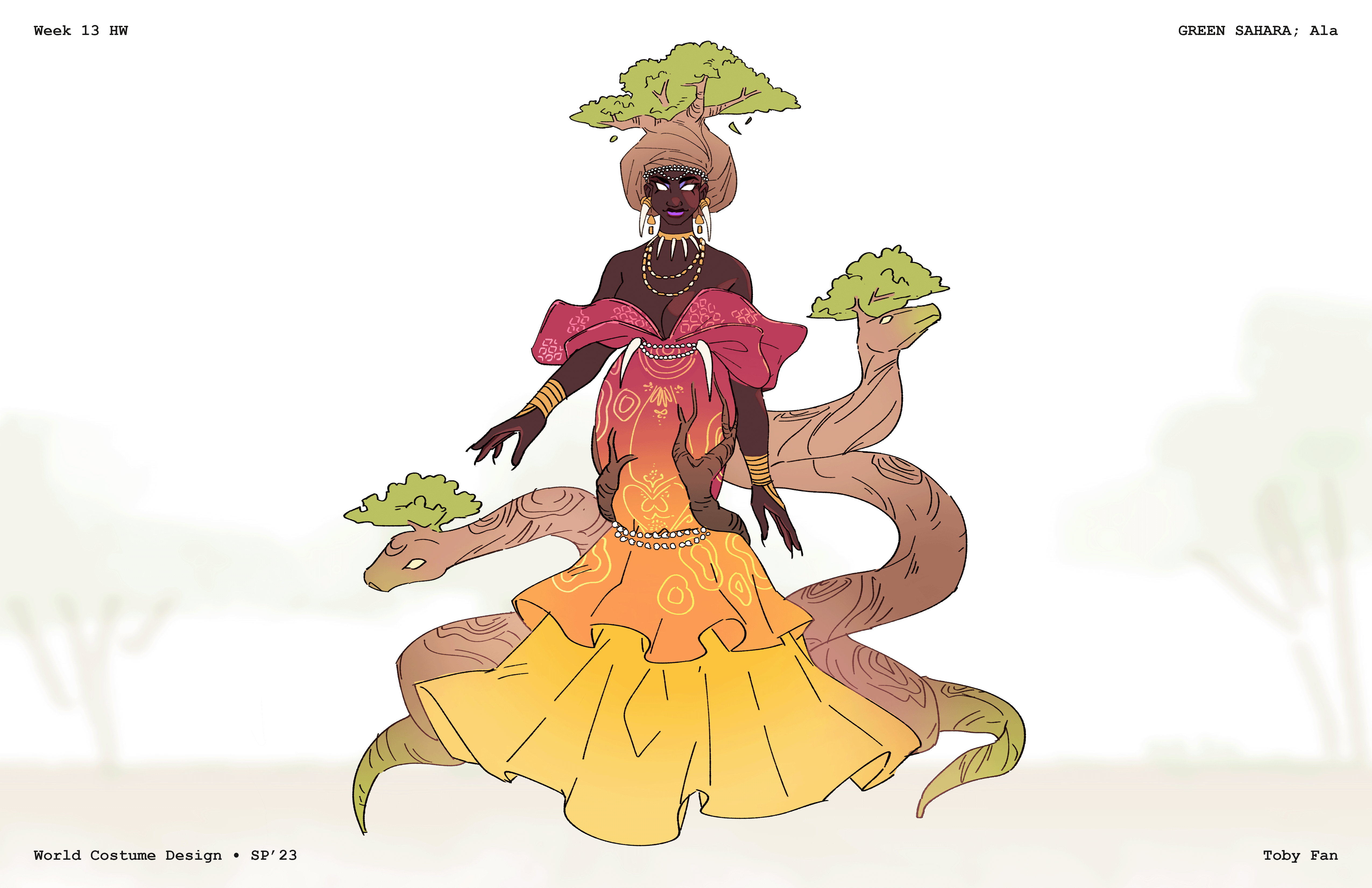 Graduates Select DepartmentBrand Design & StrategyCreative DirectionEntertainment DesignFilmFine ArtFurniture, Lighting and FixturesGraduate ArtGraduate FilmGraduate Graphic DesignGraduate Interaction DesignGraduate Spatial Experience DesignGraphic DesignIllustrationIndustrial DesignInteraction DesignMedia Design PracticesPhotography and ImagingProduct DesignSpatial Experience DesignTransportation DesignTransportation Systems and Design Back to Projects Toby Fan BS in Entertainment Design - Concept — Entertainment Design Green Sahara Costume design for a fantasy story based in Africa. Image Image Image Image