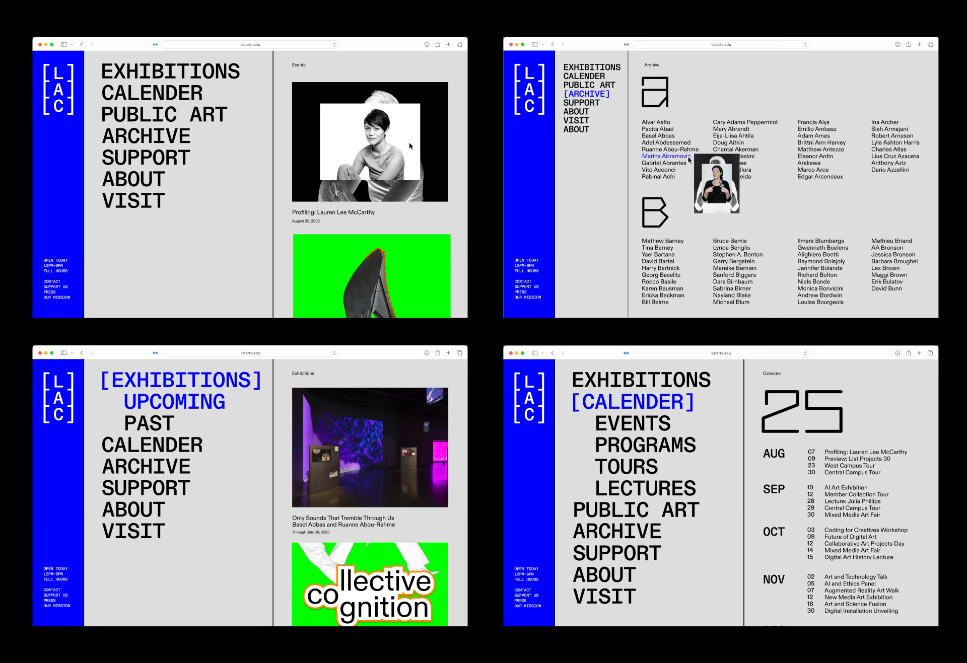 List Arts Center is the contemporary art museum on MIT's campus. The identity system uses the semantic value of the name of the institution to create a system based on organization and expansion of knowledge. With the ultimate goal of growing the entity's reach on a state and national level, the identity system highlights List Arts Center's experimental and innovate programming.