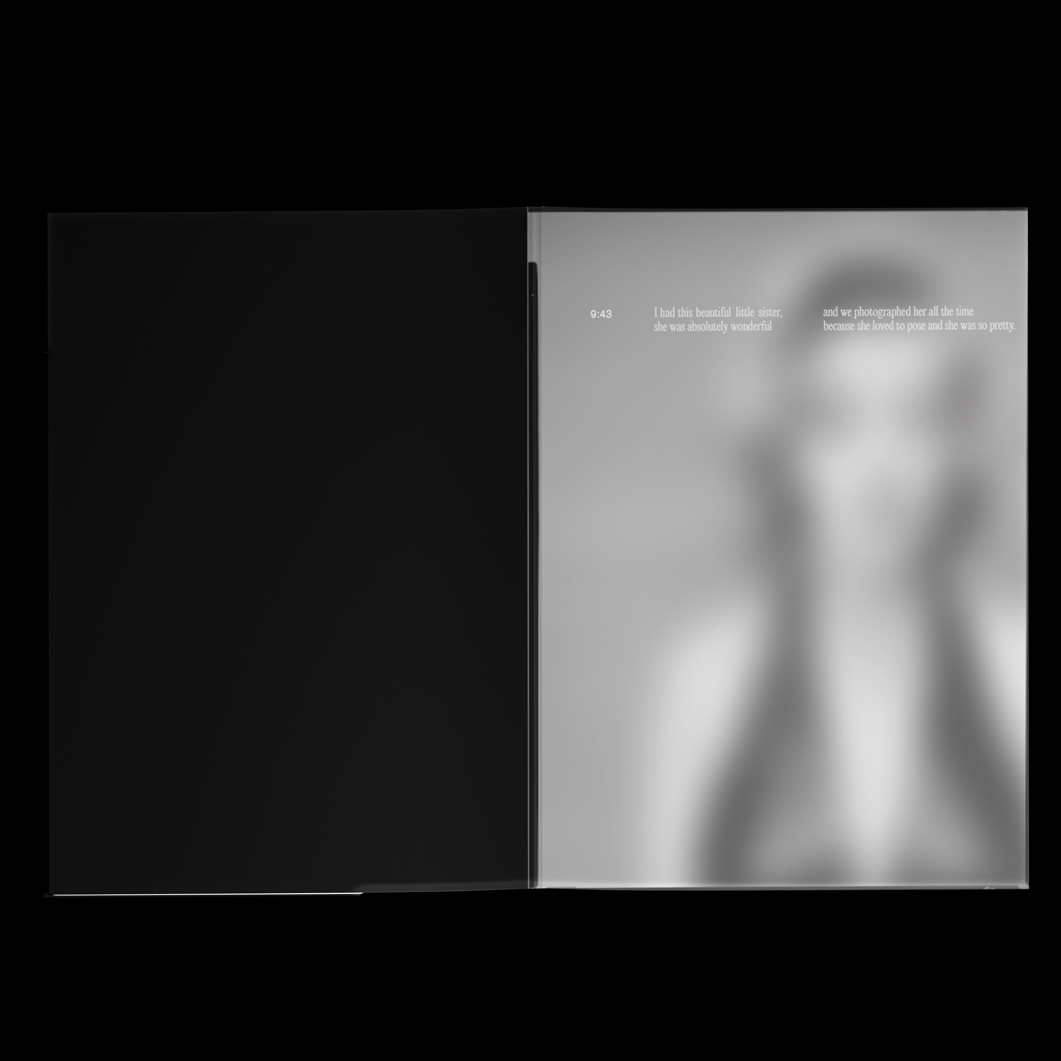 This is the intro or the "engawa" of a book that will be going over Richard Avedon's life and artistry as a photographer. It will accompany the PBS Documentary "Darkness and Light". This introduction is a quote from Avedon from an interview in 1993 where he is talking to Charlie Rose about how he got into photography. The story goes that Avedon put a negative of his sister onto his arm and let the sun hit it until the image of his sister was burned onto this arm.