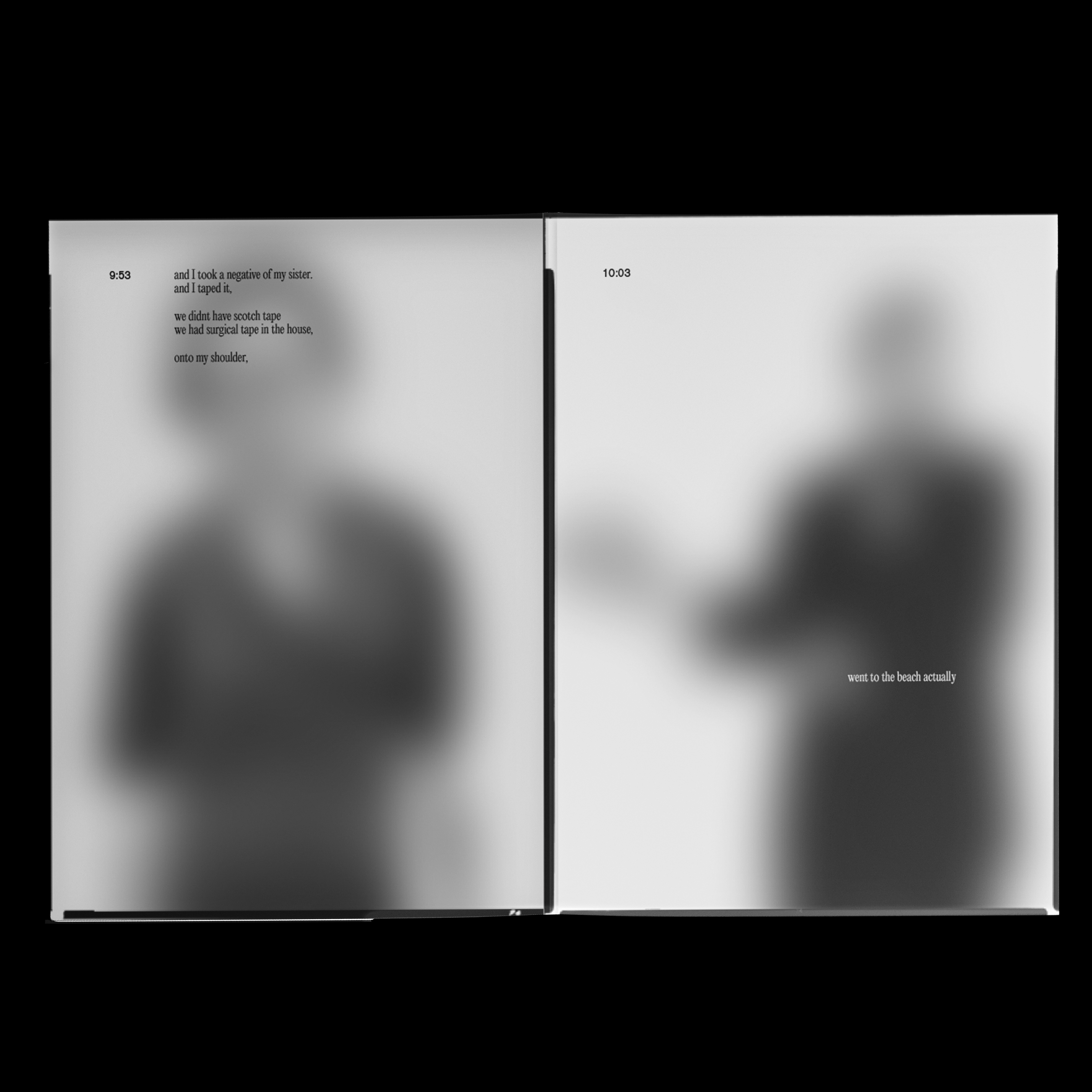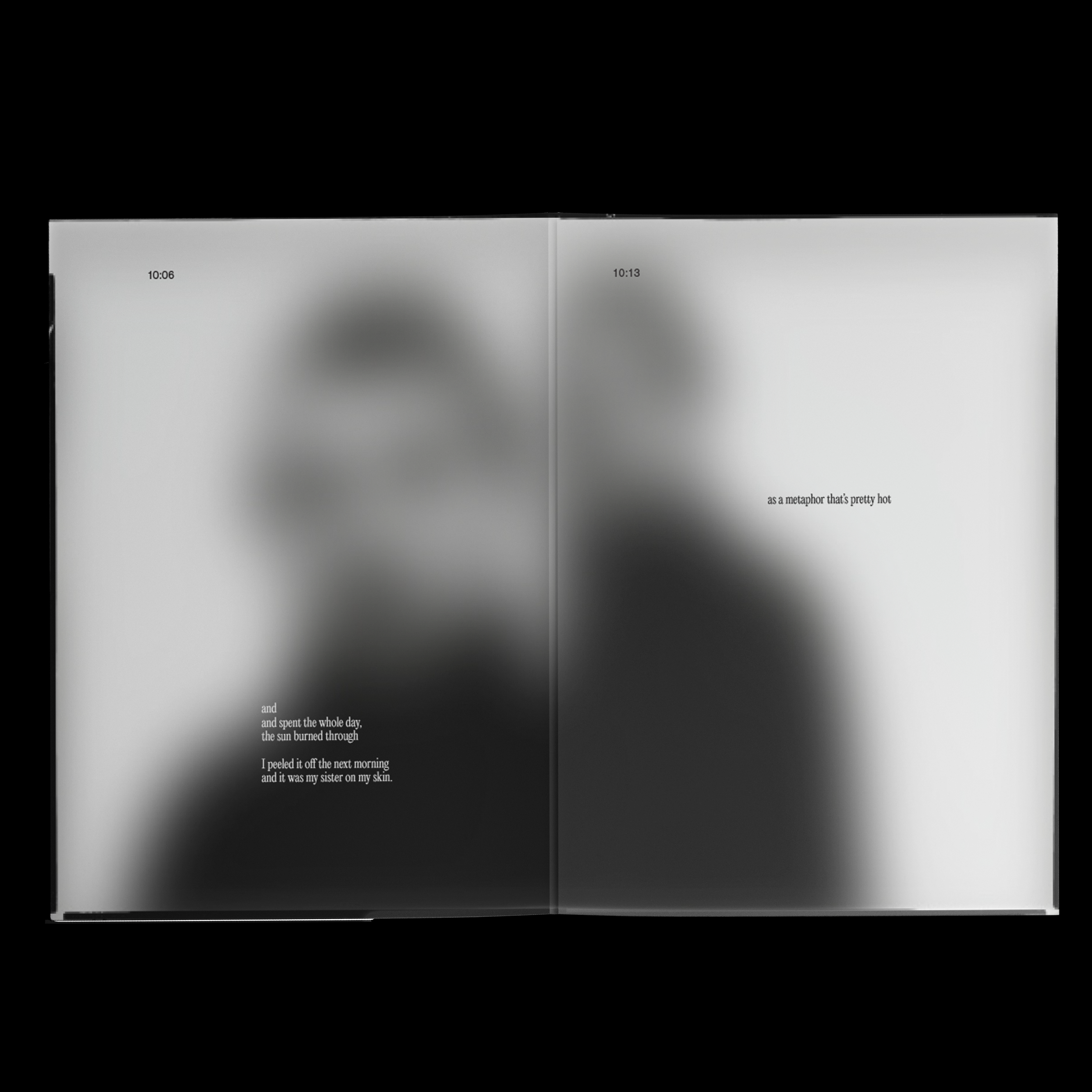 Through this project I learned how to treat a book as an interactive object in which the goal is to play with space and time through pace. In this introduction I played with pace through structure or the lack of structure, typography and the pace of imagery.