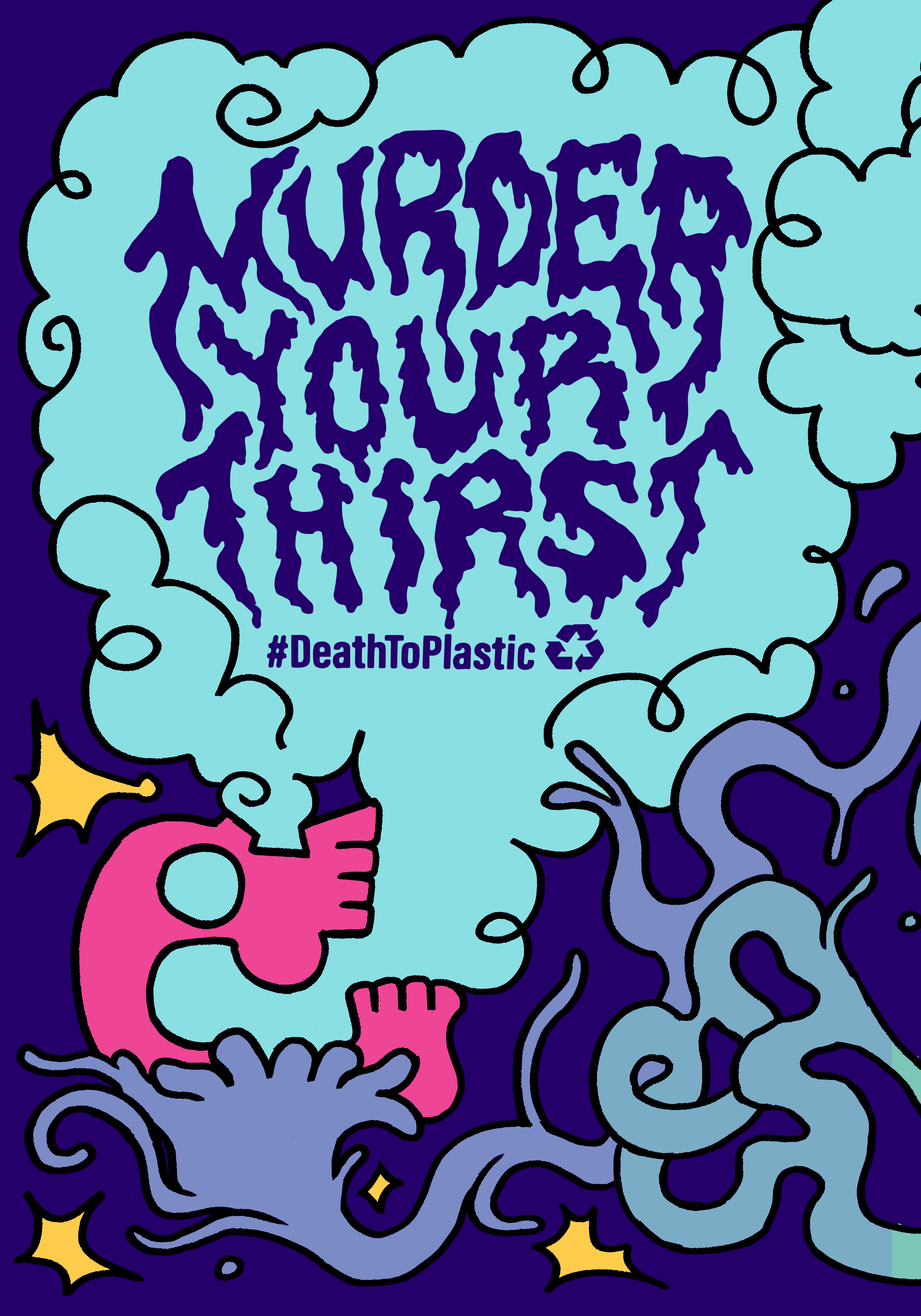 I chose to create my own designs for the water brand, Liquid Death. I admire this brand for their illustration heavy approach to their entire image; from package designs to merchandise. I felt that my style lended itself well to the identity that Liquid Death created for themselves.
