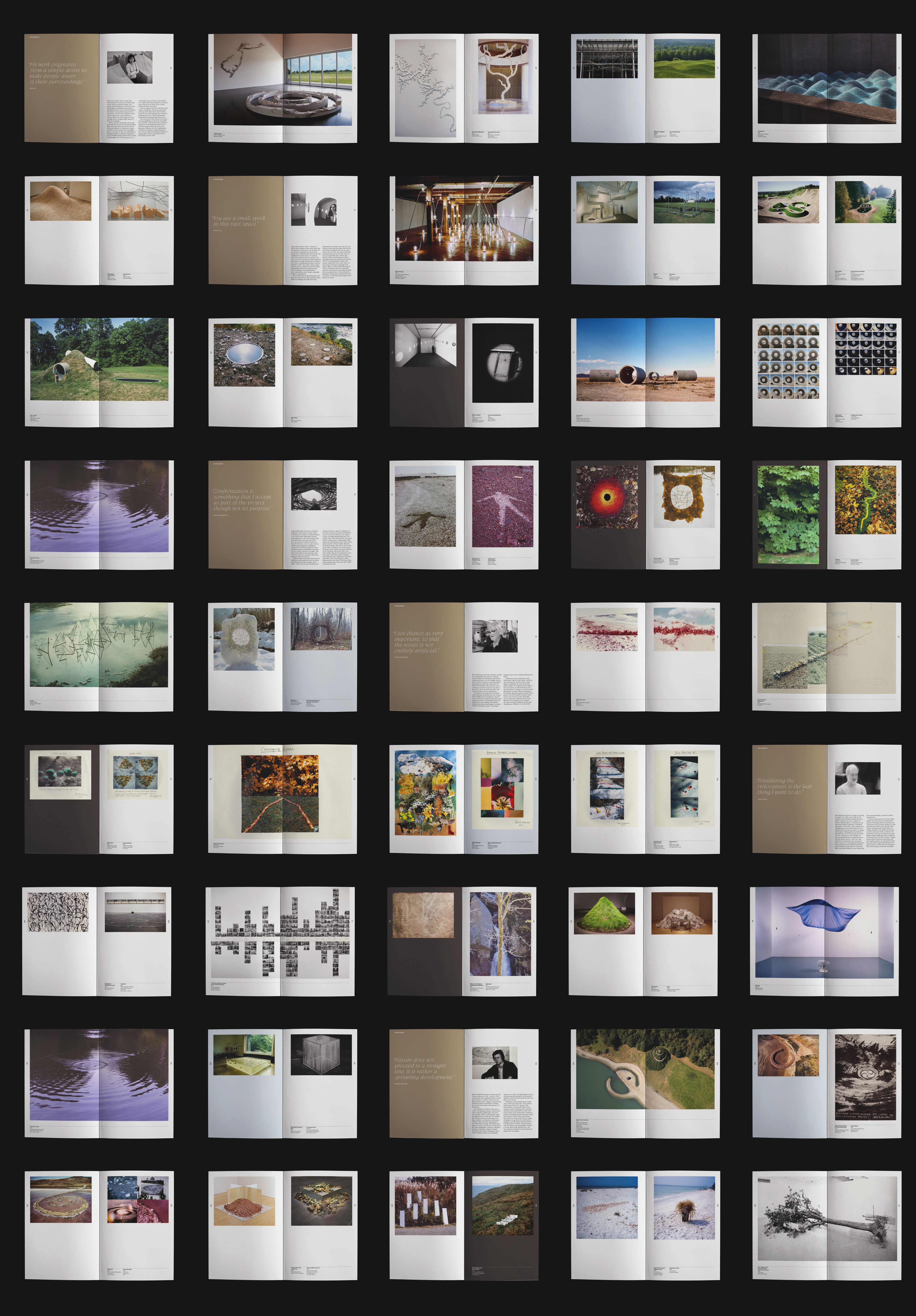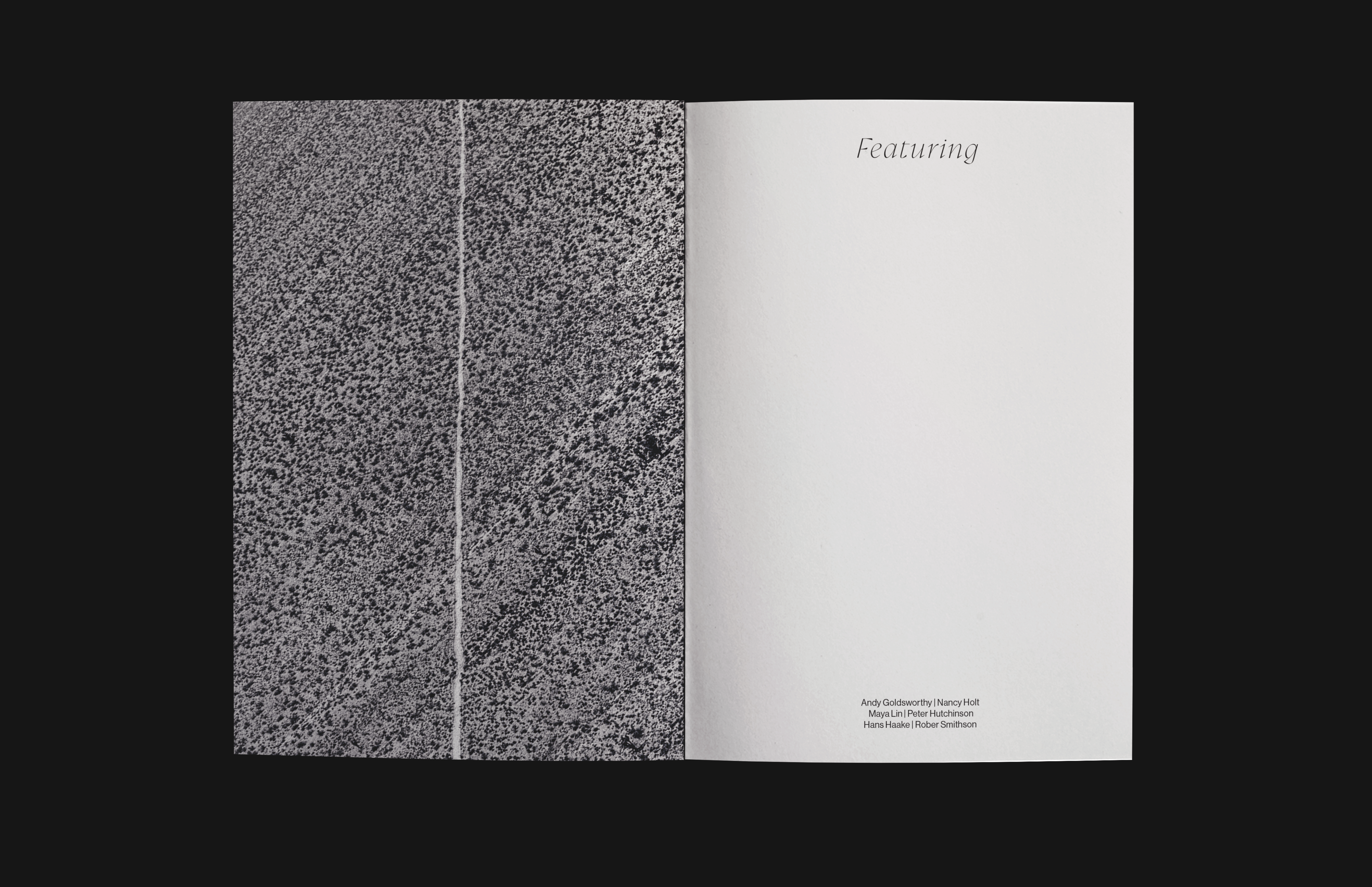 The layout design highlights the connection between each artwork through an unseen line that moves quietly across the book. This line guides both the horizontal and vertical flow of each spread, creating a sense of continuity from one artist to the next. Symmetrical layouts, intentional image placement, and a carefully paced sequence bring this idea to life, allowing the book to feel both structured and open as the reader moves through it.
