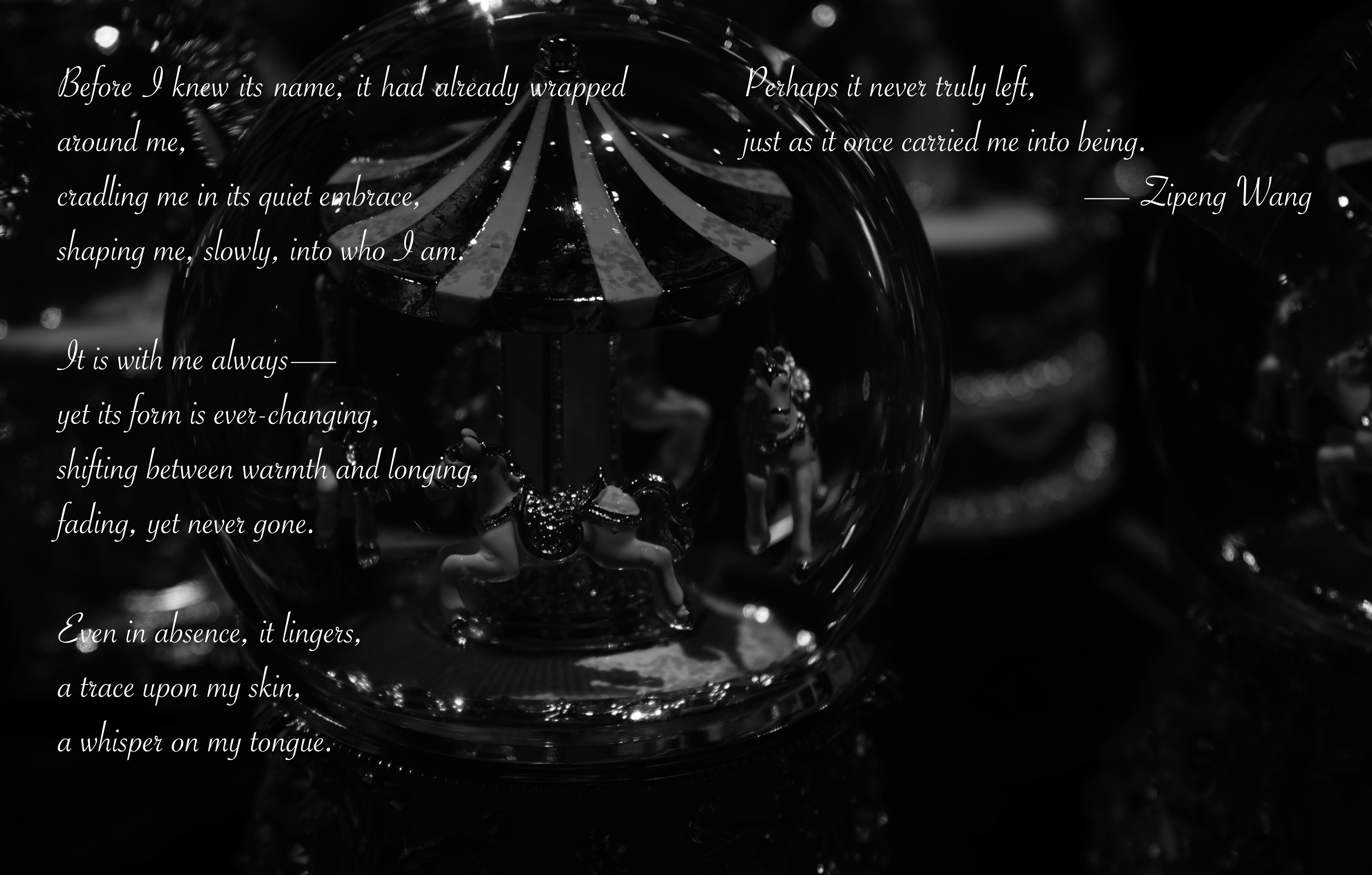 The Opacity of Us is a poetry collection written by Wei Wei, Zipeng Wang, and Puqian Ma. Through a deeply introspective lens, this collection explores the contradictions, tensions, solitude, understanding, and misunderstandings that shape intimate relationships. The word “Opacity” perfectly encapsulates the struggle of navigating closeness and distance—where the desire for connection is met with an inherent inability to fully perceive or comprehend the Other.