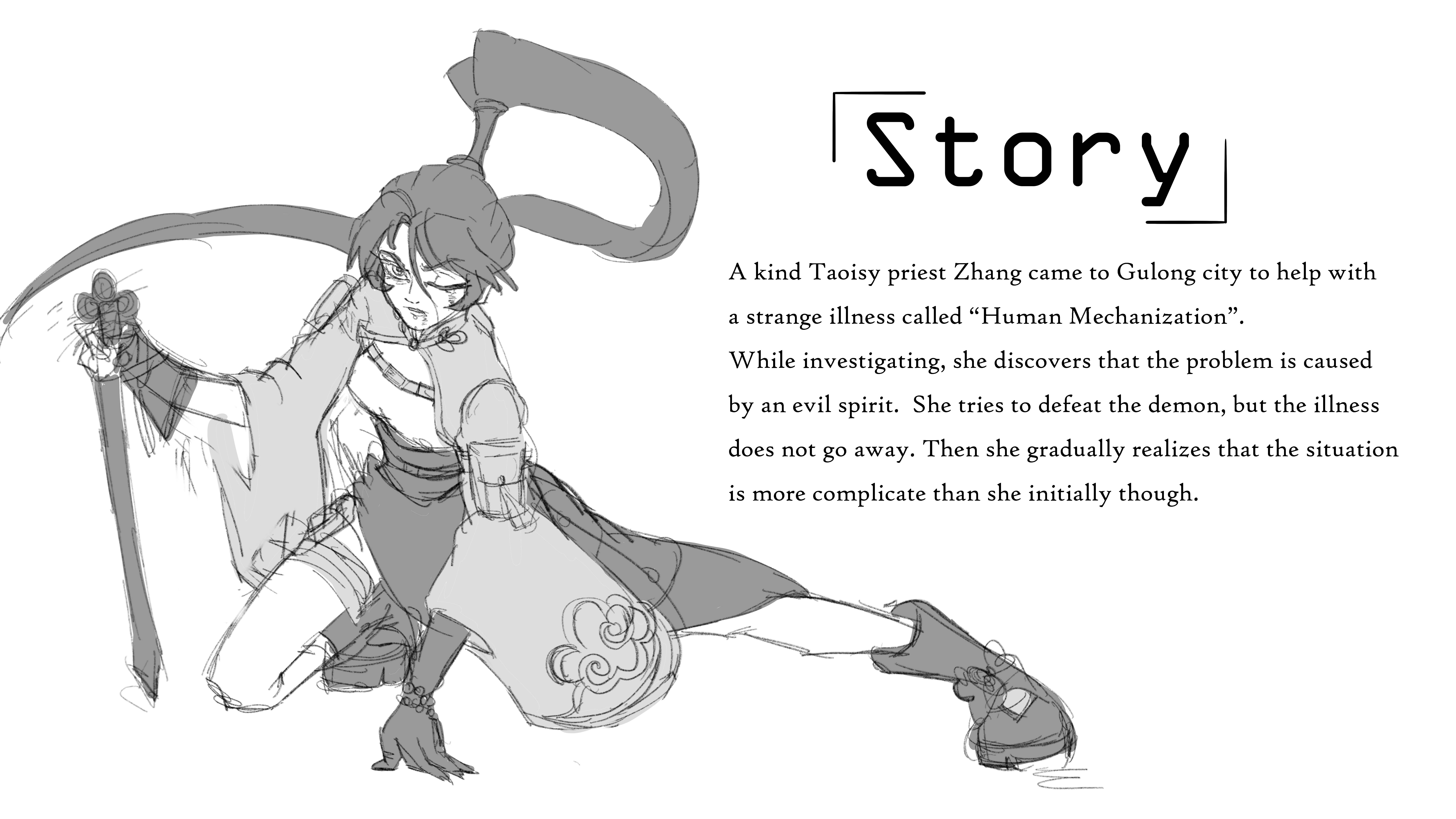 A kind Taoist named Zhang comes to the city of Gu Long to help with a strange illness called "human mechanization." While investigating, she finds out that evil spirits are causing the problem. She tries to defeat the demon, but the illness in the town doesn't go away. She gradually realizes that the situation is more complex than she first thought.