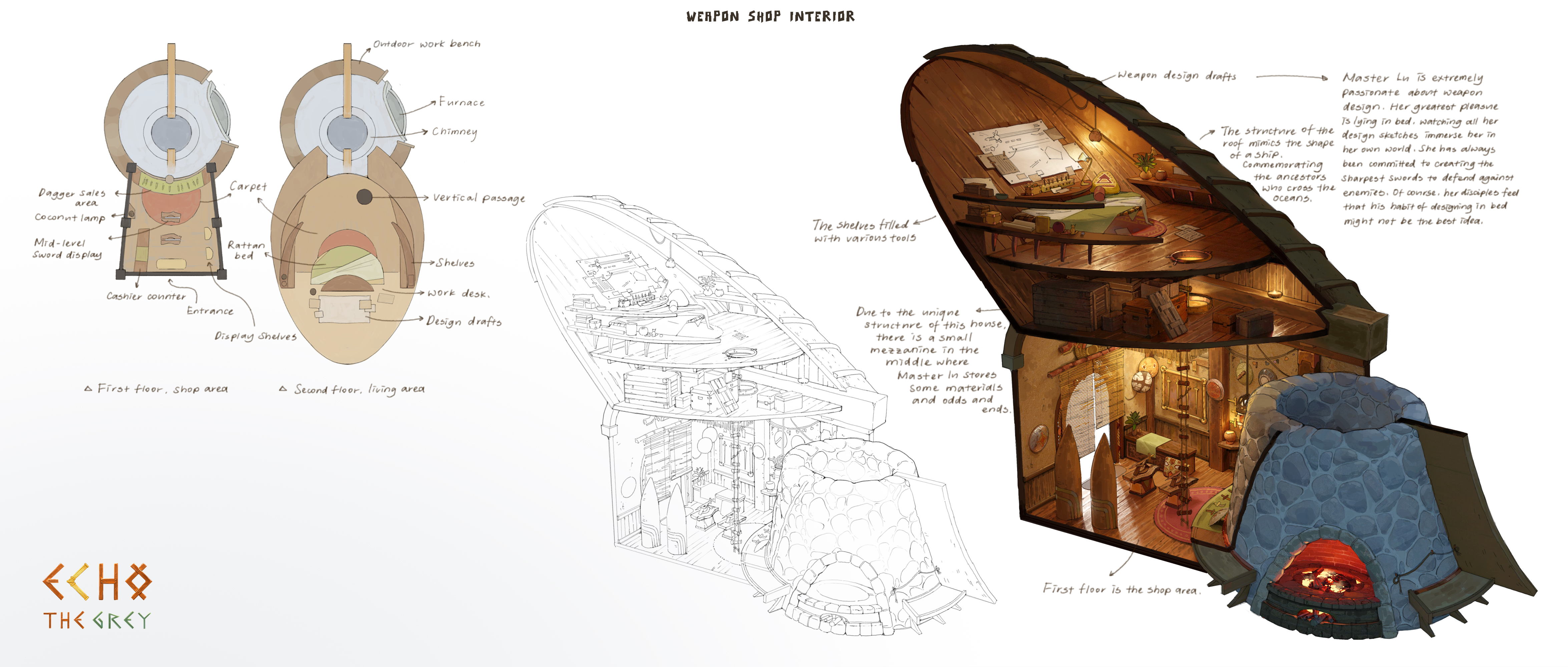 On the Isle of Adieu resides a weapons master named Master Lu. Not only does she forge the sharpest weapons, but she also wields them with unparalleled skill. This is her weapon shop, and it doubles as her home.