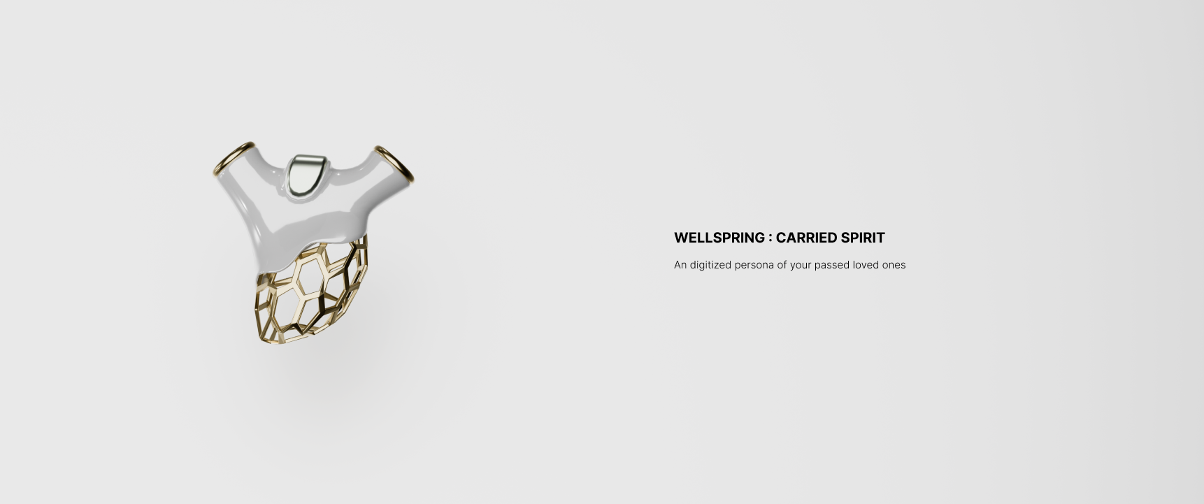 Wellspring is a collection of AI jewelry that encapsulates the digital avatars of loved ones who have passed, alleviating the sense of loneliness for the ever-growing elderly population.
