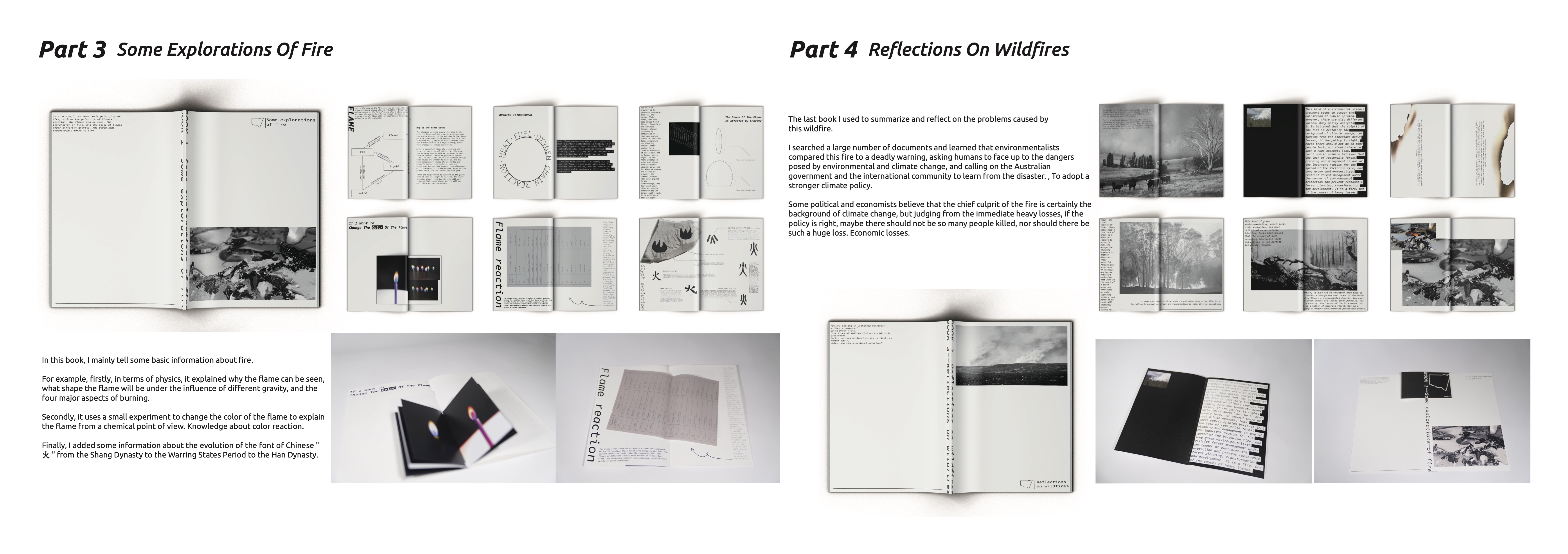 In the first book, I mainly tell some basic information about fire. For example, firstly, in terms of physics, it explained why the flame can be seen, what shape the flame will be under the influence of different gravity, and the four major aspects of burning. Secondly, it uses a small experiment to change the color of the flame to explain the flame from a chemical point of view. Knowledge about color reaction. Finally, I added some information about the evolution of the font of Chinese " ? " from the Shang Dynasty to the Warring States Period to the Han Dynasty.