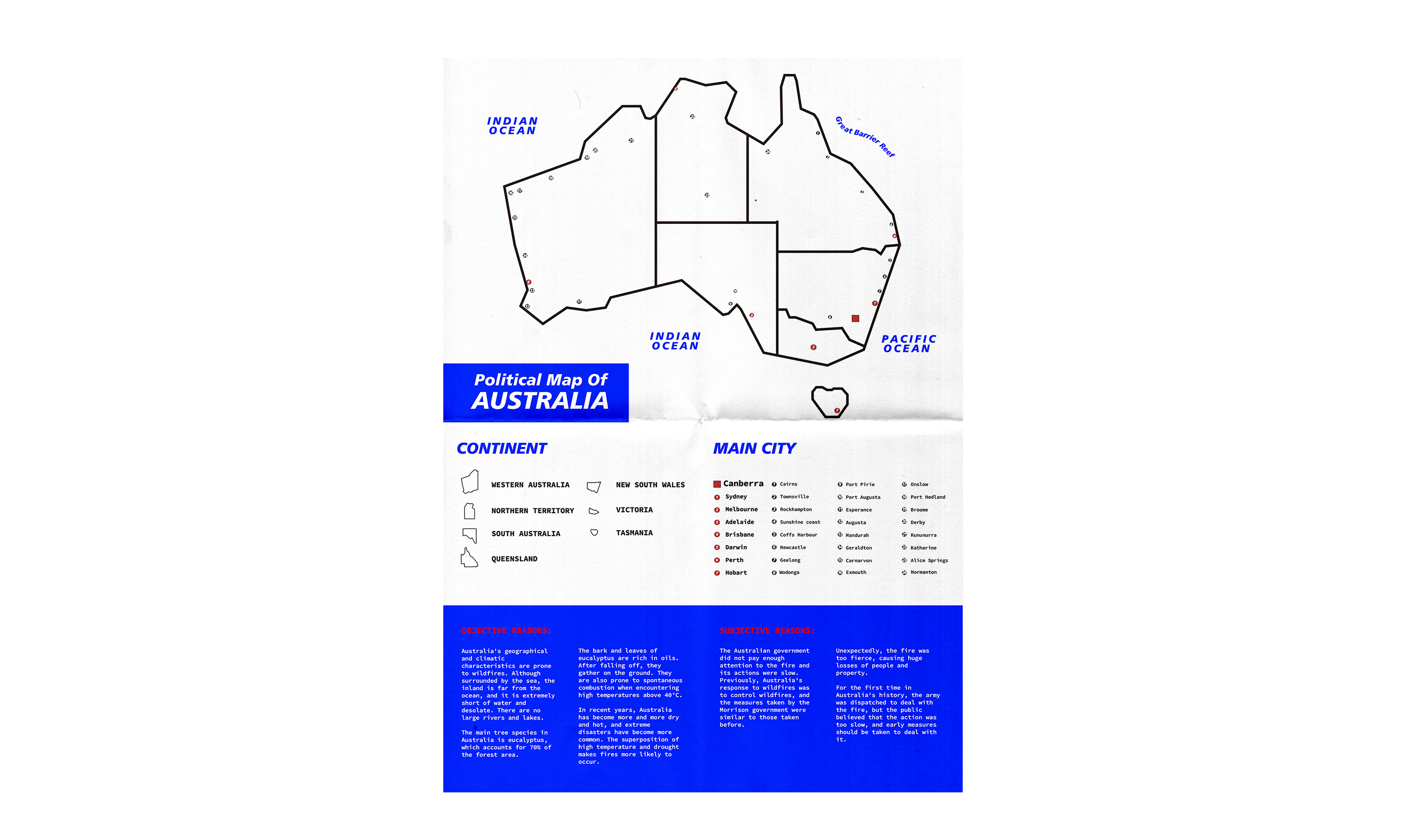 This book mainly uses illustrations and infographics to describe the biological groups affected by the Australian wildfires, including animals (divided into mammals, amphibians, birds, and frogs) and specifically mentions the degree of casualties The most serious koala; plants (including the habitats of destroyed animals, the area of Australia's forest fires, etc.) and humans (including data on injuries and deaths of firefighters involved in firefighting, and statistics on injuries of people around mountain fires).