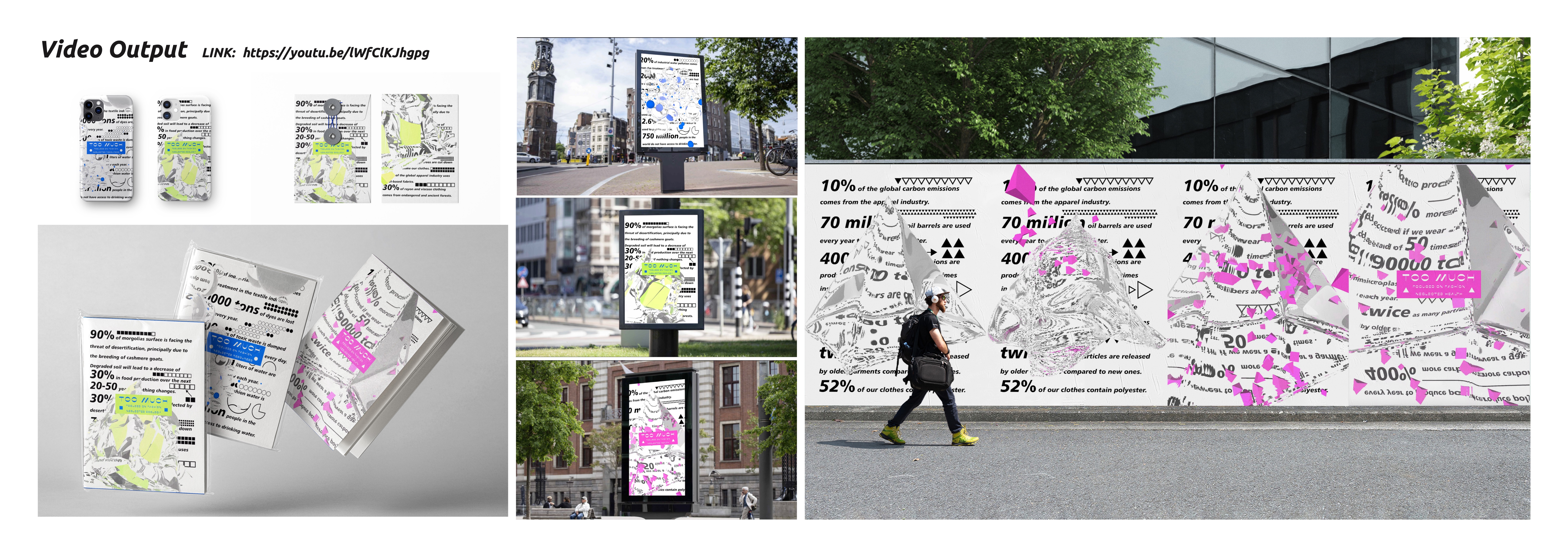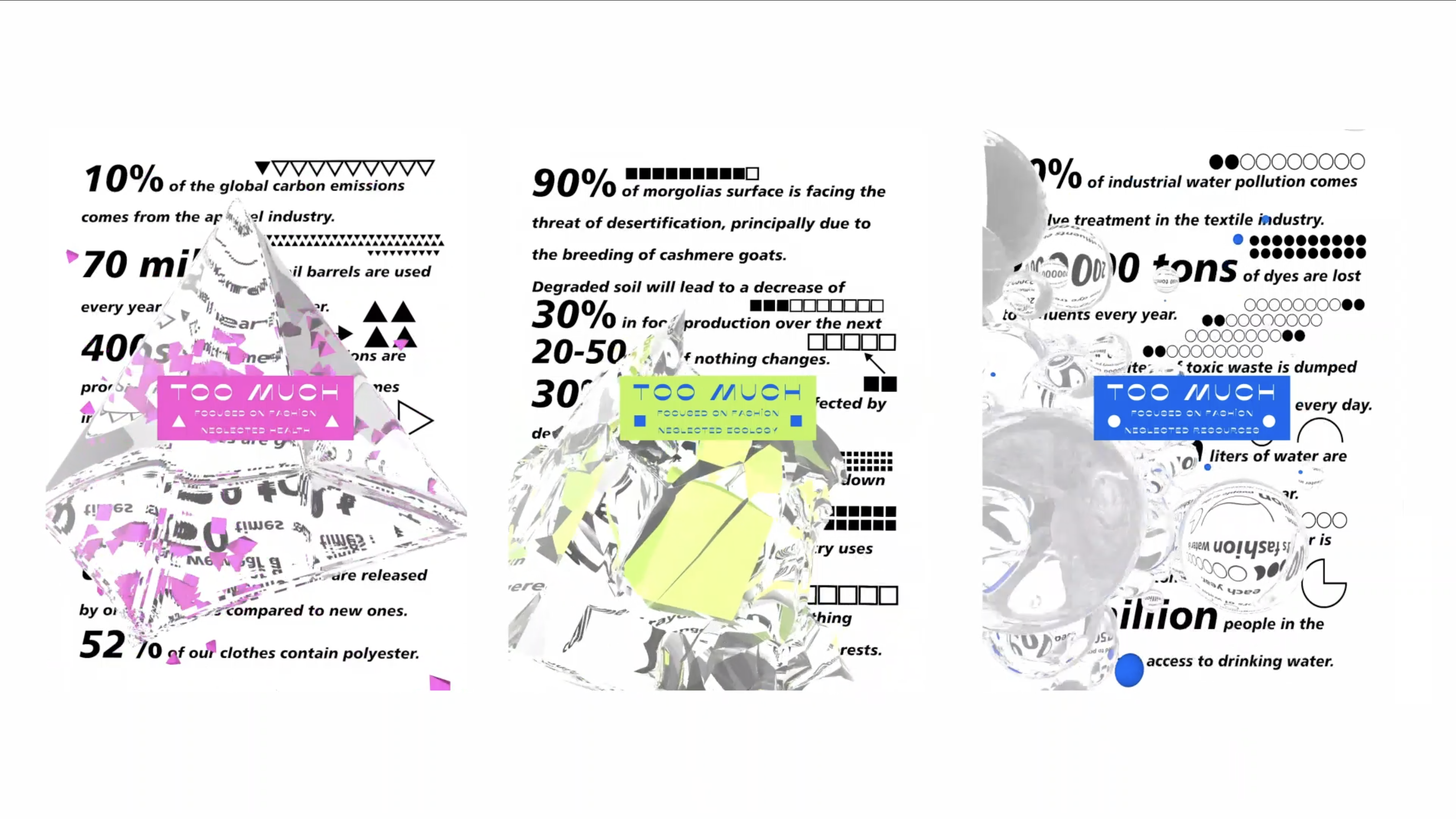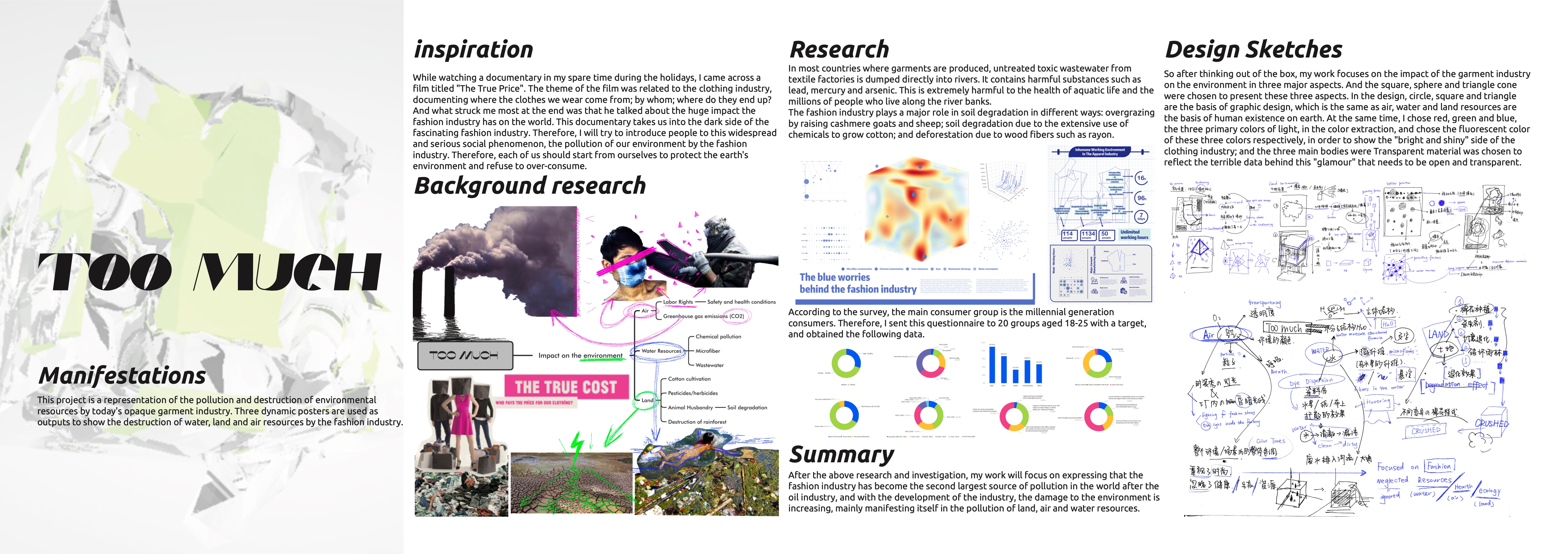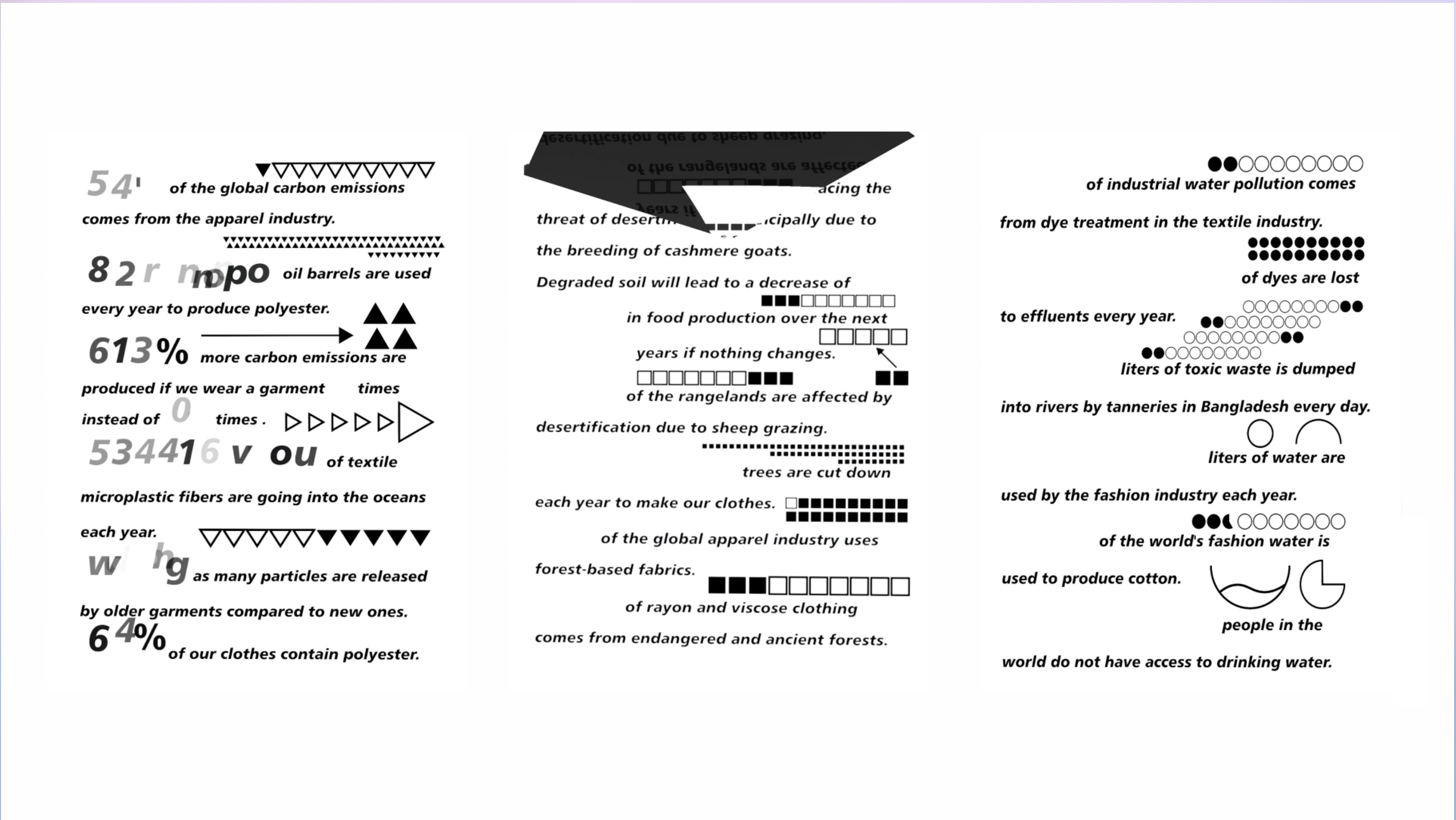 Air Pollution The sandblasted particles that pollute the air are simplified into small triangular cones, because such small particles stay in the lungs of garment factory workers, like small thorns stuck in them, and the triangular cone form is like a sharp and aggressive one. The red color is chosen because it is associated with the color of human lungs and the color of "damage".
