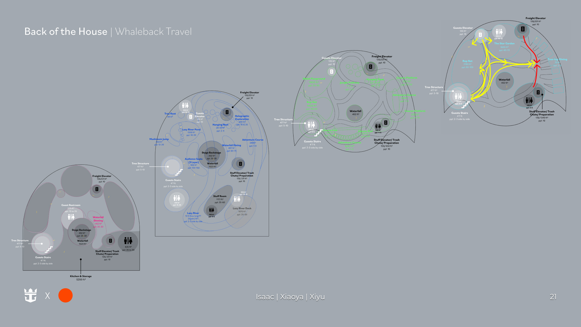 Students will design an inclusive cruise experience by crafting a compelling story concept and designing diverse activities with possible facilities. Attention will be given to optimizing space usage, layout, and efficient back-of-house operations to ensure a "Thrill and Chill" experience for guests of all ages.