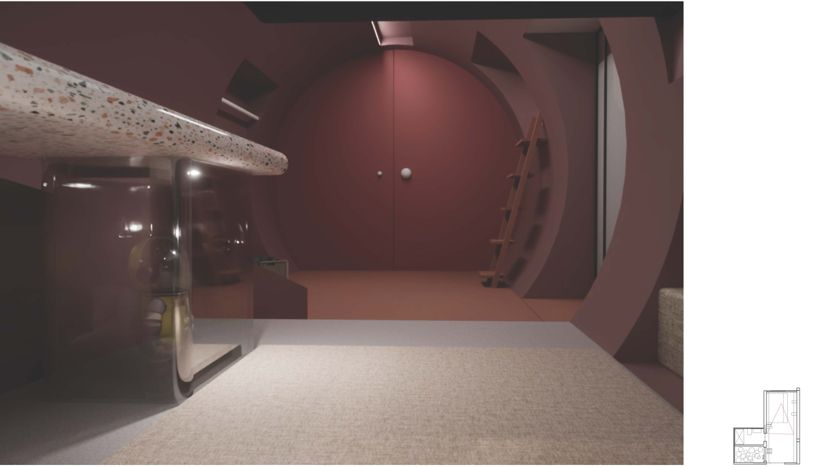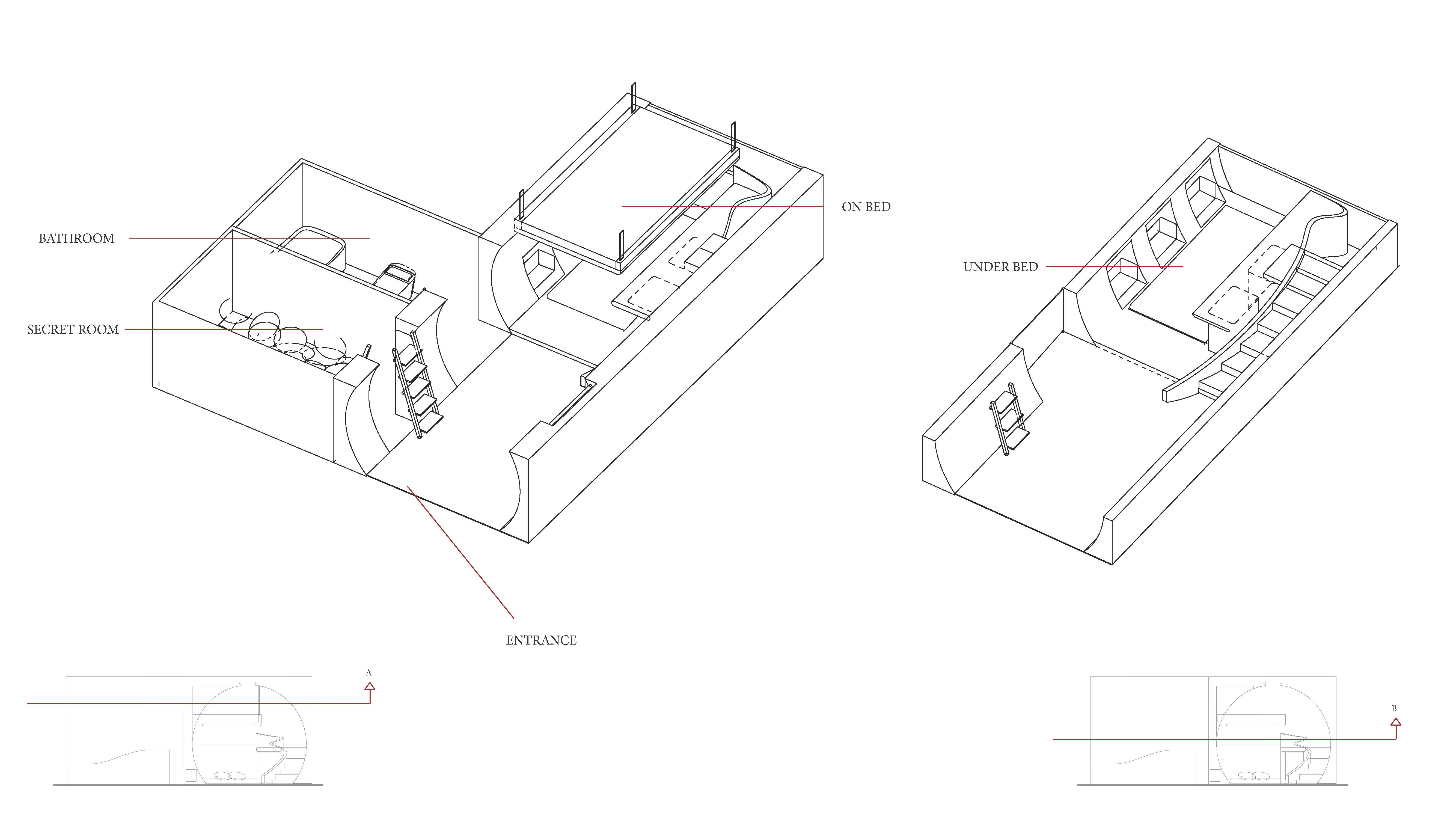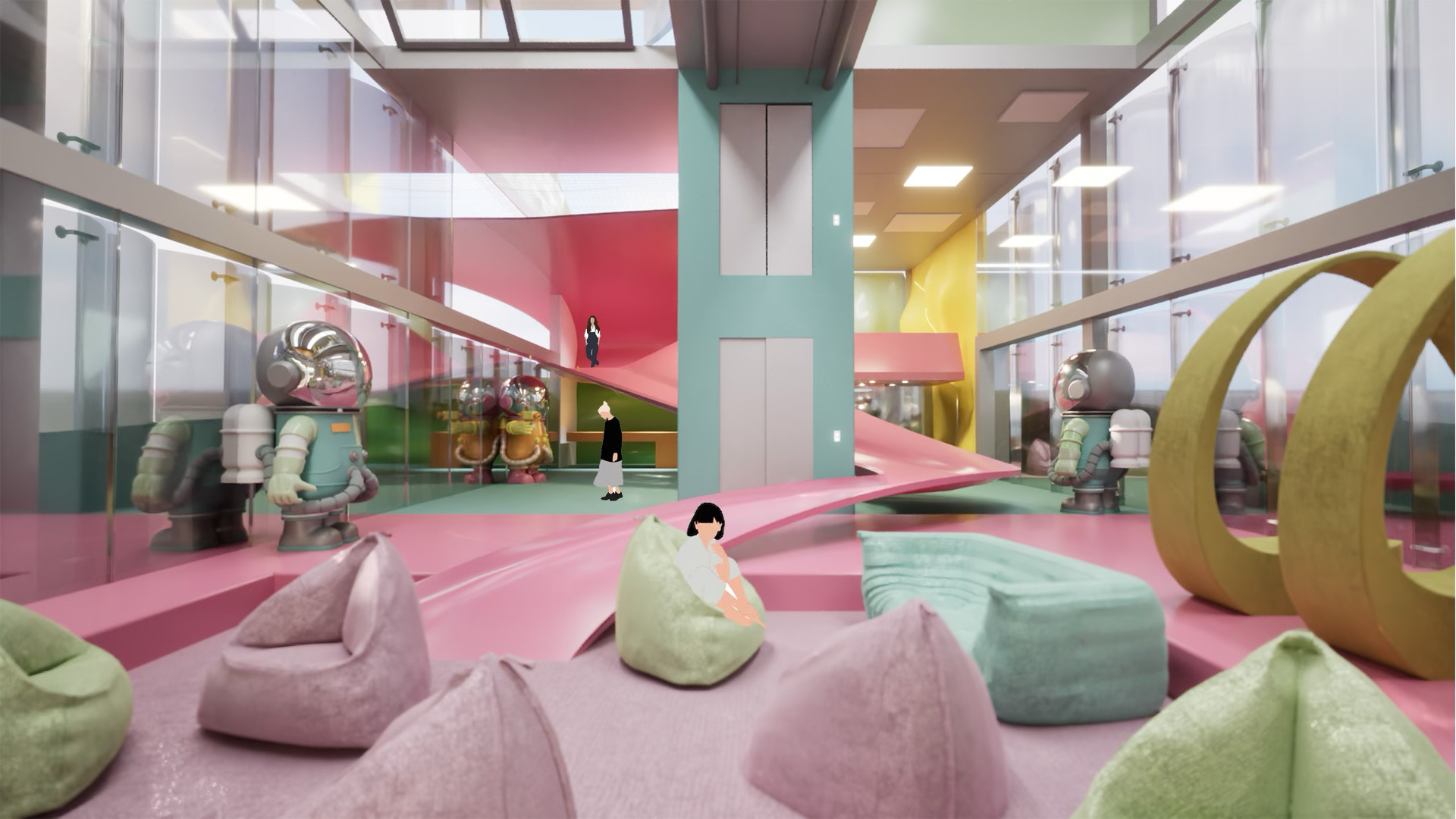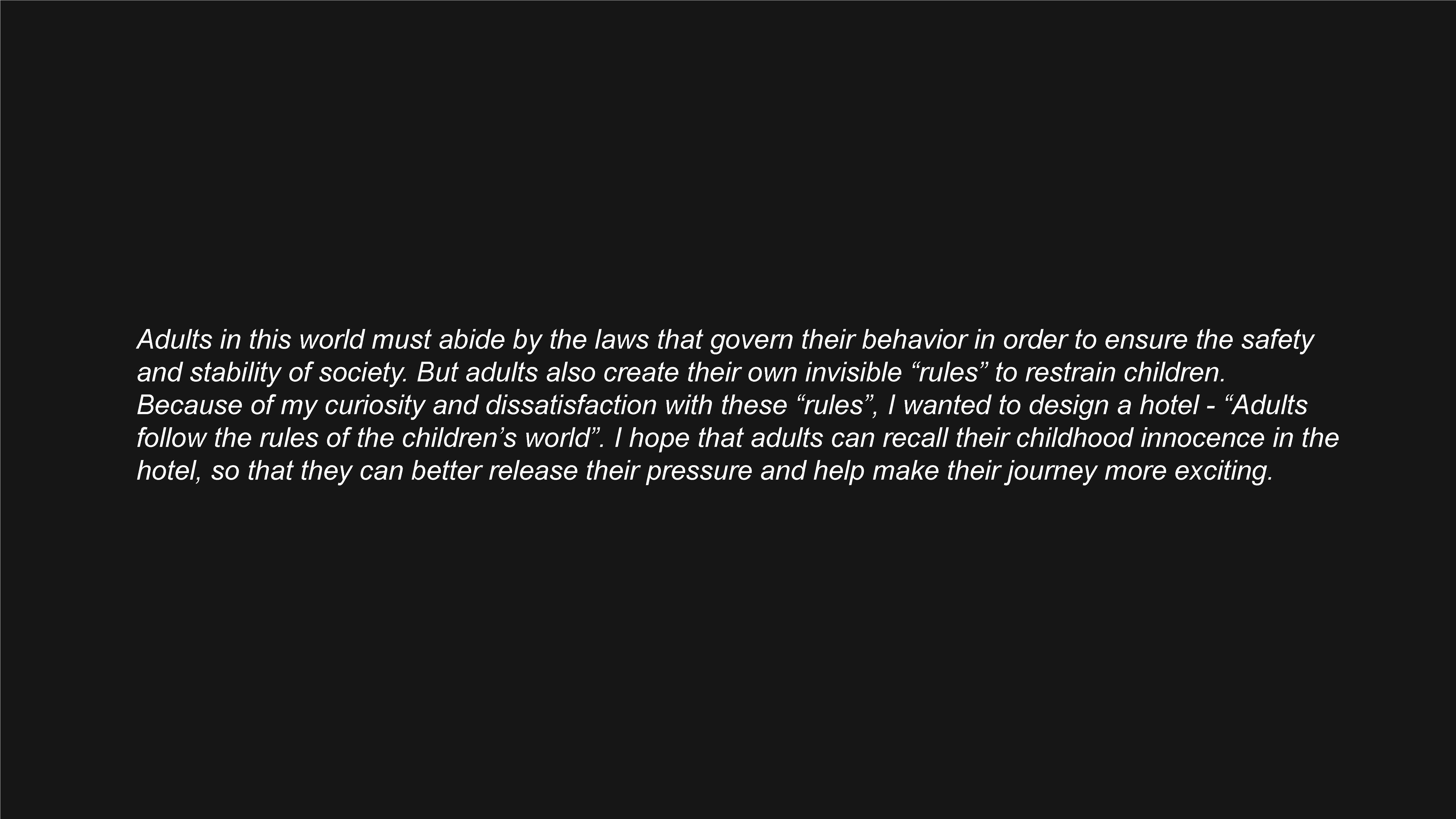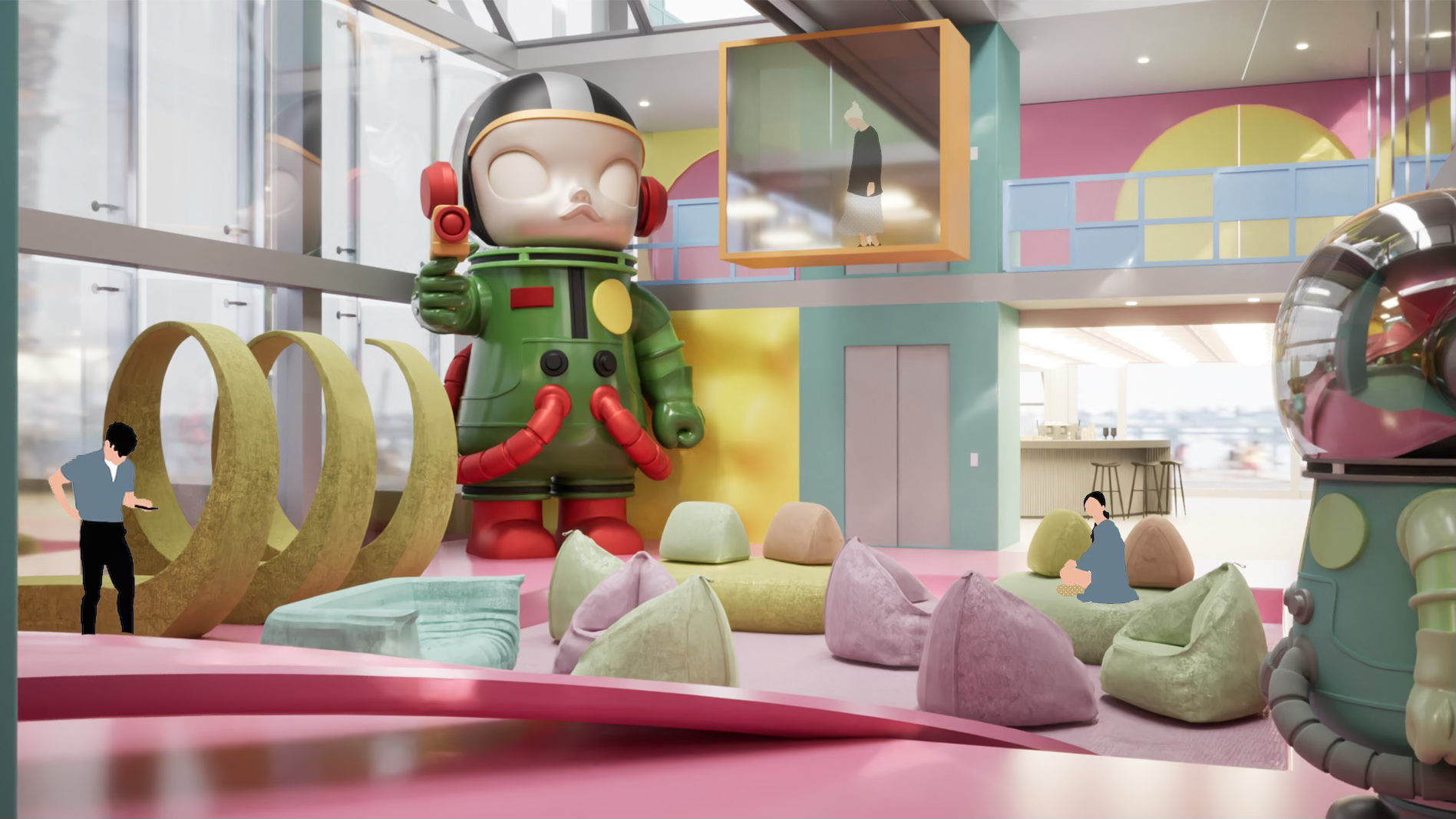 Mirrored Mirth Hotel is a hotel to help adults to think back to their childhood by acting children’s behavior, in partnership with Popmart, with the goal of enjoying the travel time like a kid.