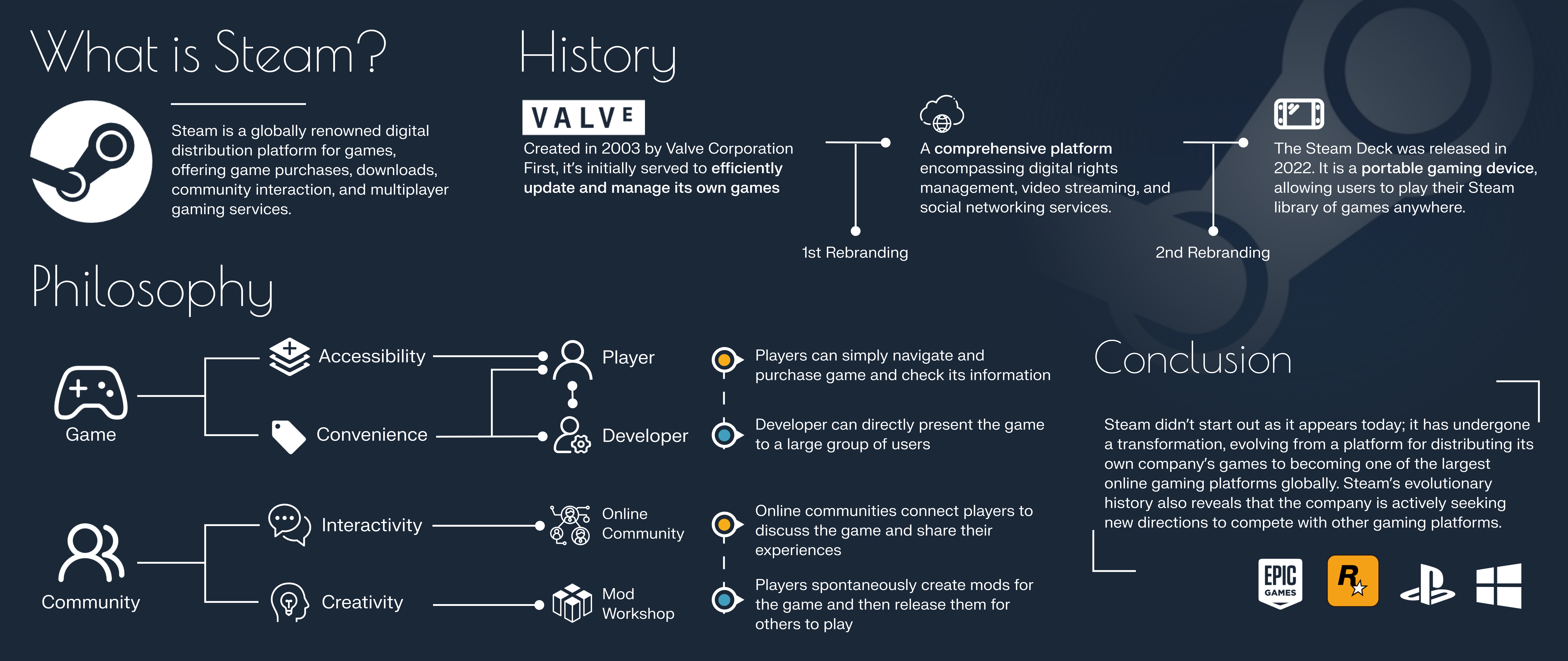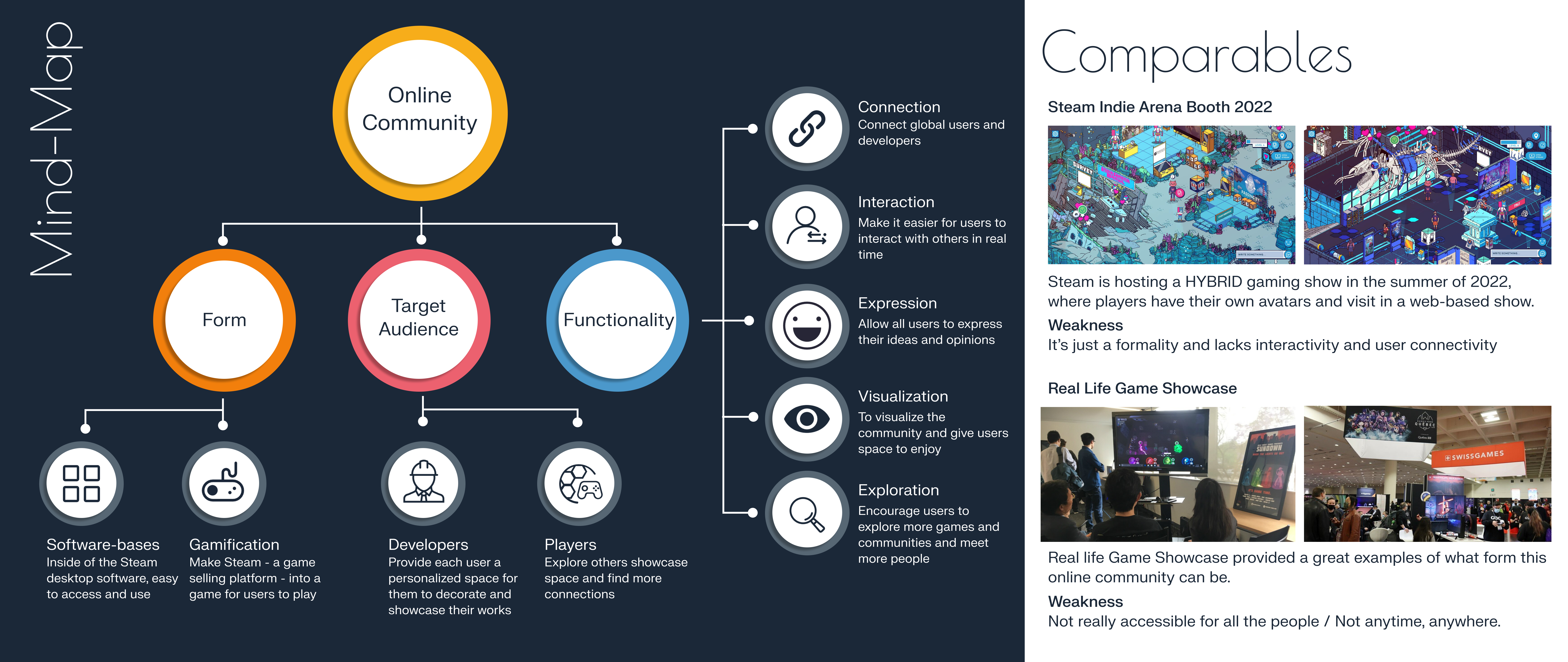 This is an interactive scene designed for the Steam community, where players can browse game expos from developers, interact with other players, and even as indie developers, they can set up their own game exhibitions and communicate directly with players and designers from all around the world.