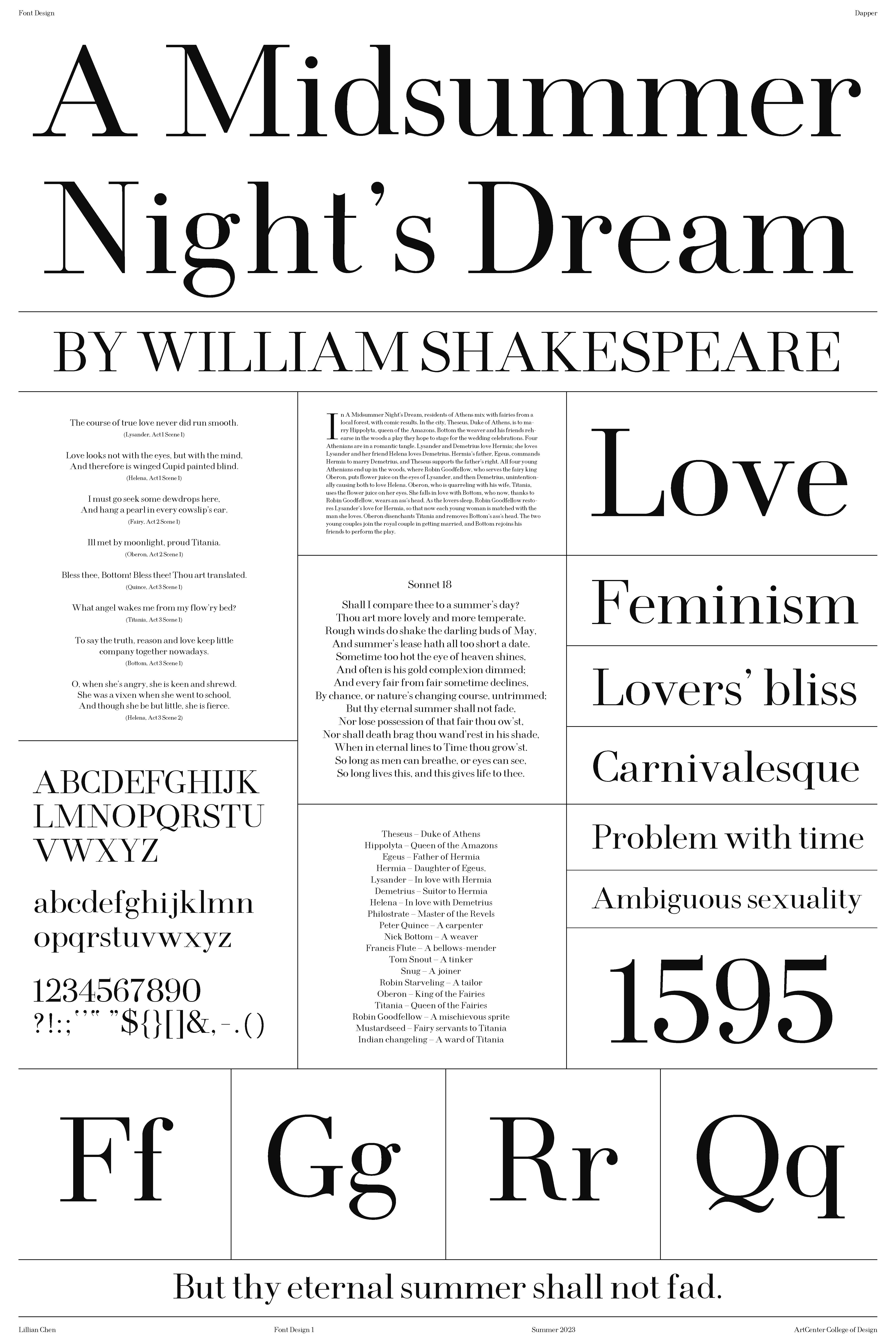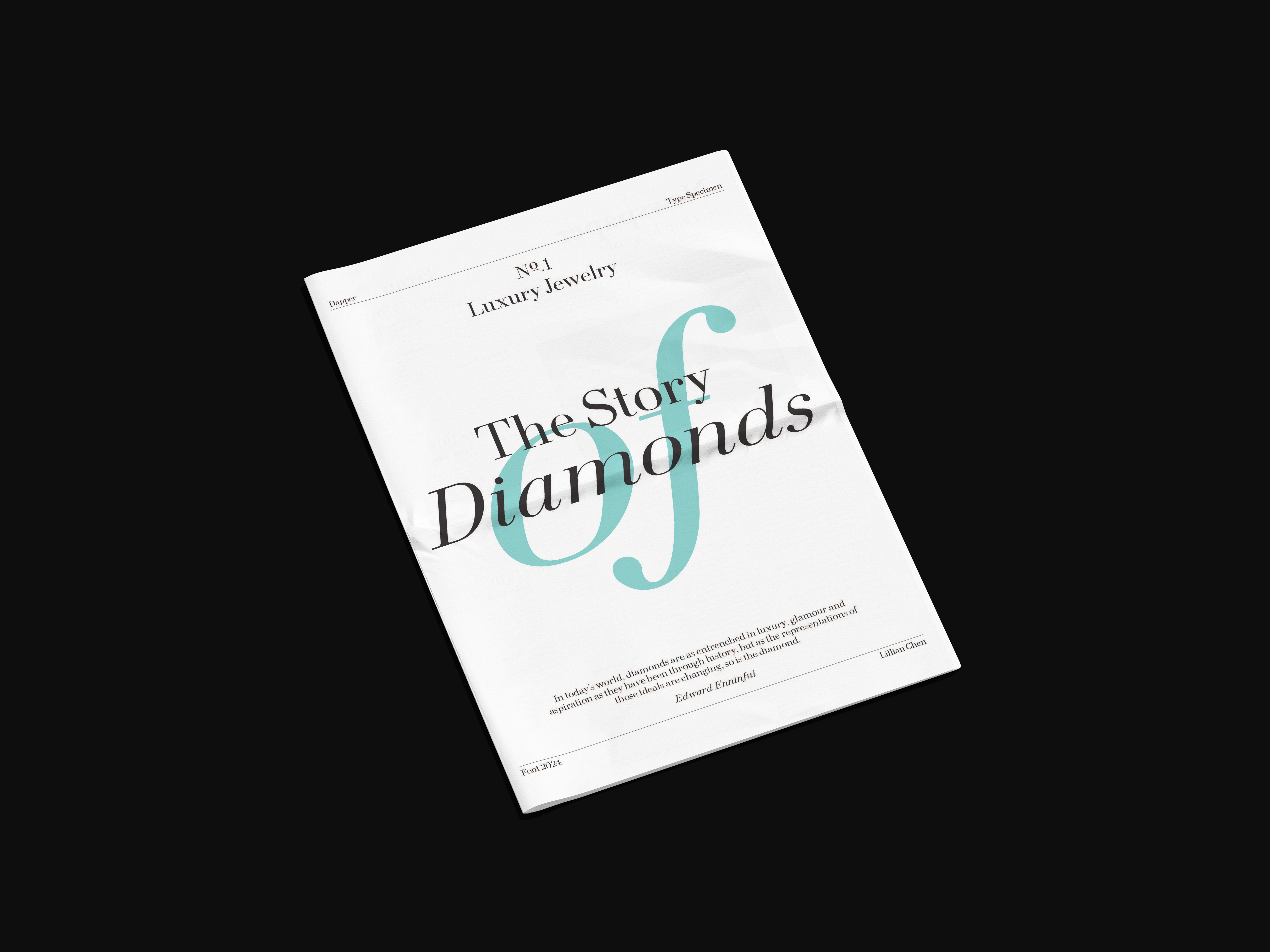 Dapper is a set of fonts I designed to be used as headlines and body text, inspired by Didot. In this set I increased the width of lines and add rounded corners, I wanted the font to look elegant and delicate, but at the same time more gentle and humane.