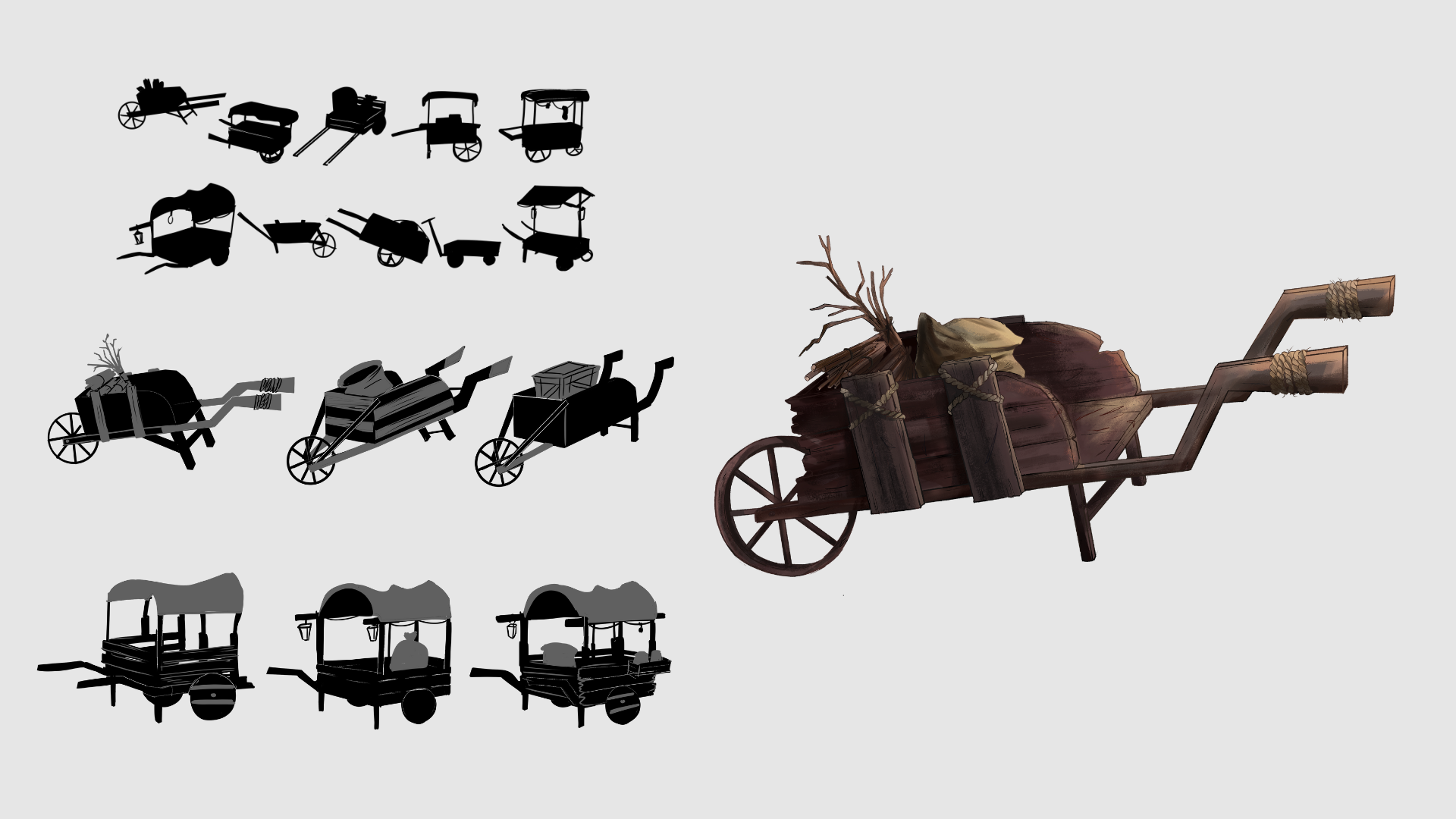 In a group of six, we decide on a favorite story from the instructor's example and change it into our own story. The story's theme was dark fantasy and each member was responsible for designing a character and props that fit the story. My character is the father of the protagonist and a hardworking man for his family. However, he leaves early in the story, so my task was to design him as humble as possible.