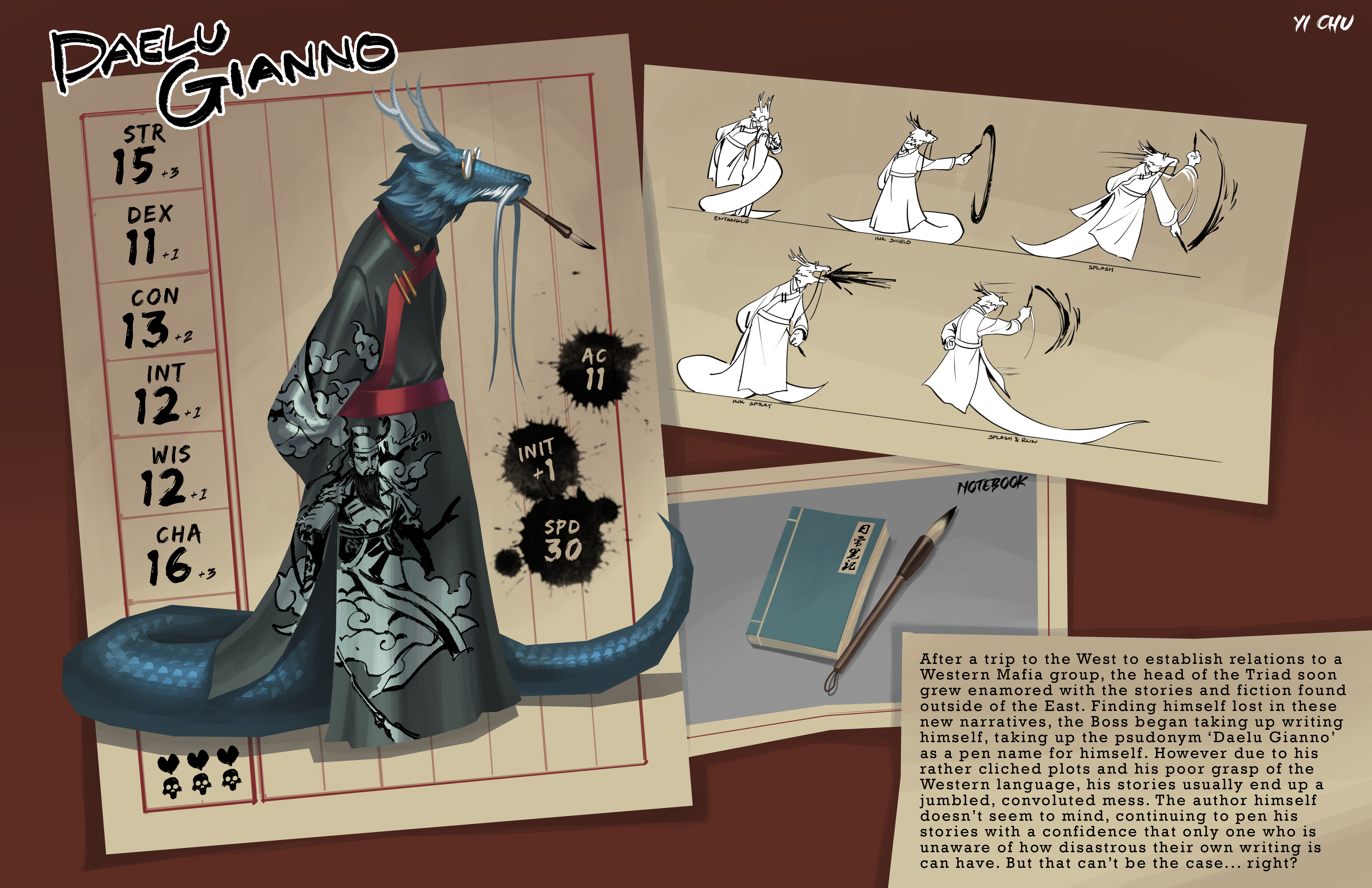 Graduates Select DepartmentBrand Design & StrategyCreative DirectionEntertainment DesignFilmFine ArtFurniture, Lighting and FixturesGraduate ArtGraduate FilmGraduate Graphic DesignGraduate Interaction DesignGraduate Spatial Experience DesignGraphic DesignIllustrationIndustrial DesignInteraction DesignMedia Design PracticesPhotography and ImagingProduct DesignSpatial Experience DesignTransportation DesignTransportation Systems and Design Back to Projects Yi Chu BS in Entertainment Design - Concept — Entertainment Design D&D Characters sheets for D&D. Image Image