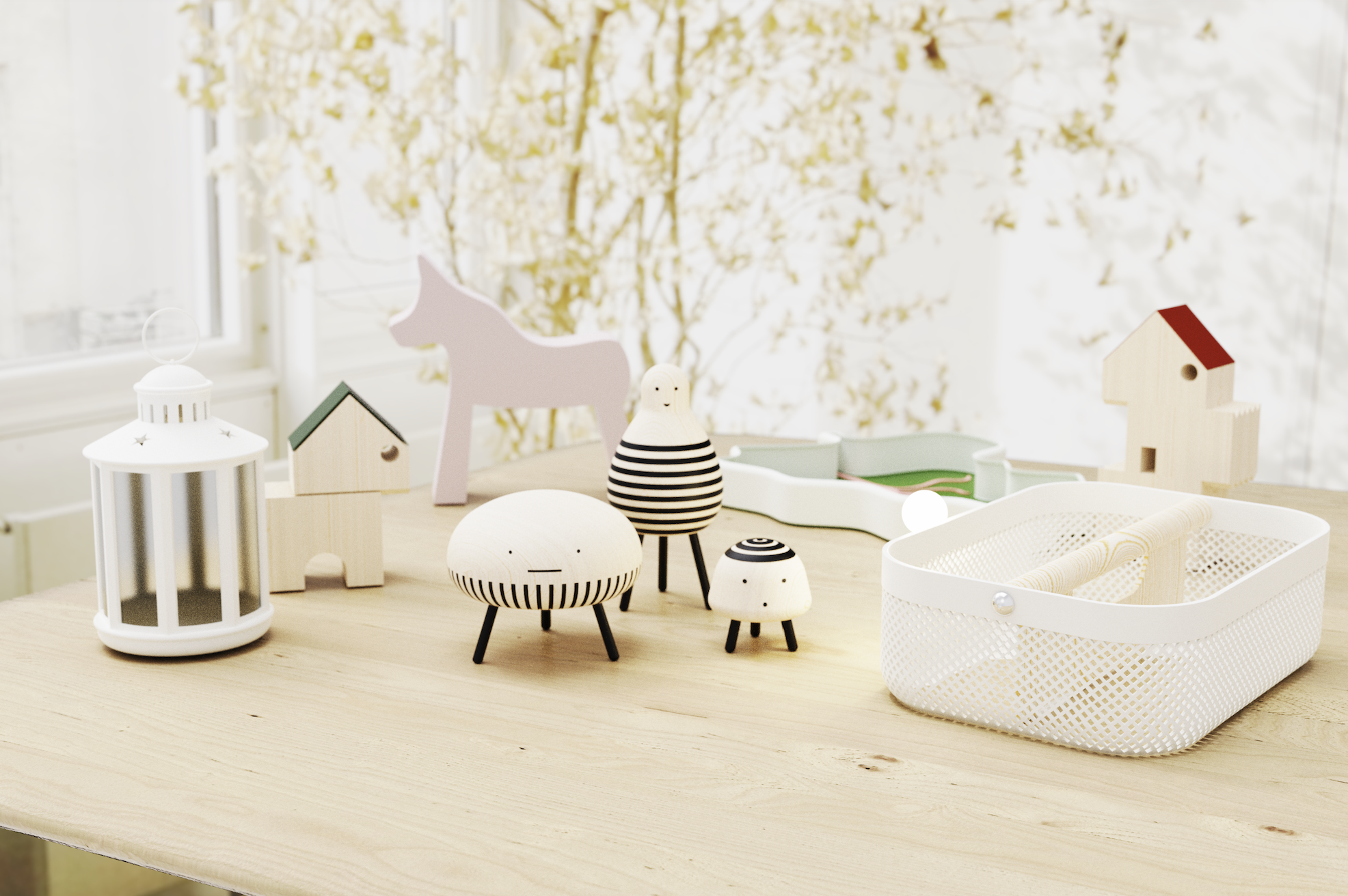 3D printed for 'IKEA' design. Including tableware, toys, and decorations.
